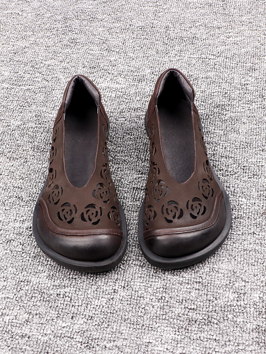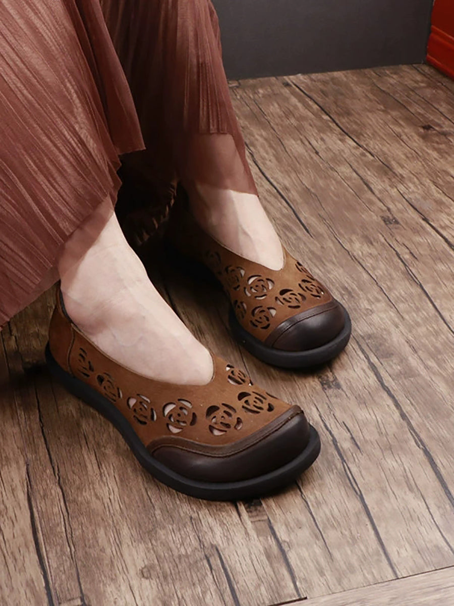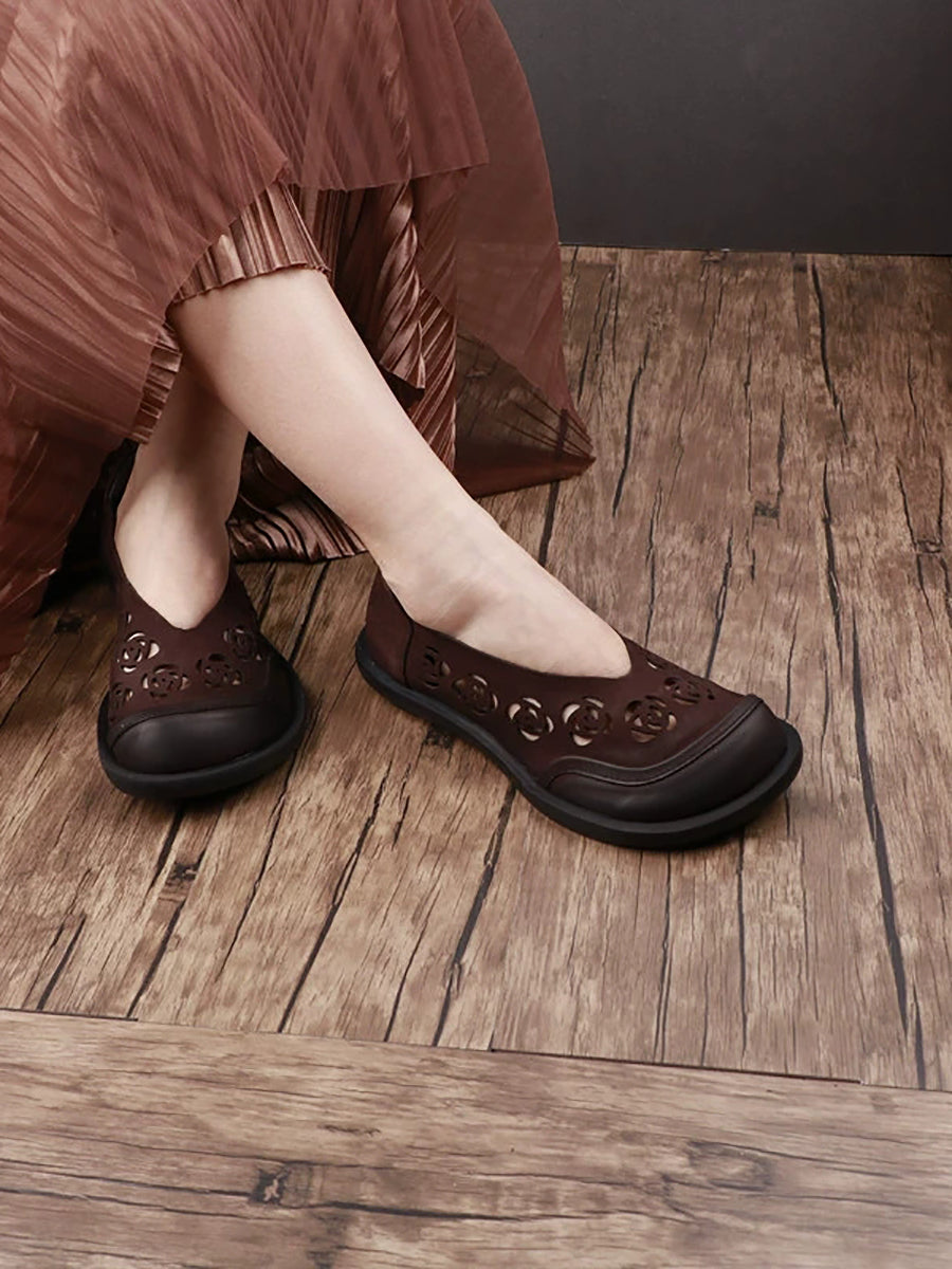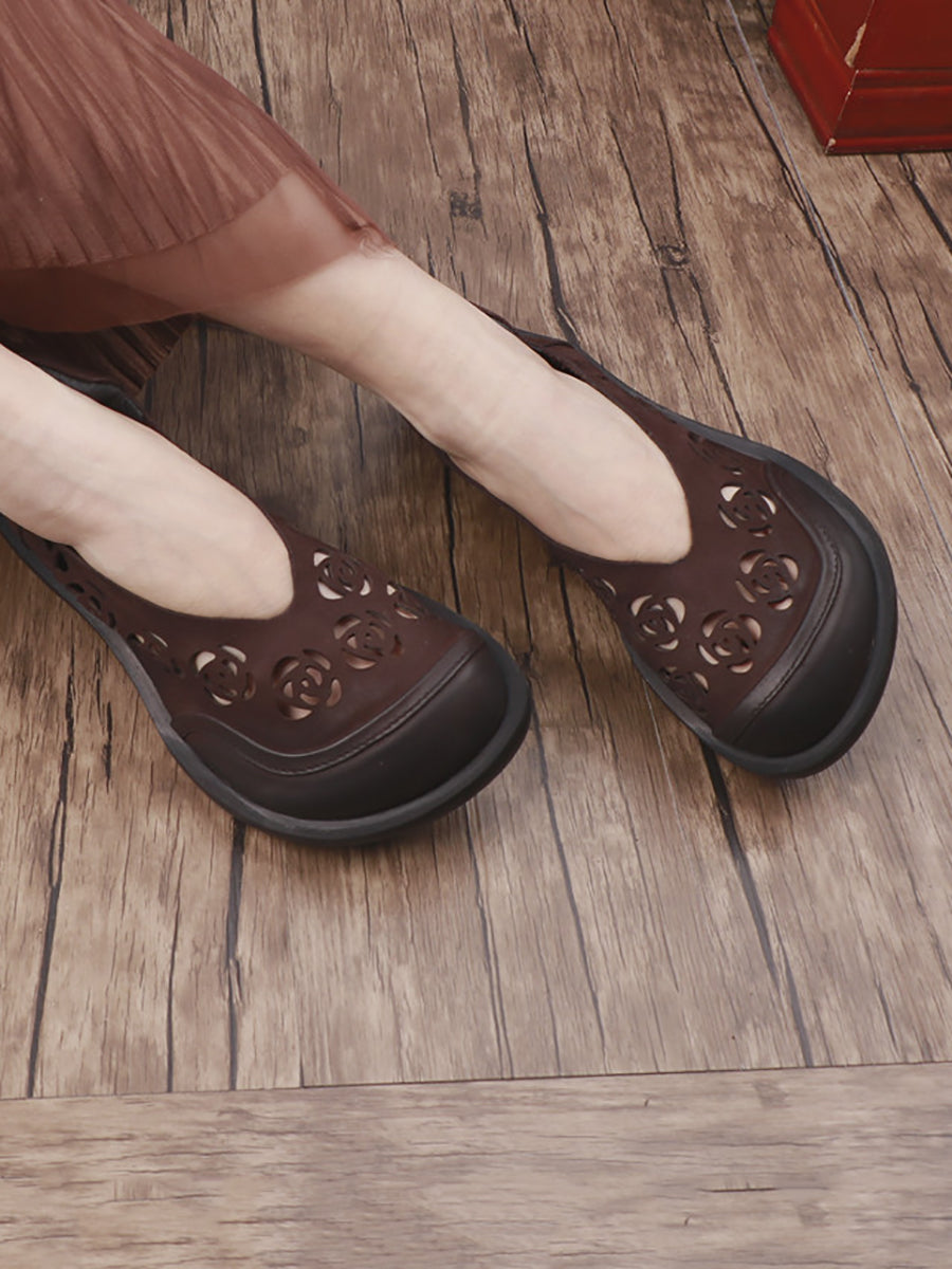 Women Summer Genuine Leather Hollow Out Flat Shoes