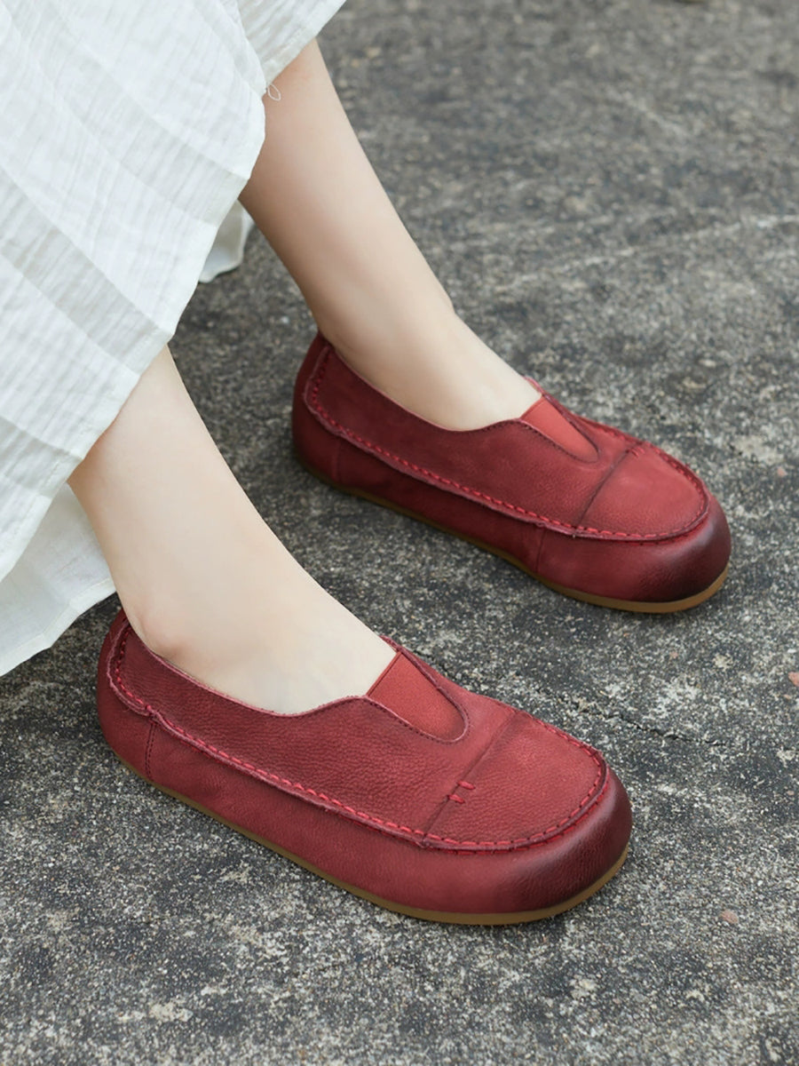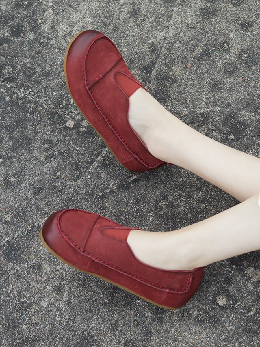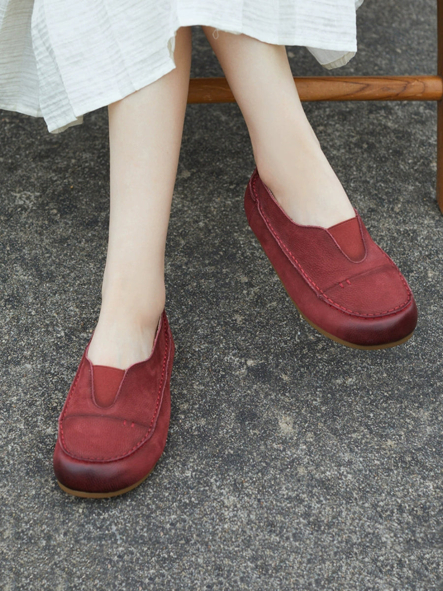 Women Summer Genuine Leather Spliced Flat Shoes