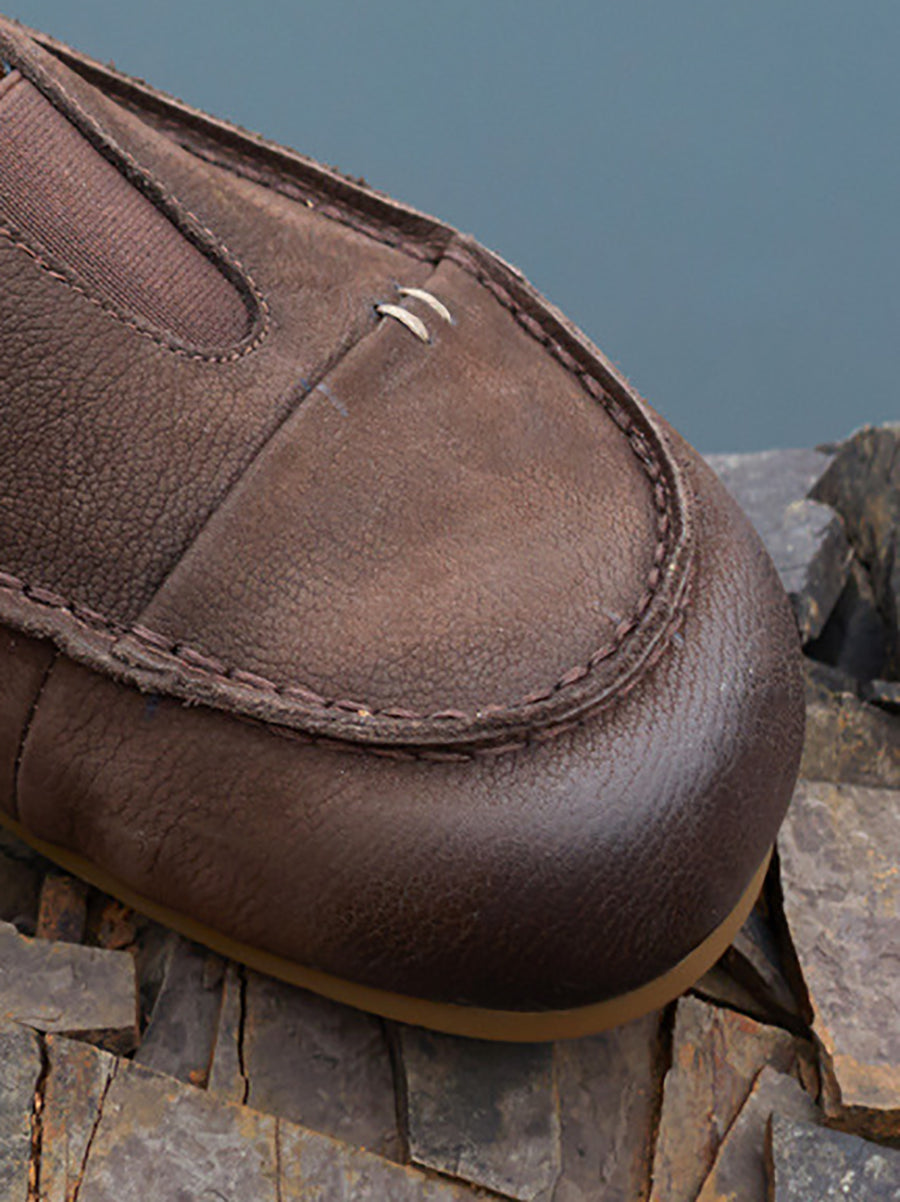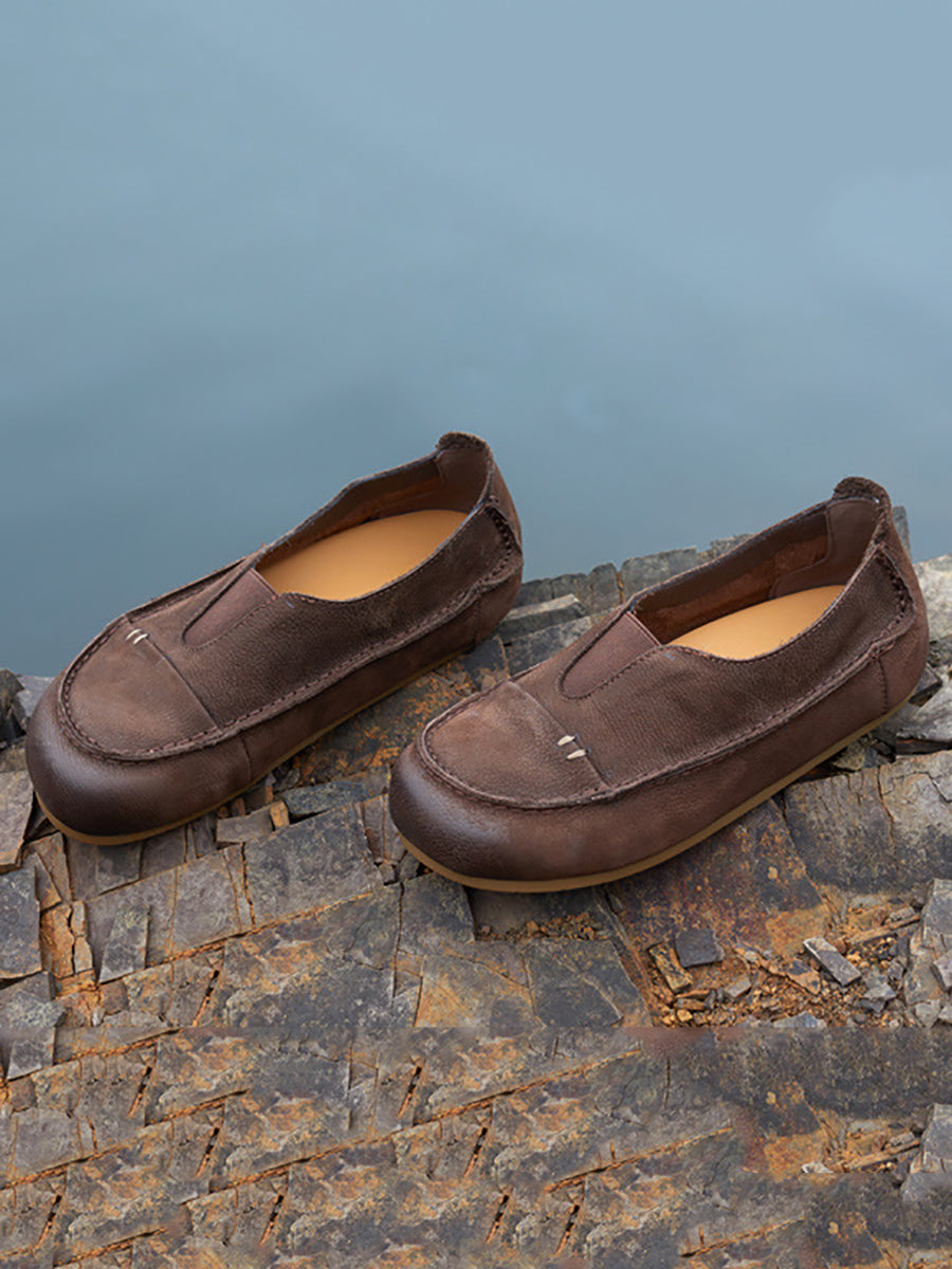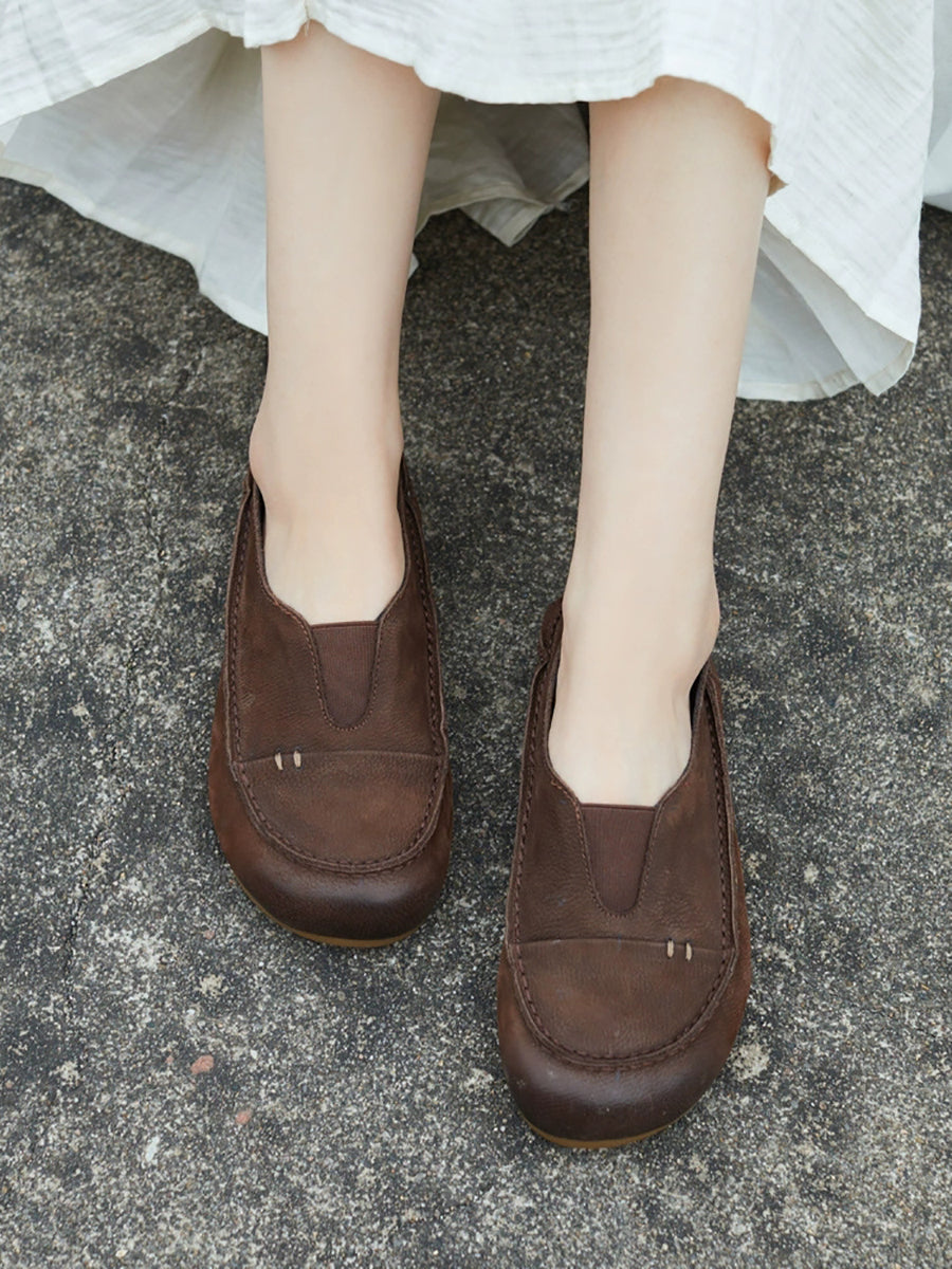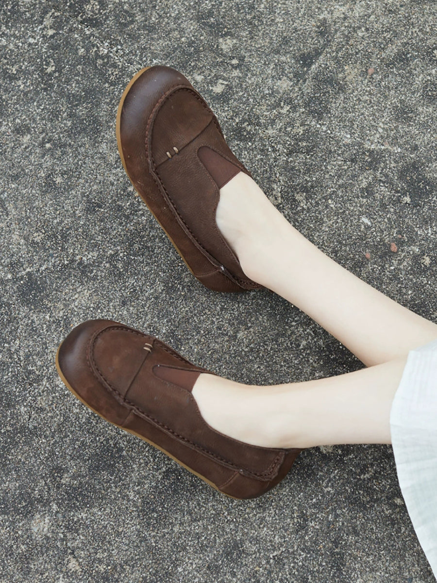 Women Summer Genuine Leather Spliced Flat Shoes