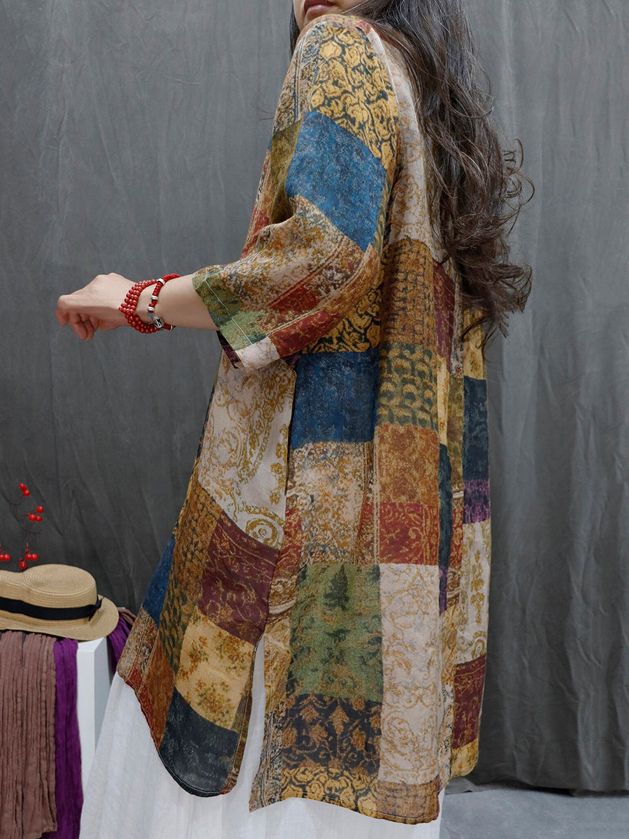 Women Summer Patchwork V-Neck 100%Ramie Blouse