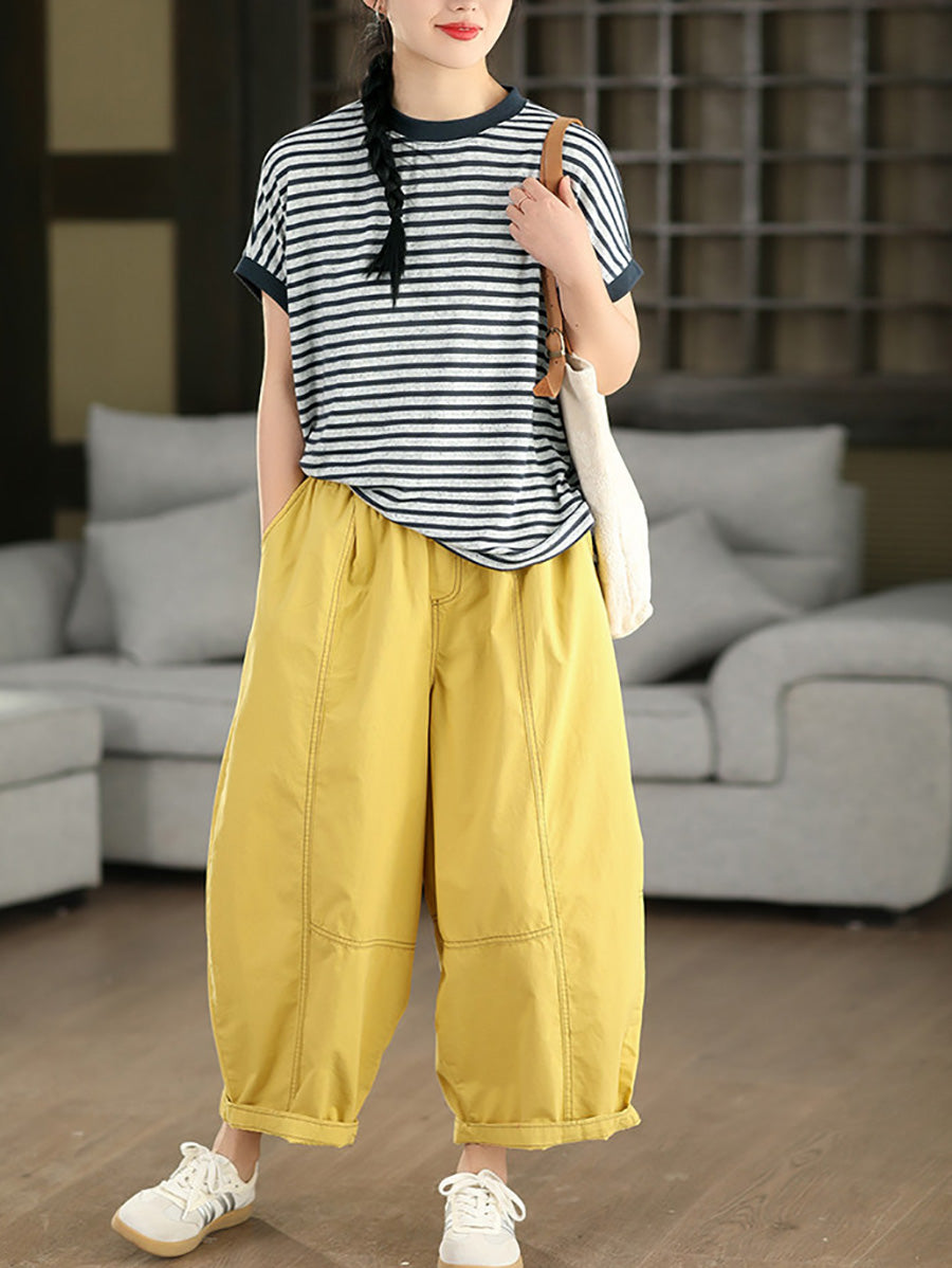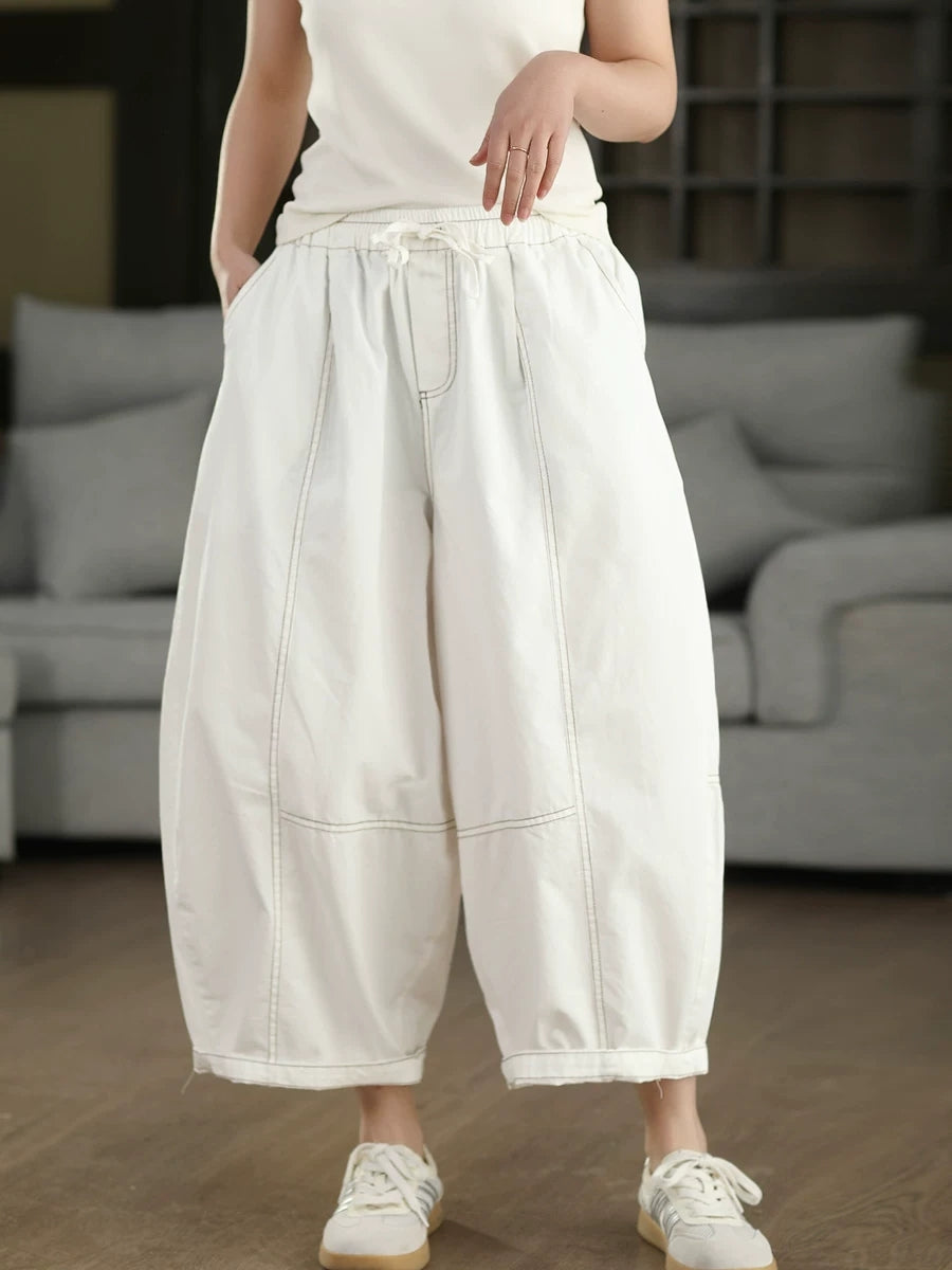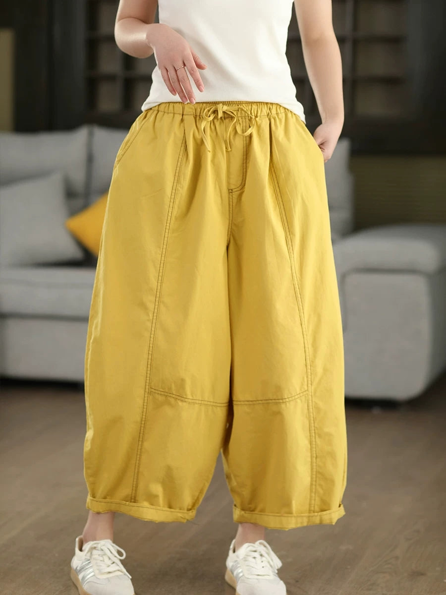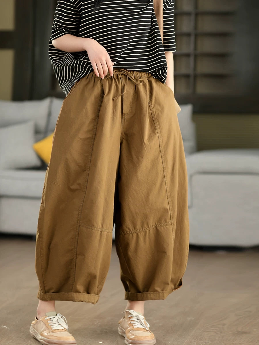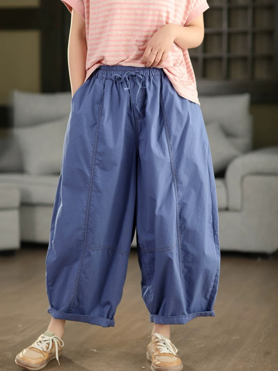 Women Summer Pure Color 100%Cotton Harem Pants