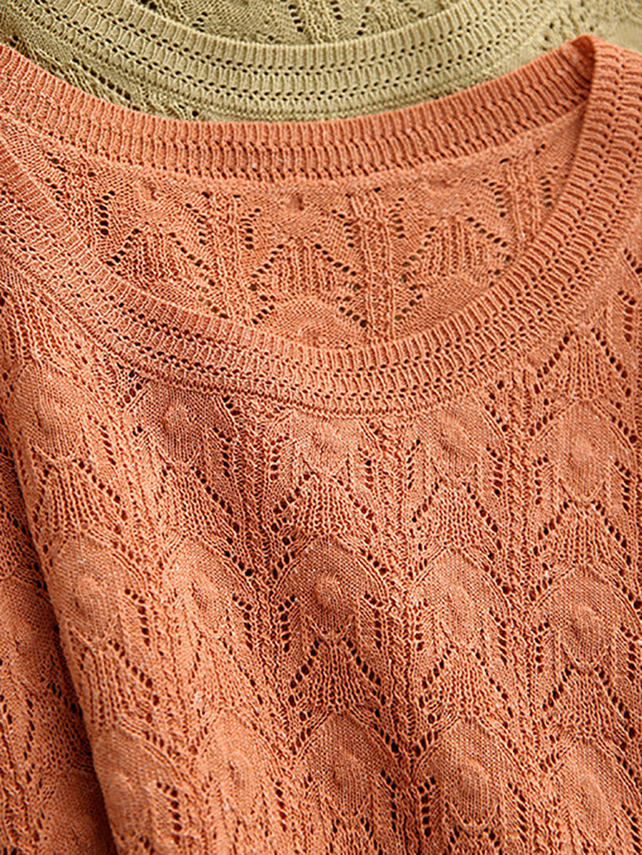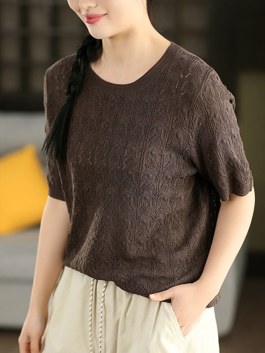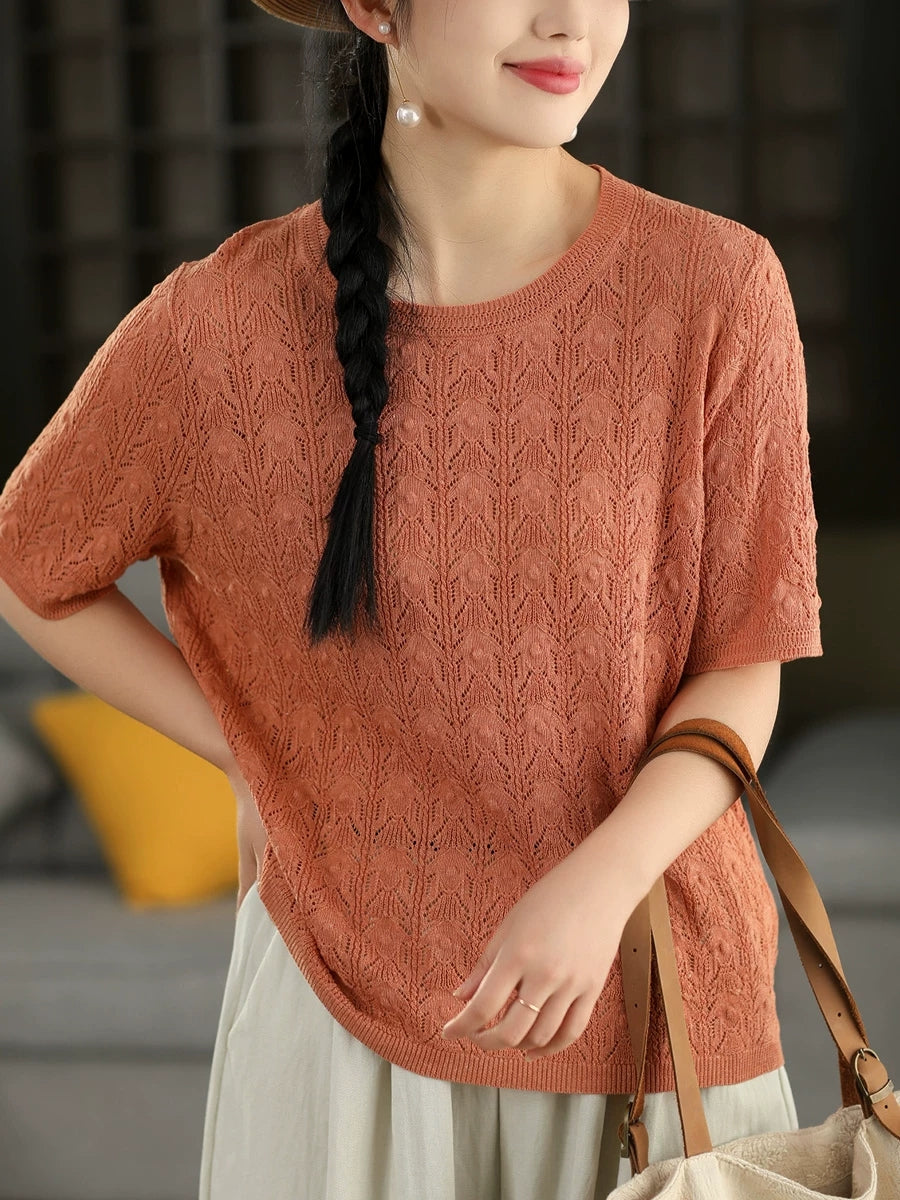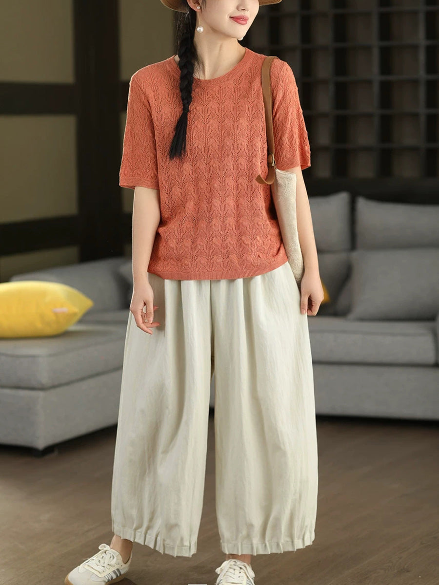 Women Summer Pure Color Linen Knitted Blouse