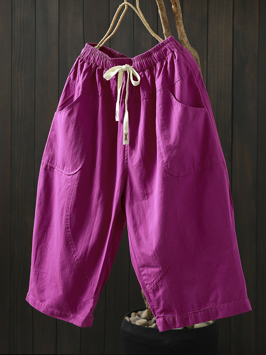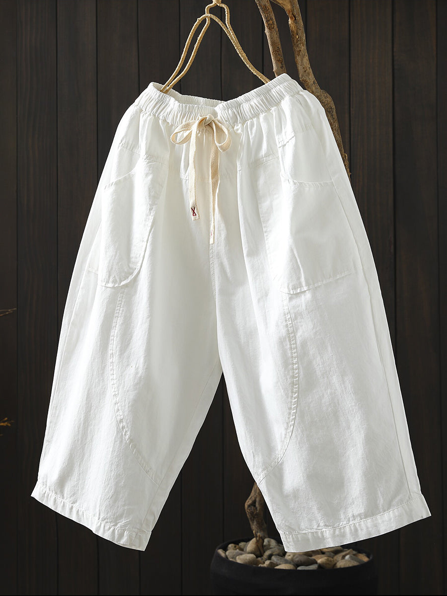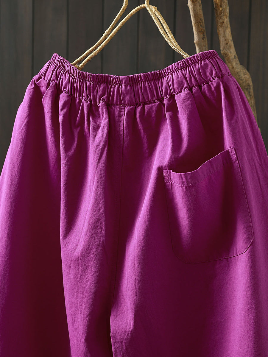 Women Summer Pure Color Cotton Wide-leg Pants