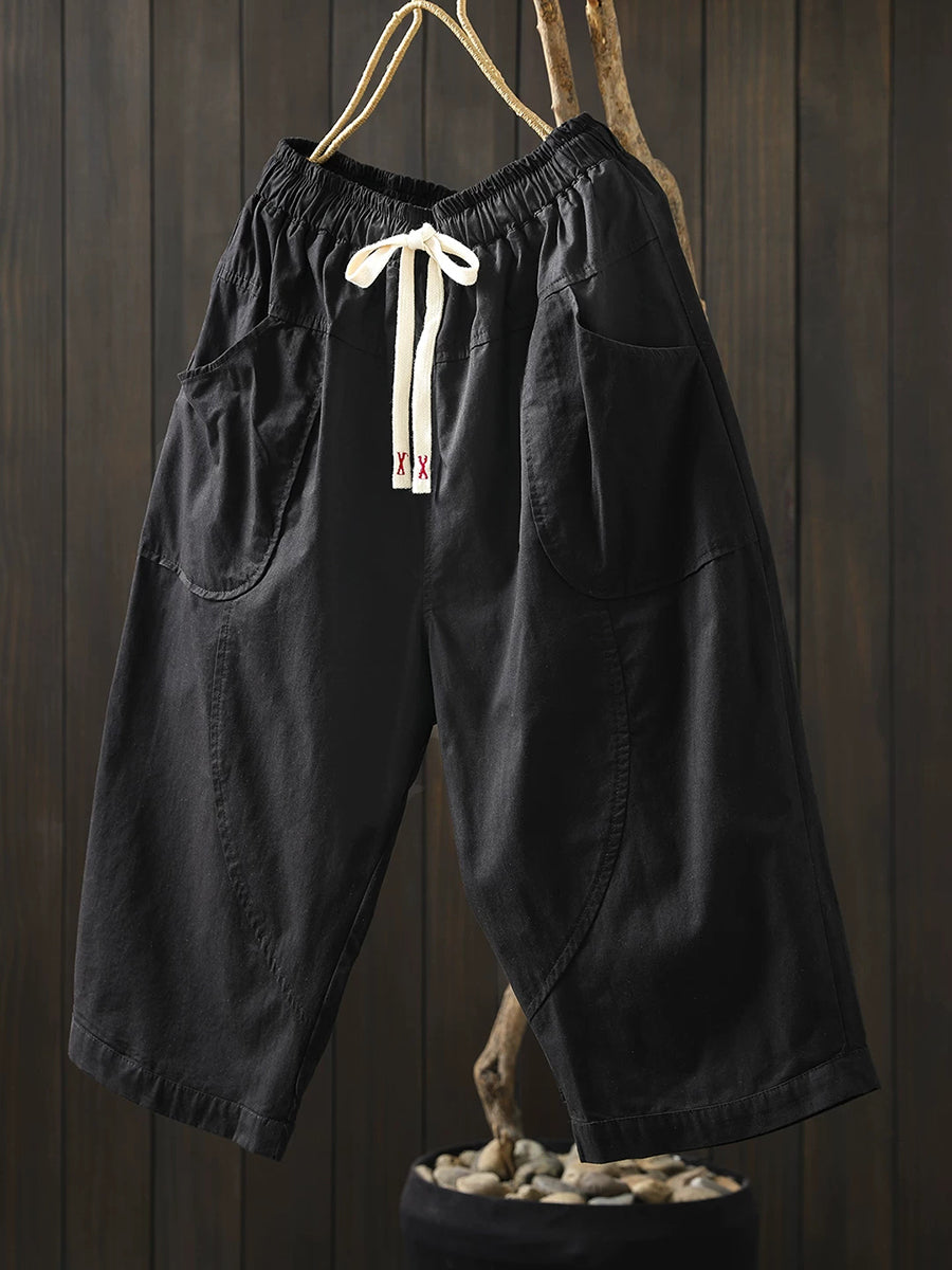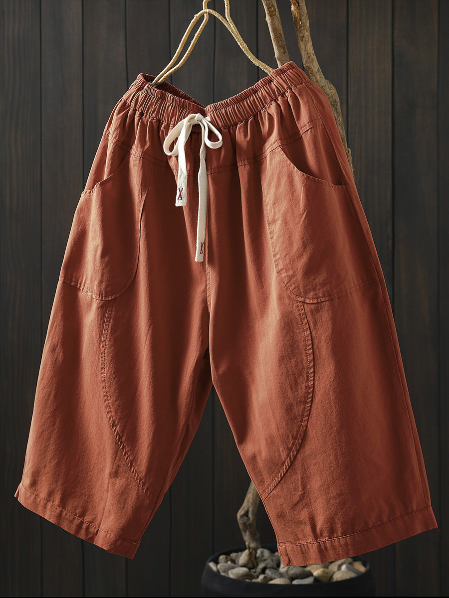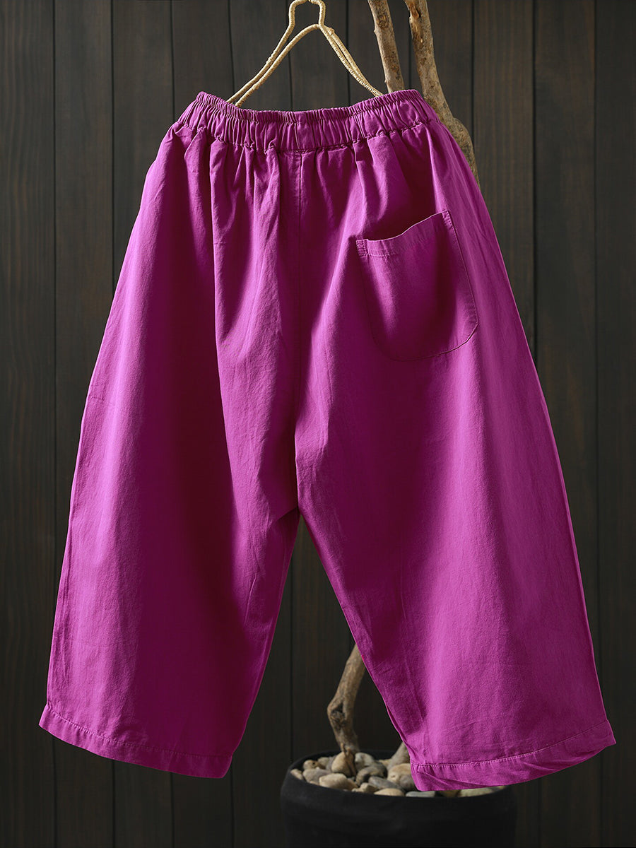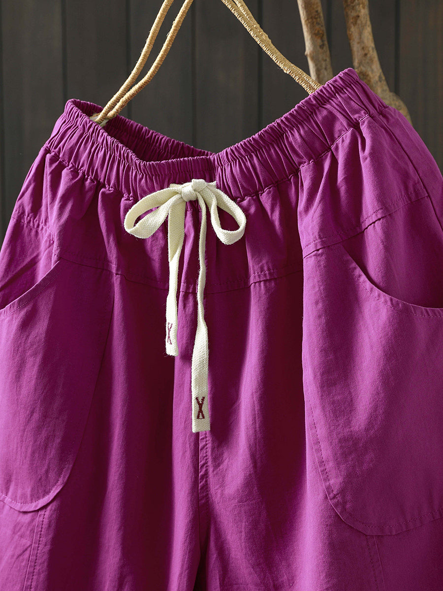 Women Summer Pure Color Cotton Wide-leg Pants