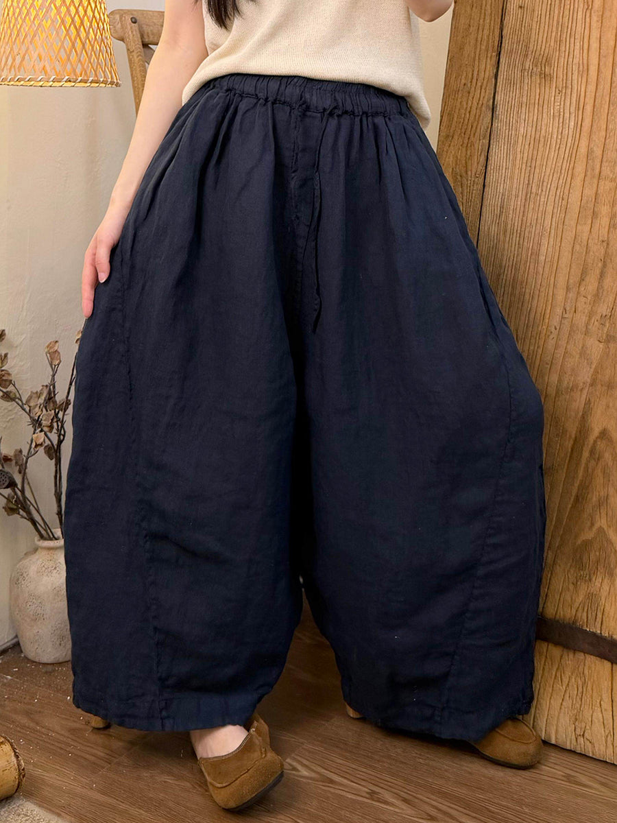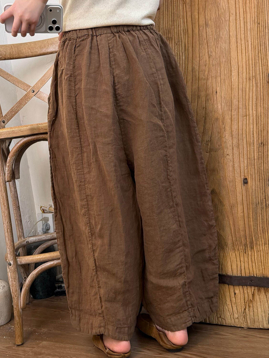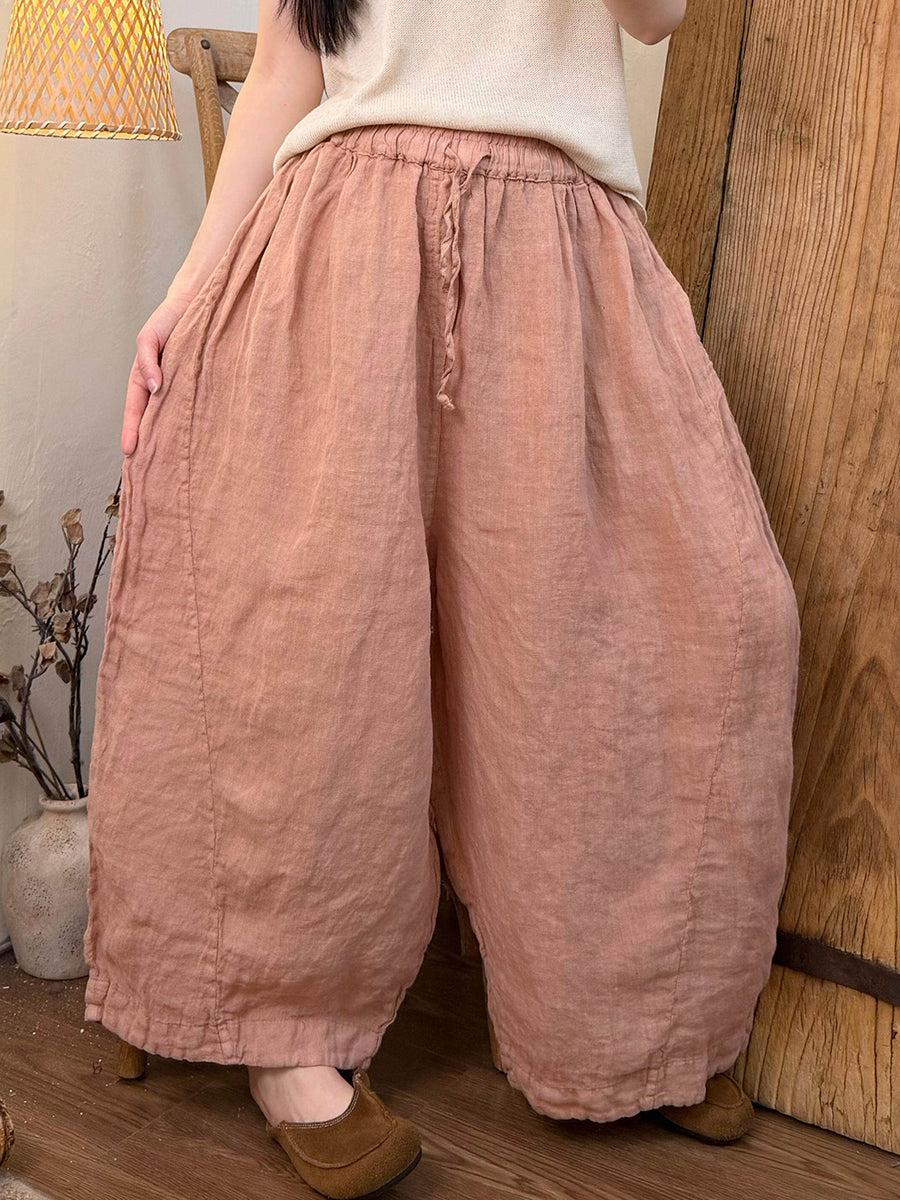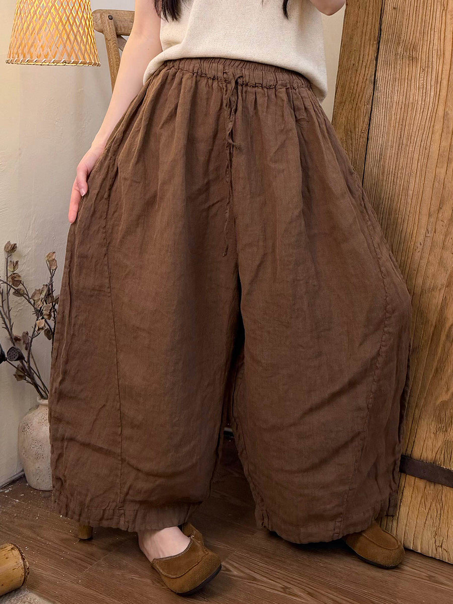 Women Summer Pure Color Linen Wide-leg Pants