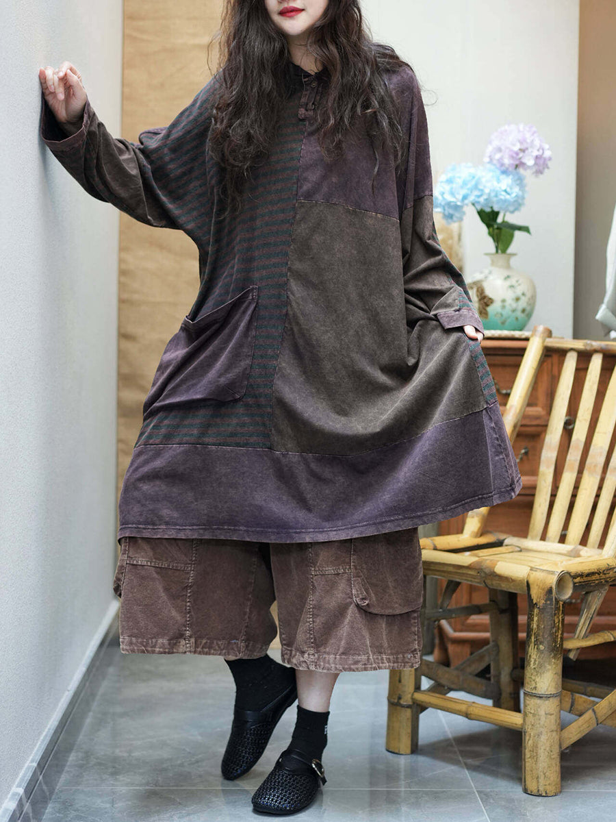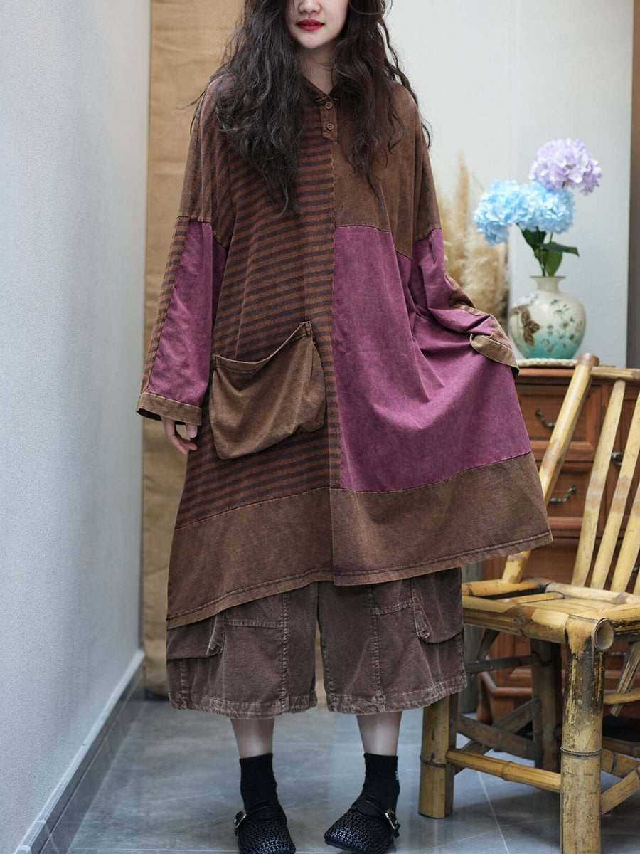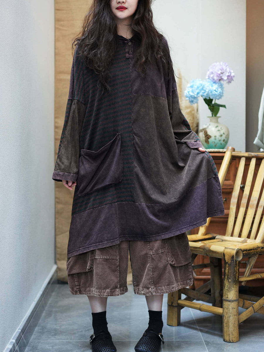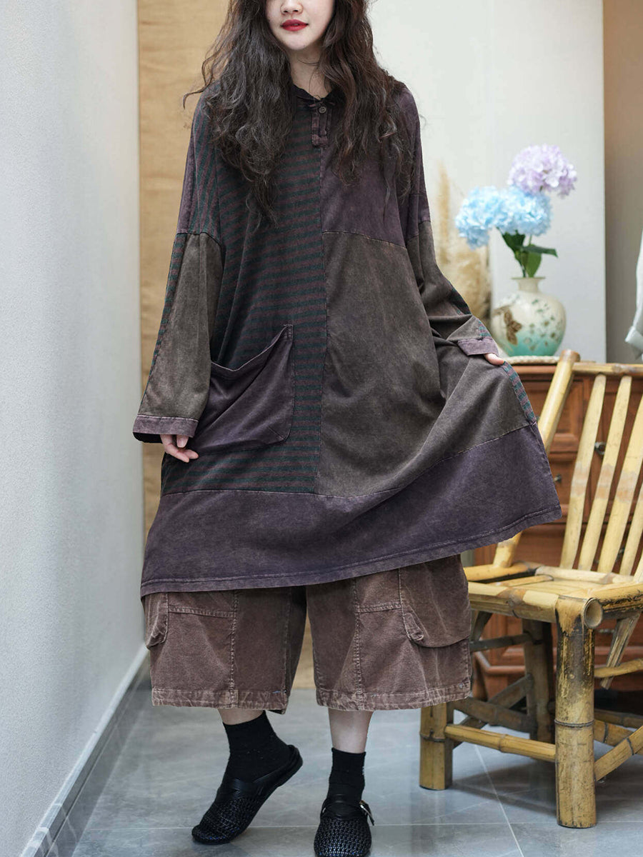 Women Summer Retro Stripe Spliced Hooded Dress