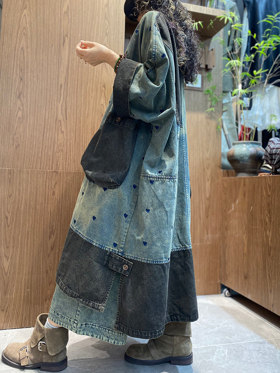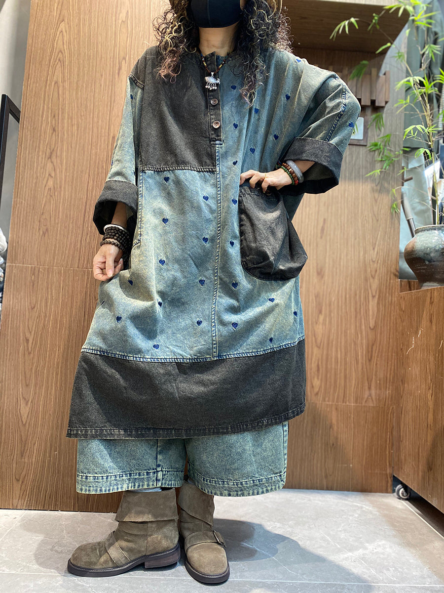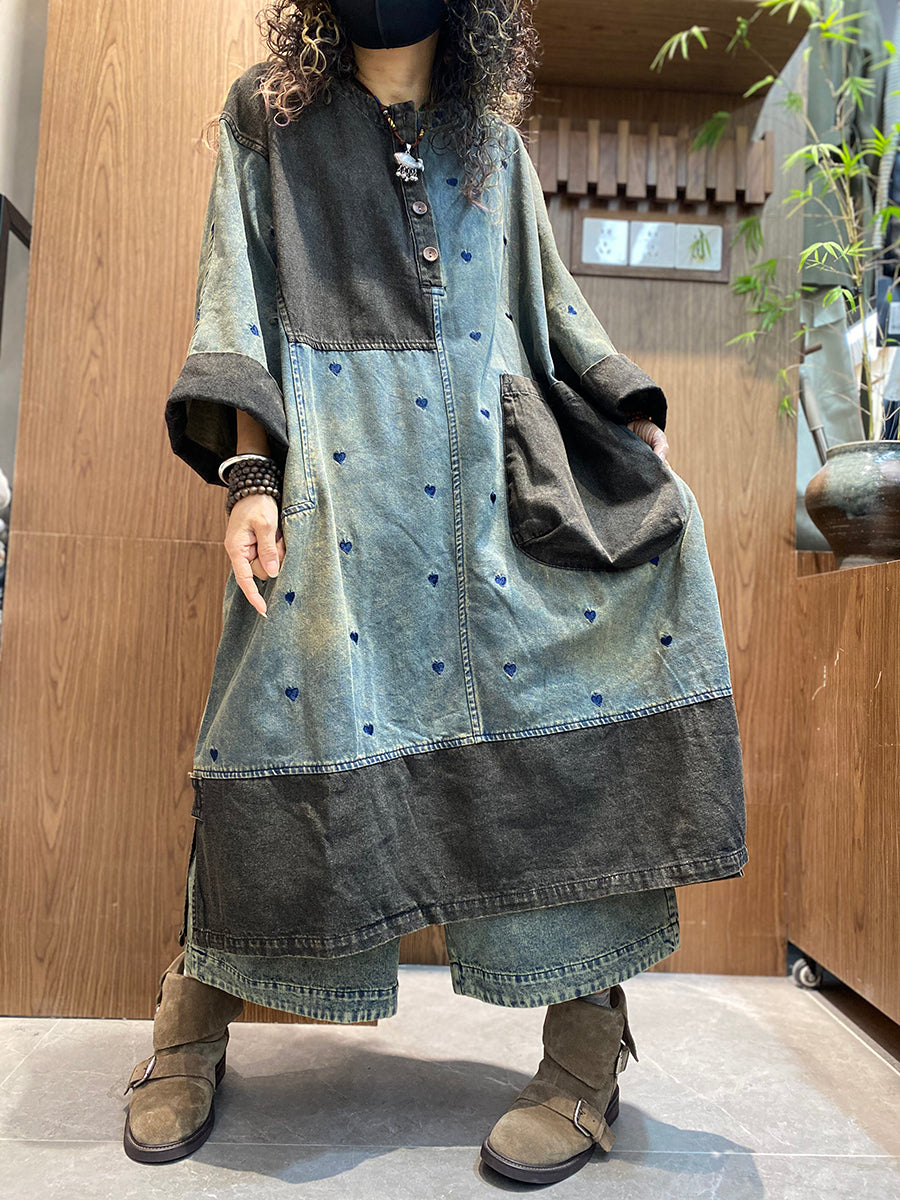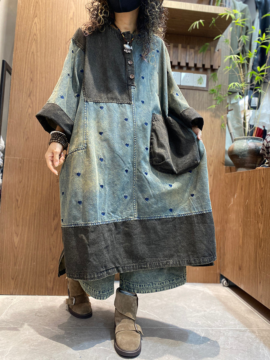 Women Summer Vintage Denim Spliced O-Neck Dress