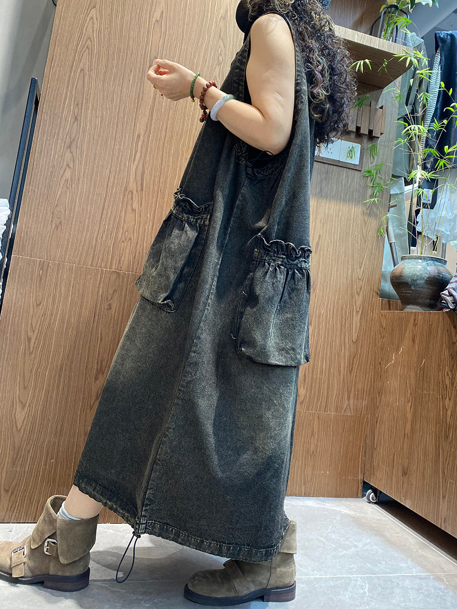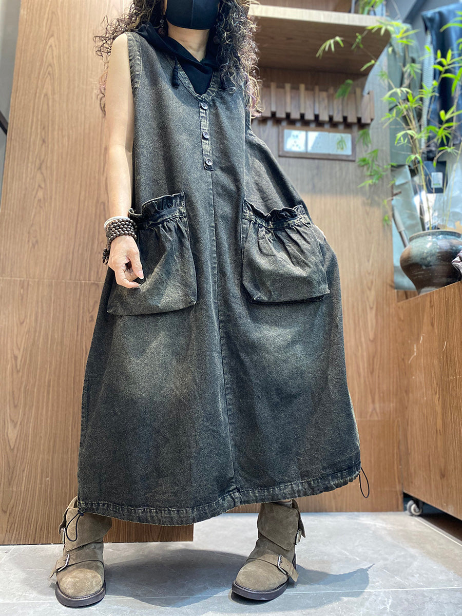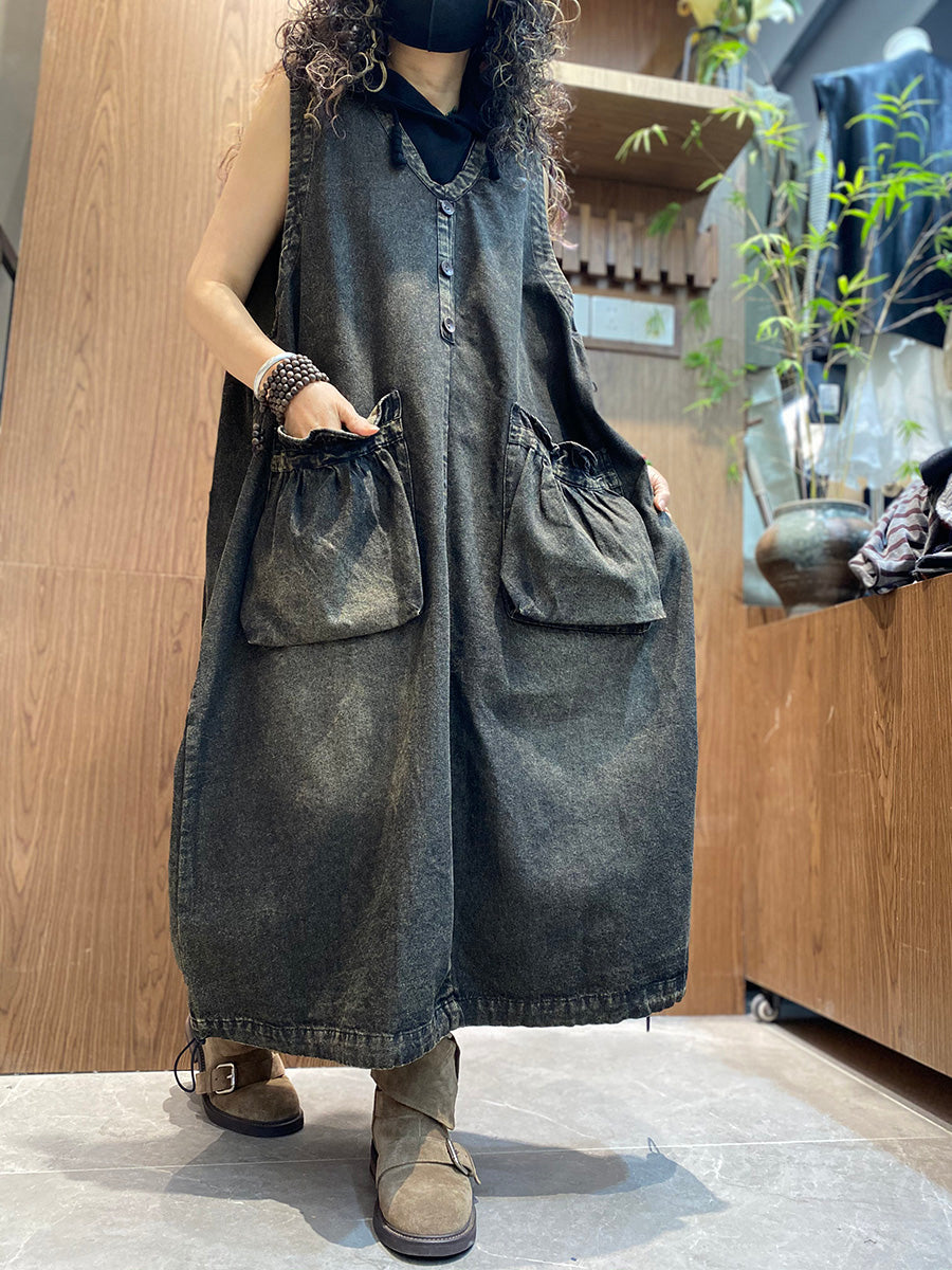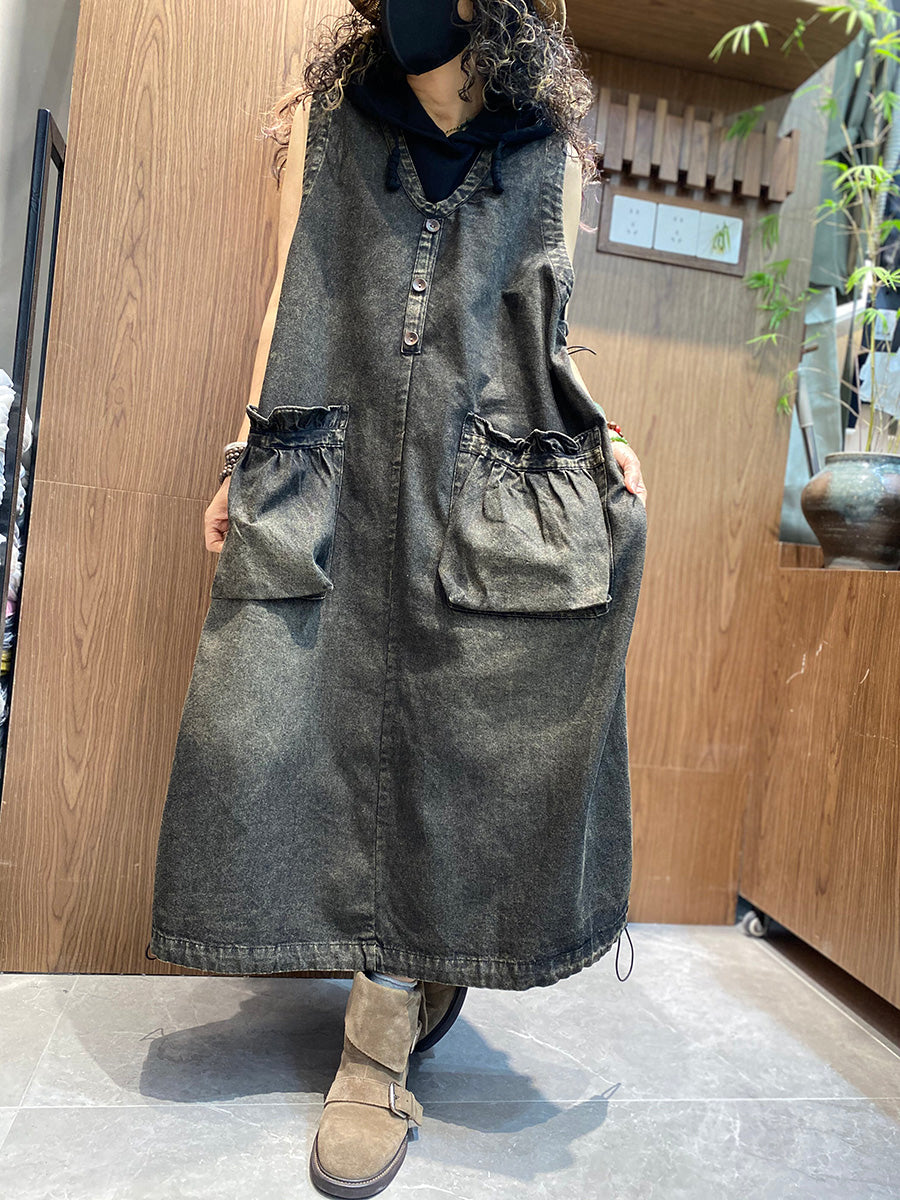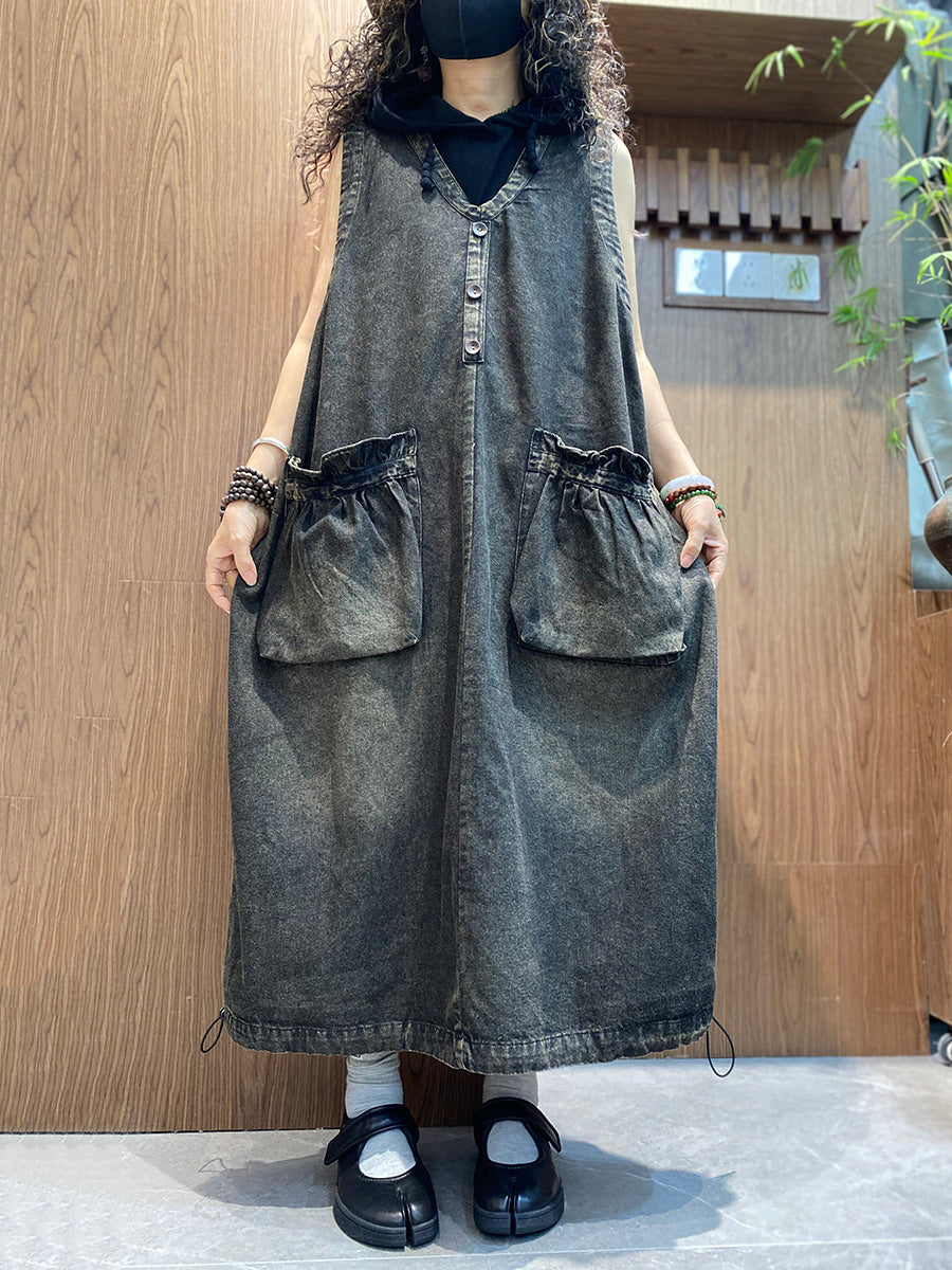 Women Summer Vintage Denim V-Neck Vest Dress