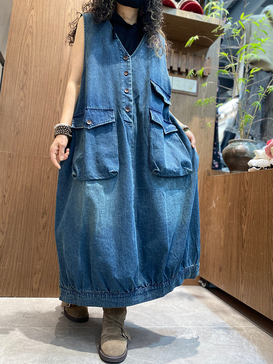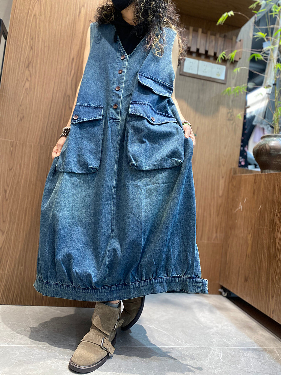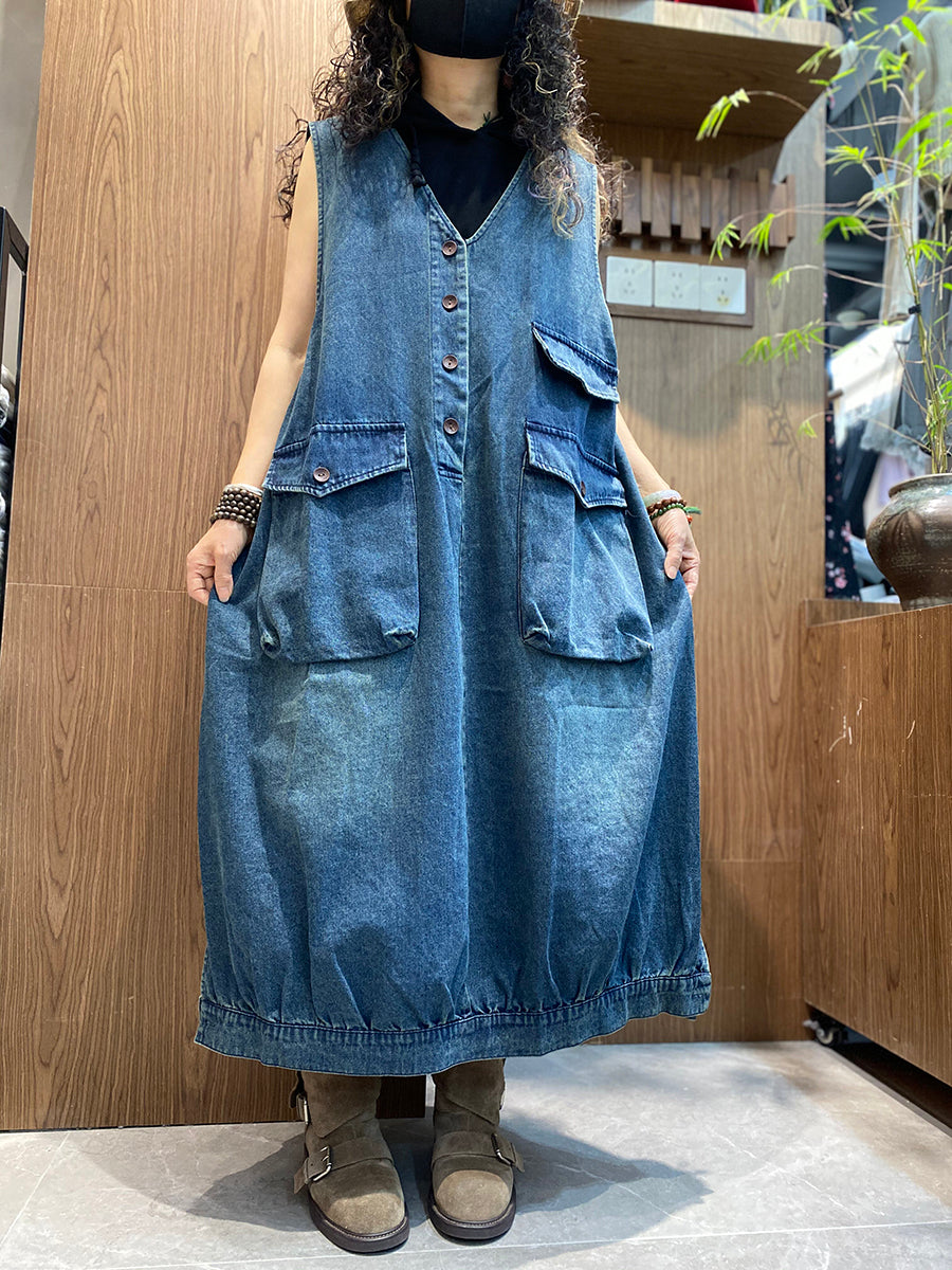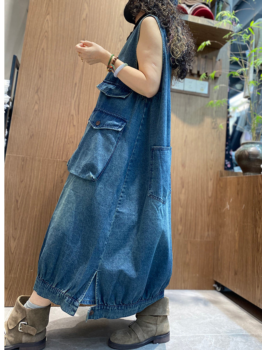 Women Summer Vintage Denim Vest Dress