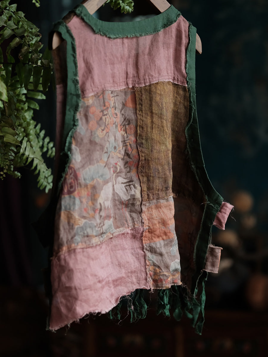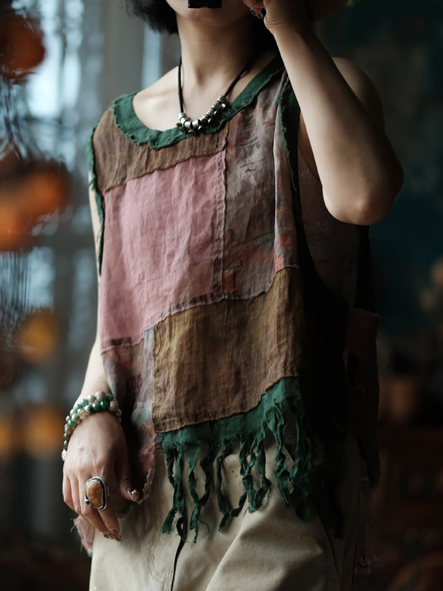 Women Summer Vintage Patchwork O-Neck Tank Top