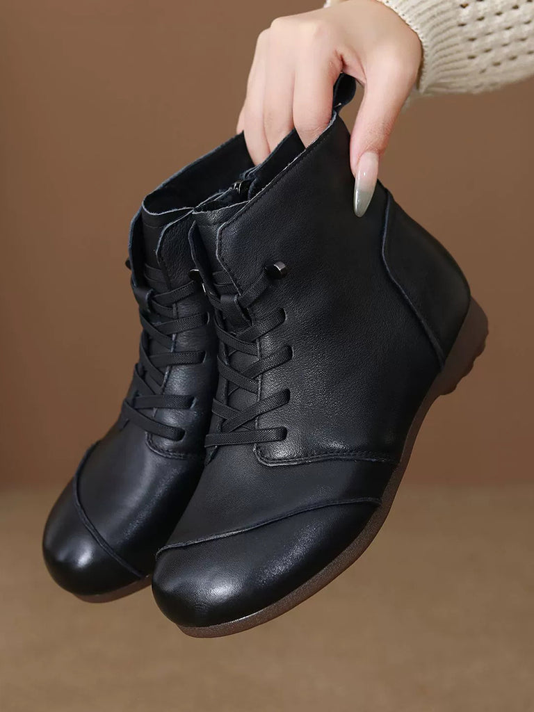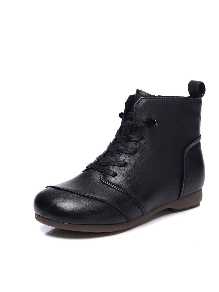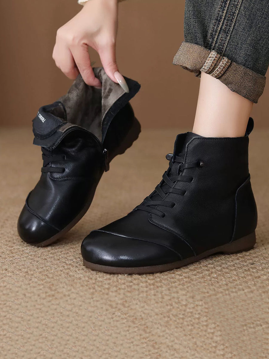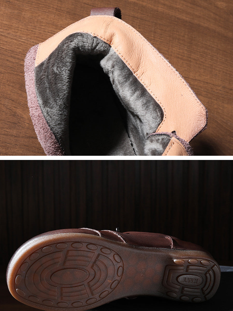 Women Vintage Genuine Leather Fleece-lined Ankle Boots