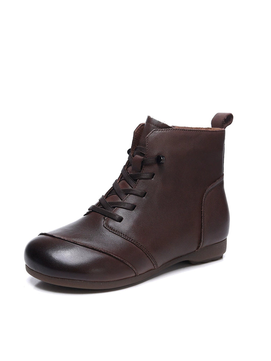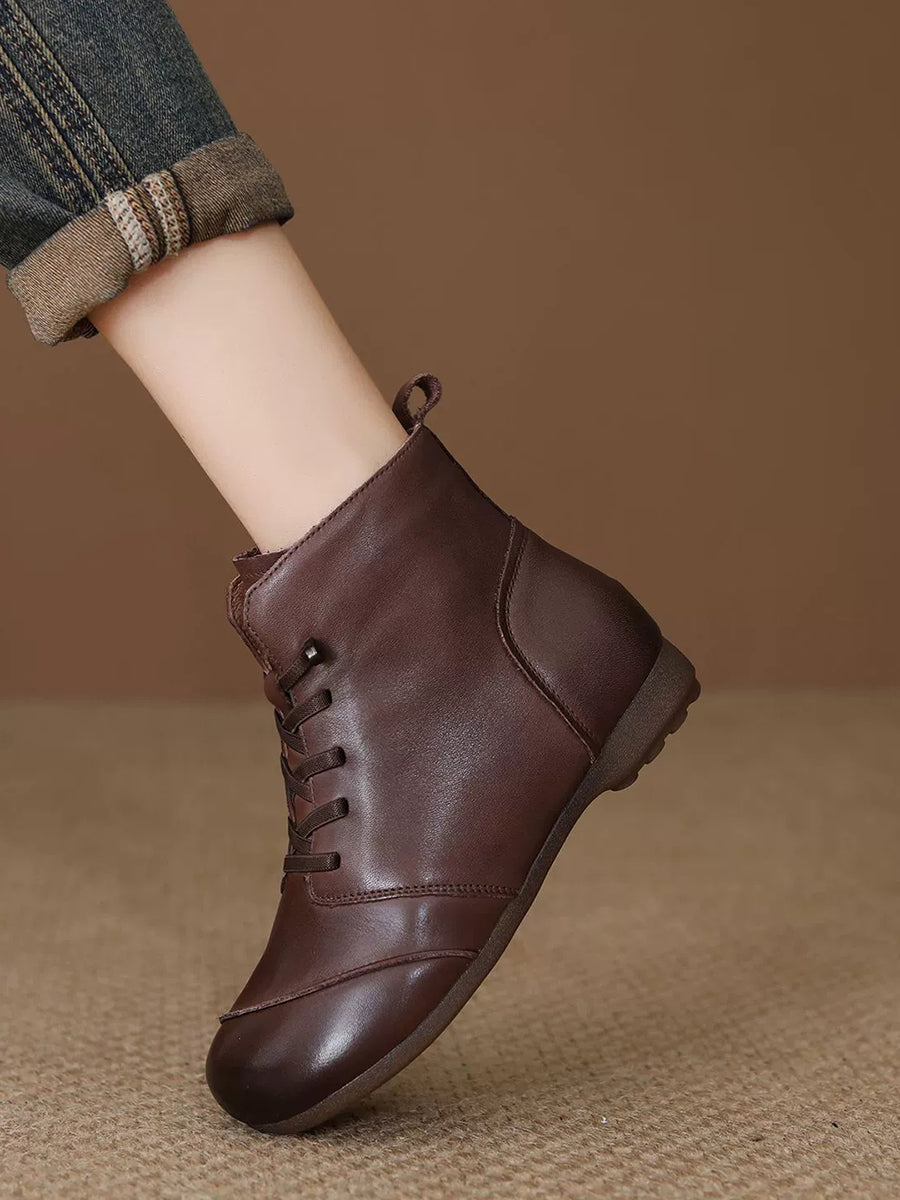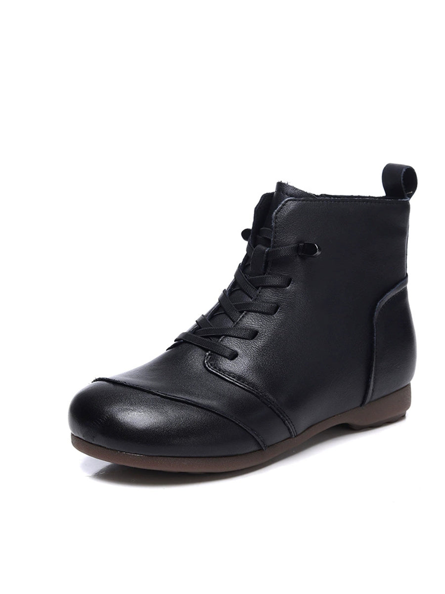 Women Vintage Genuine Leather Fleece-lined Ankle Boots