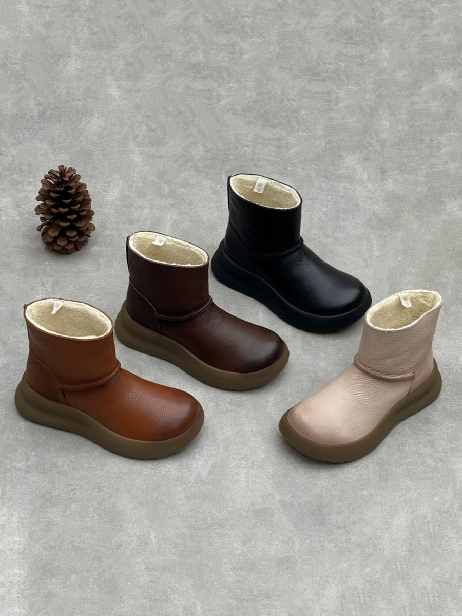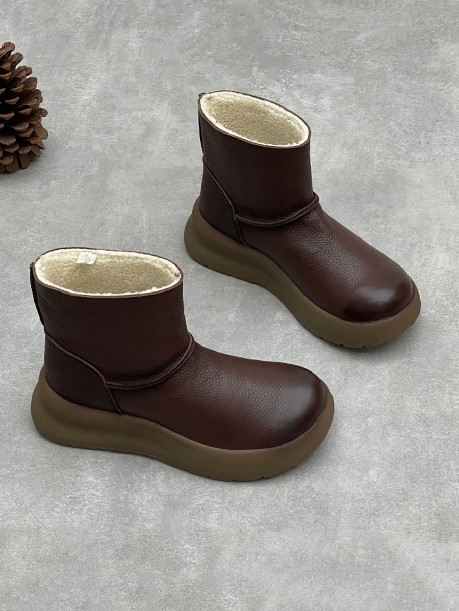 Women Vintage Genuine Leather Fleece-lined Platform Boots