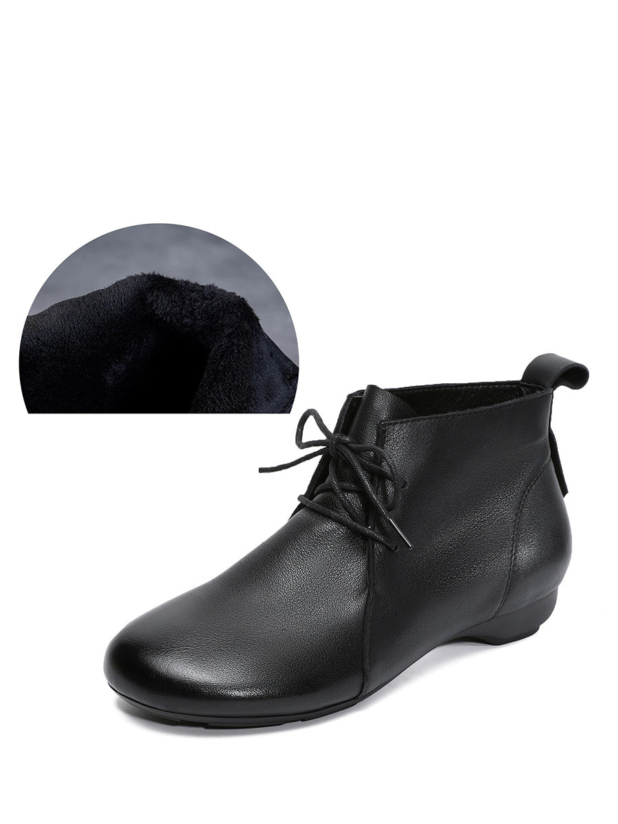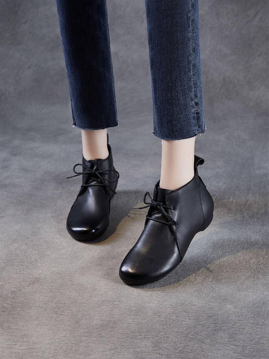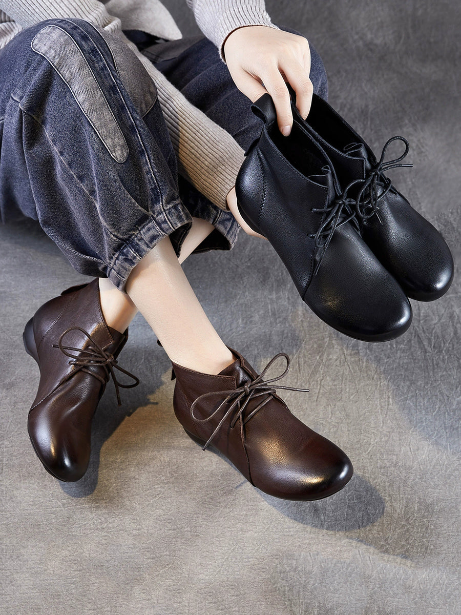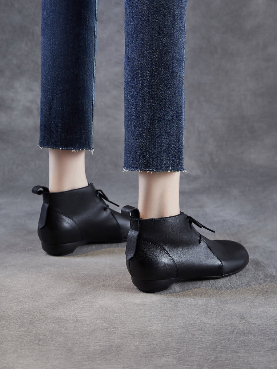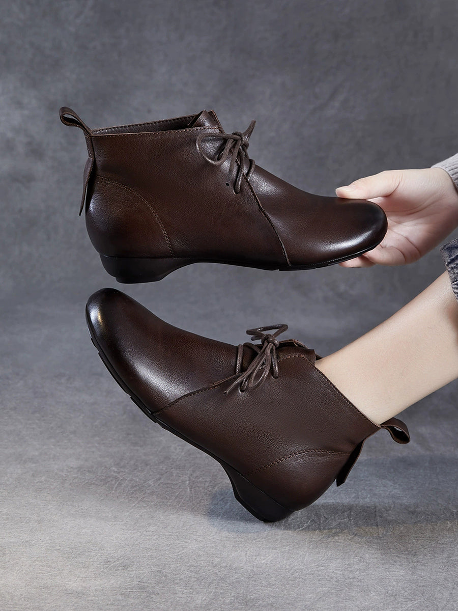 Women Vintage Genuine Leather Low Heel Ankle Boots