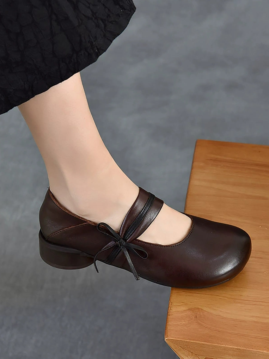 Women Vintage Genuine Leather Mid-Heel Shoes