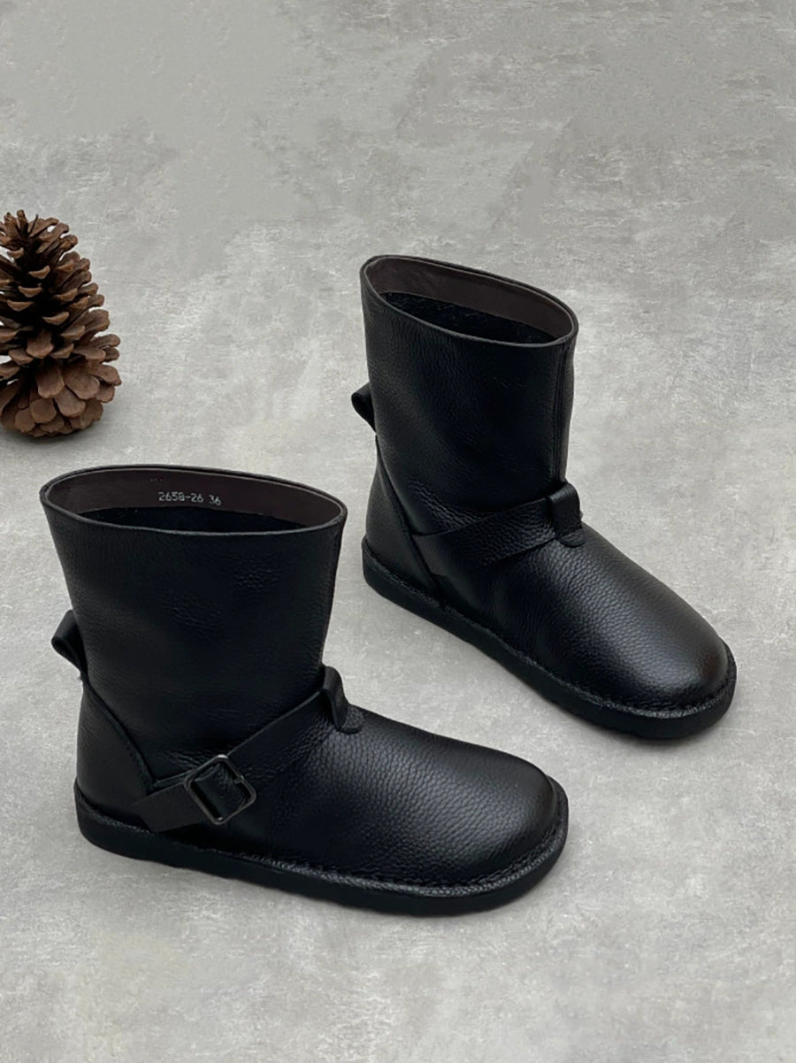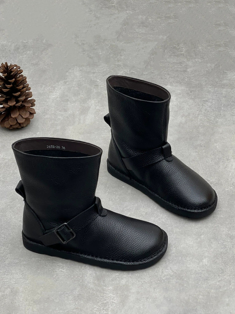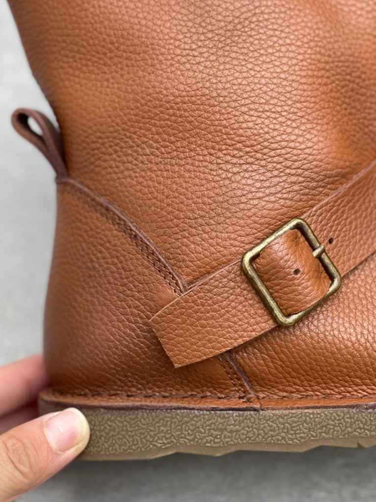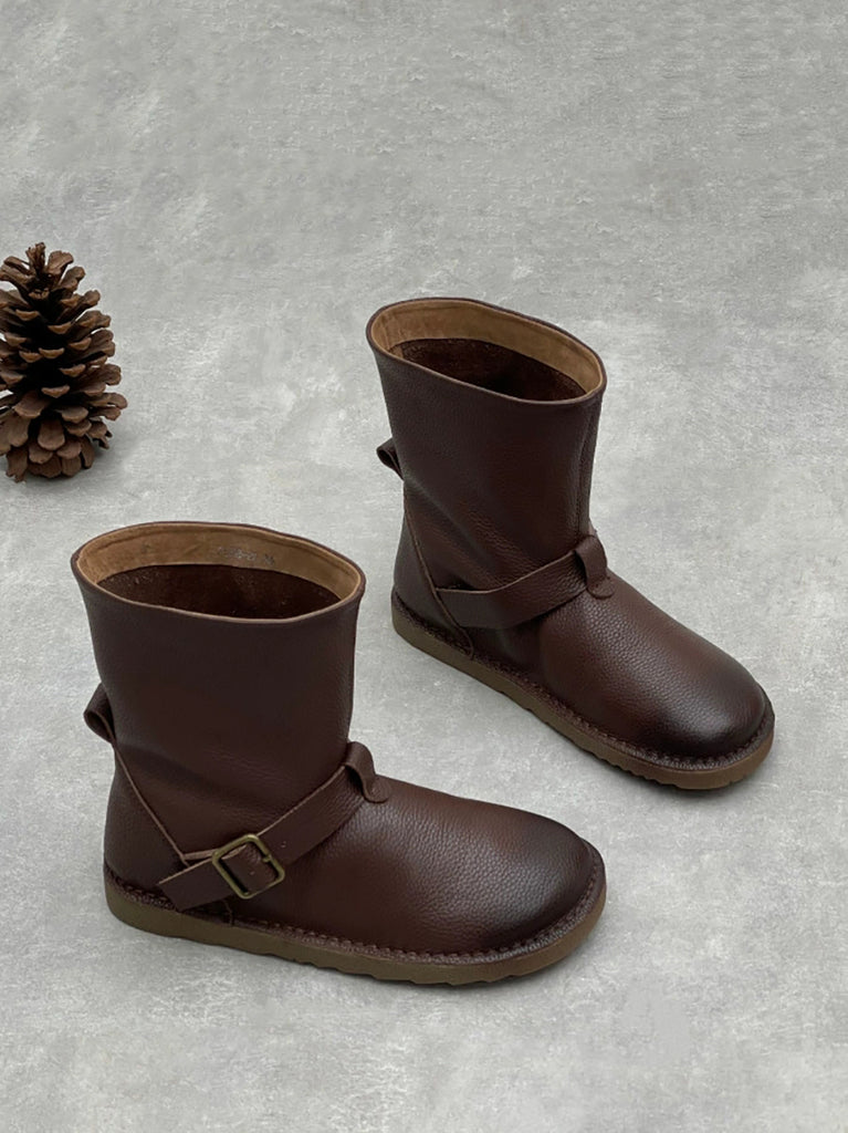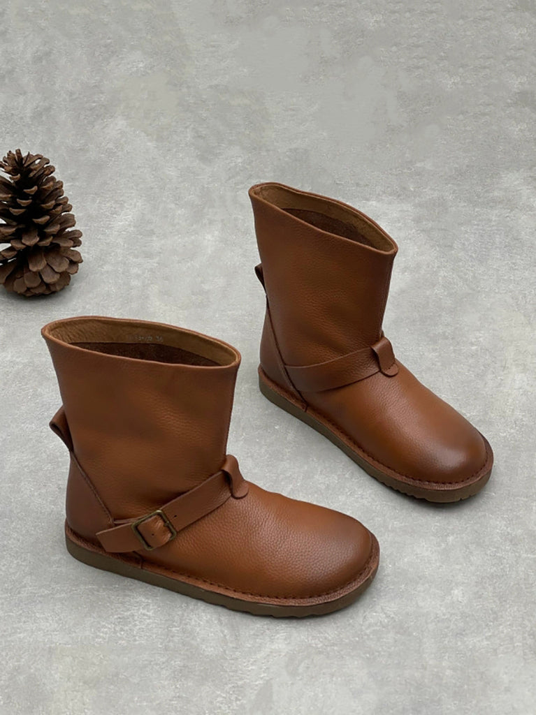 Women Vintage Genuine Leather Pure Color Martin Boots