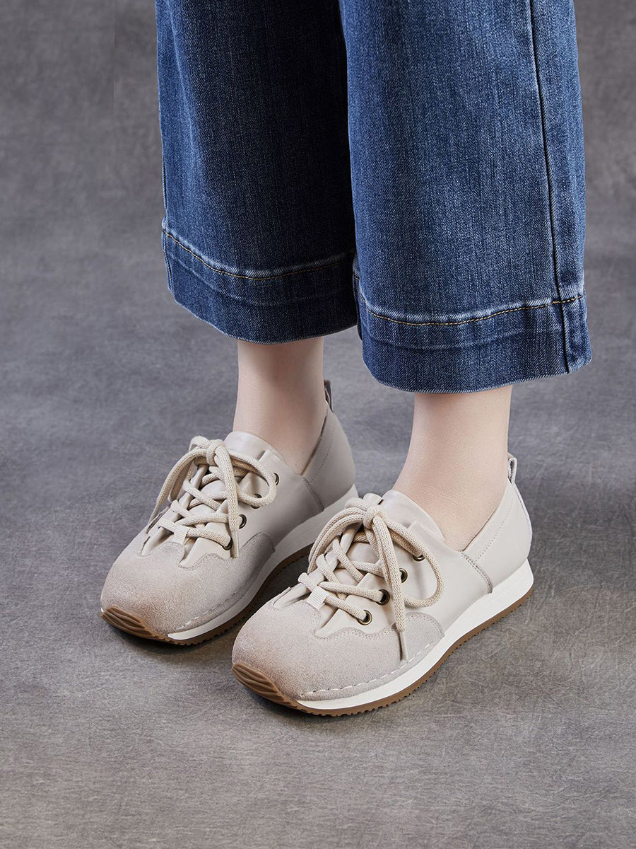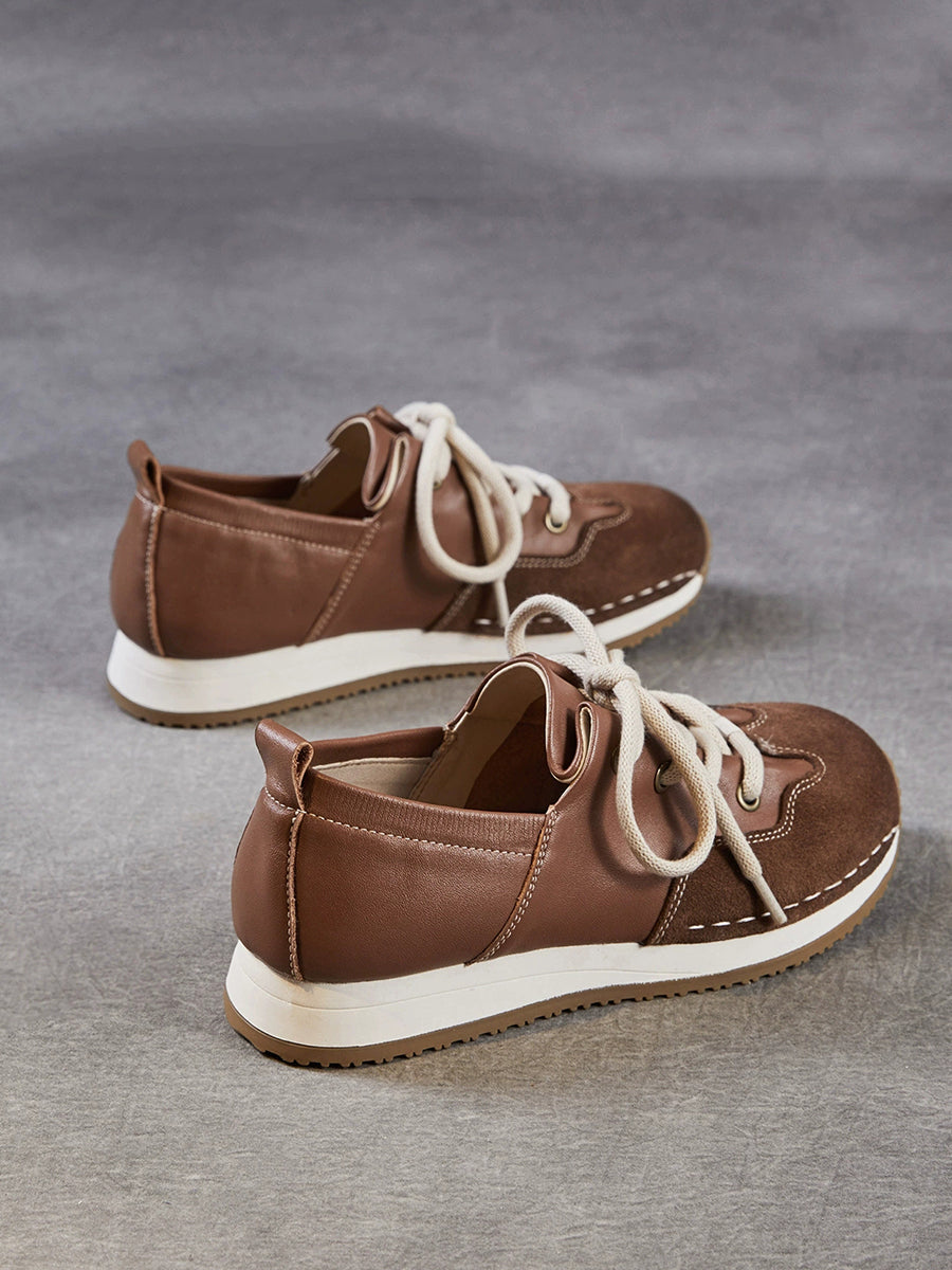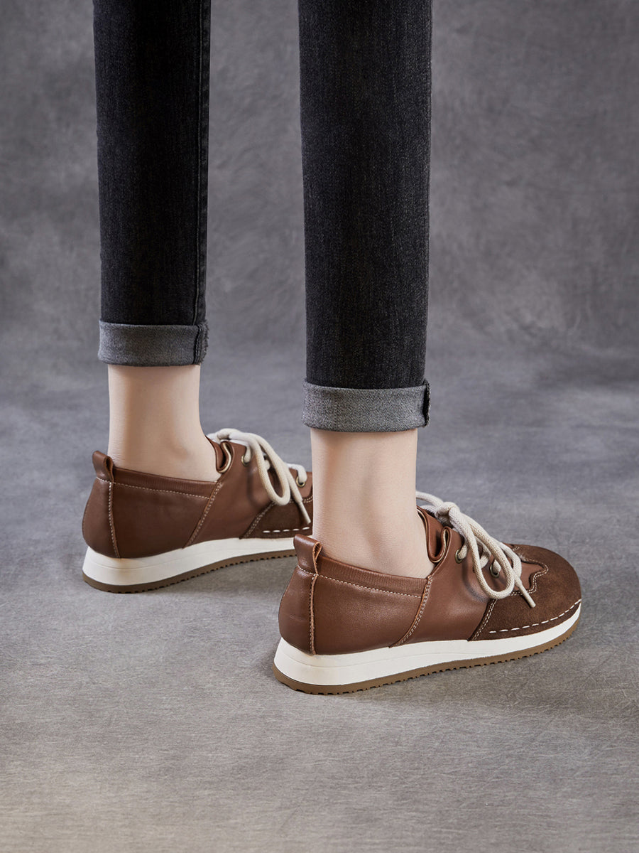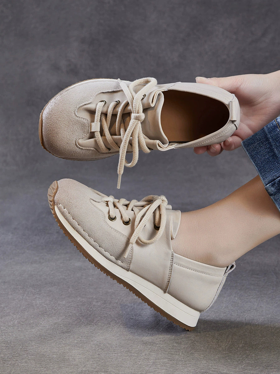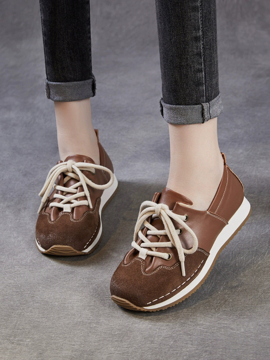 Women Vintage Genuine Leather Spliced Shoes