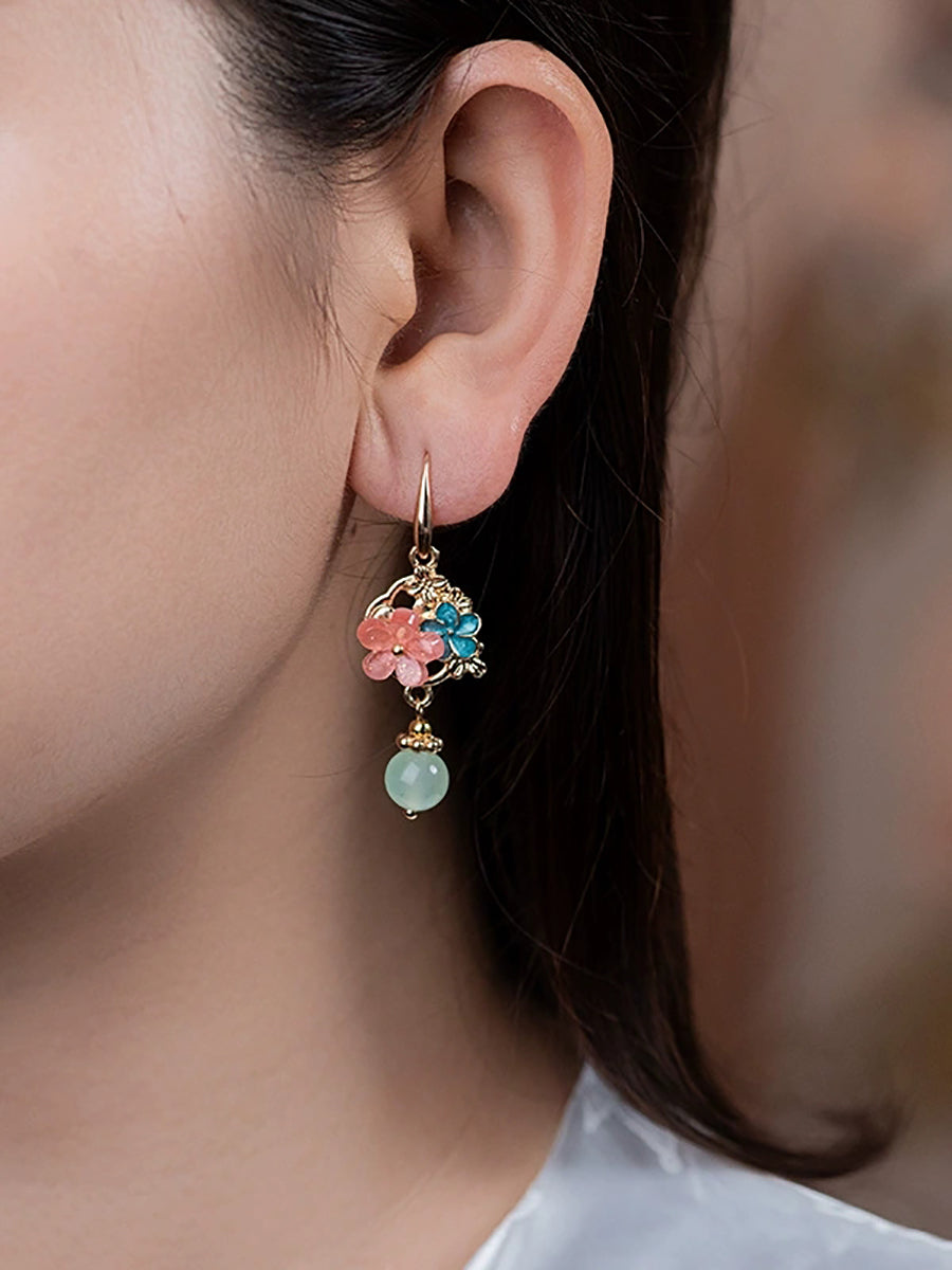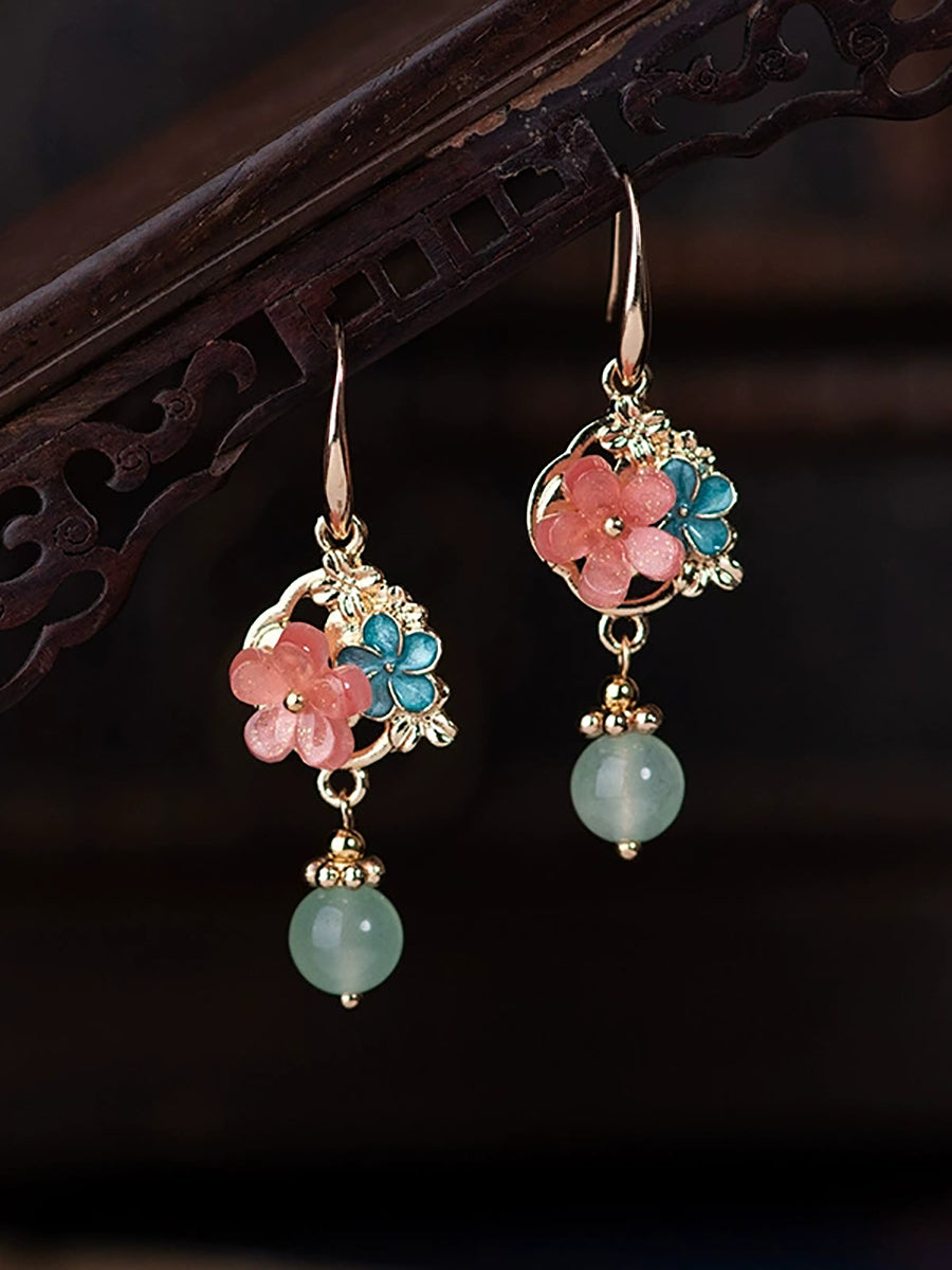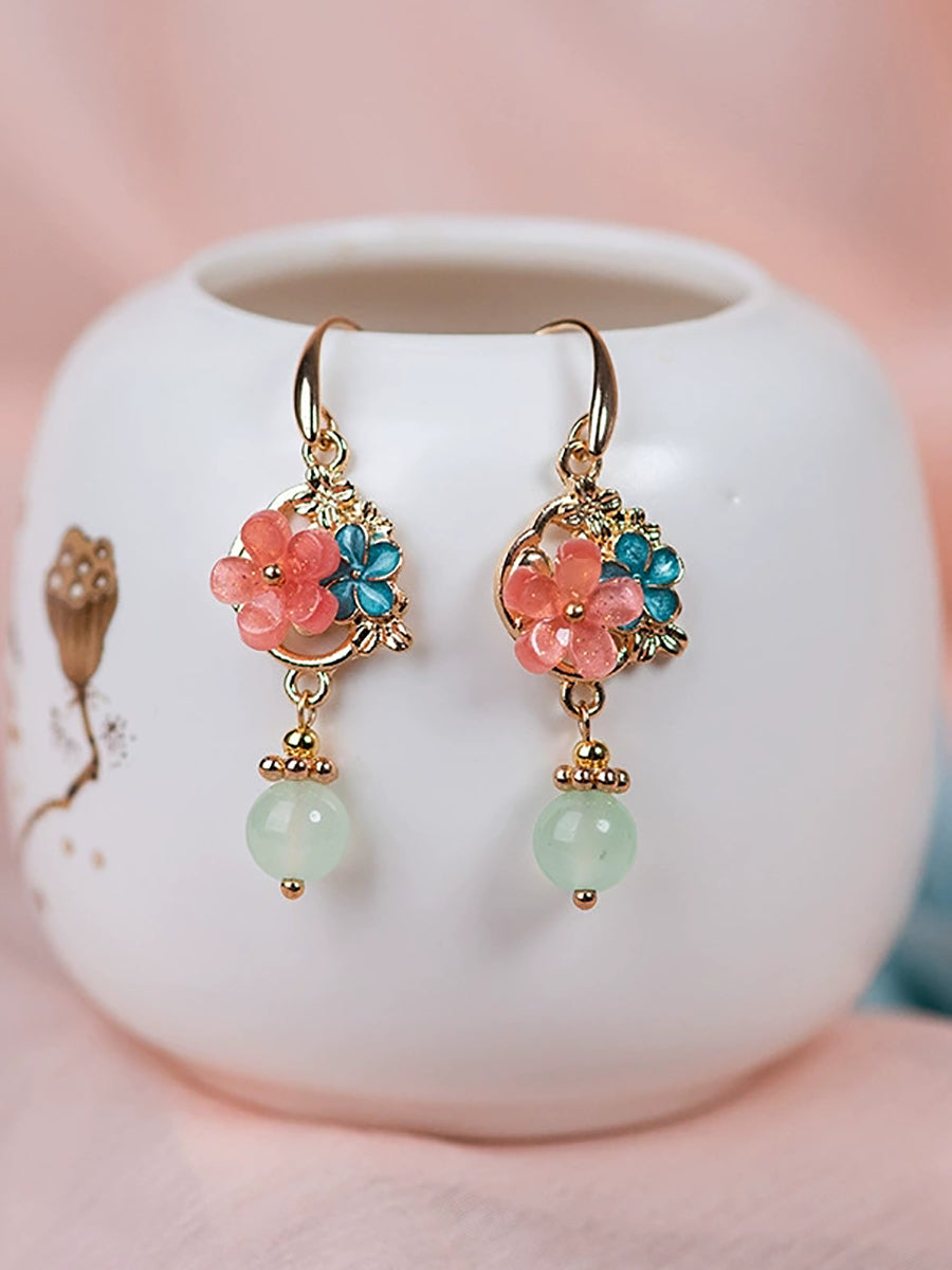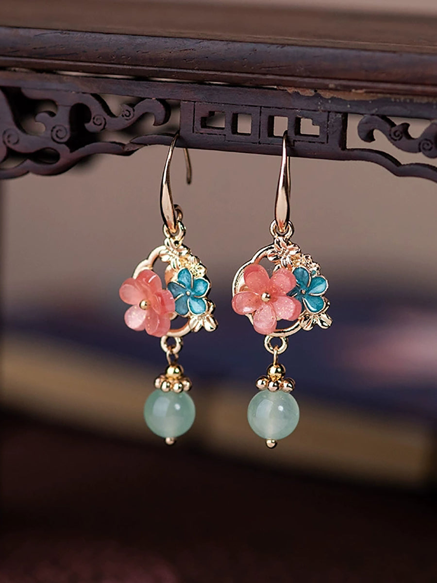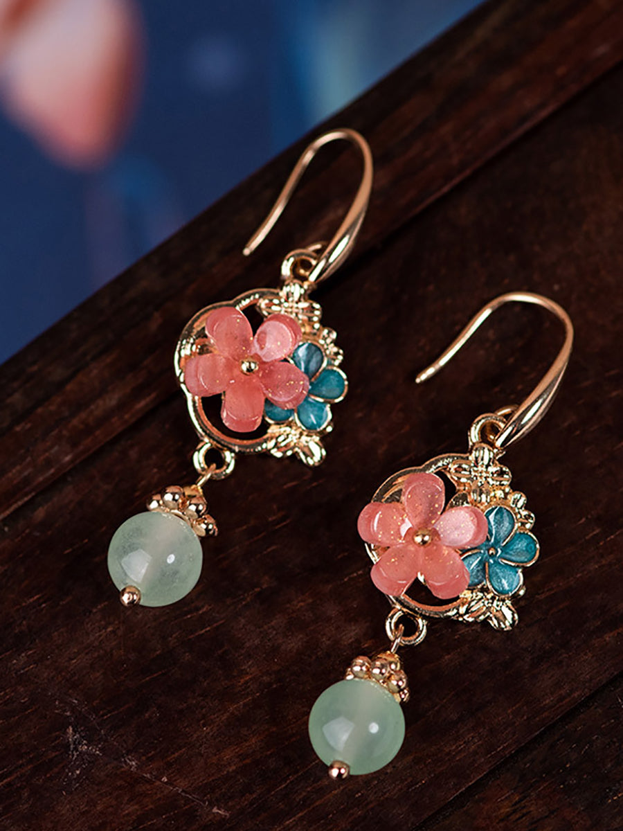 Women Vintage Jade Acetic Flower Earrings
