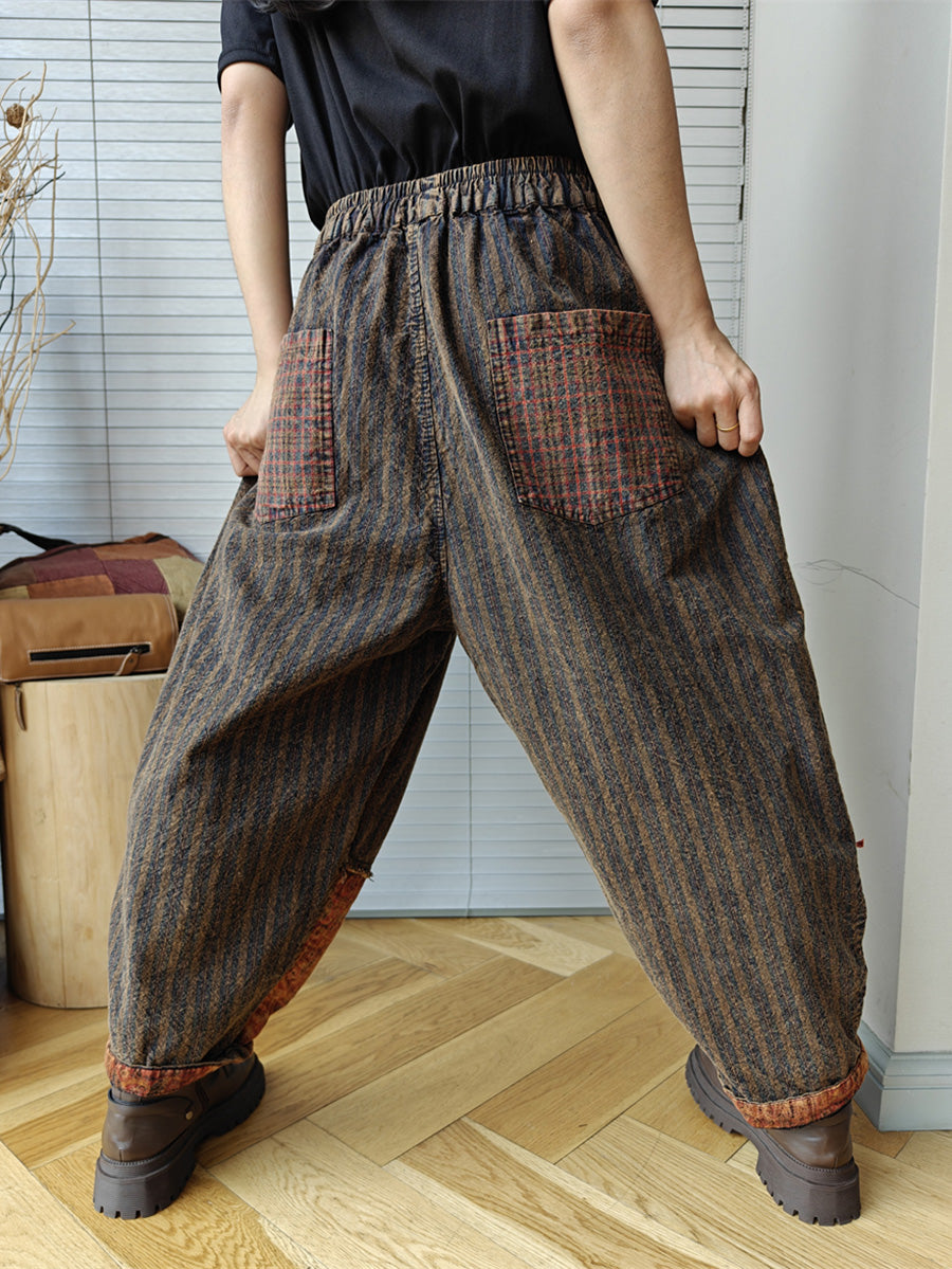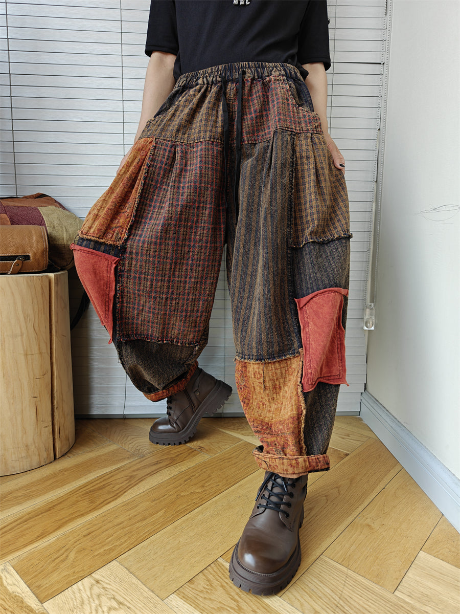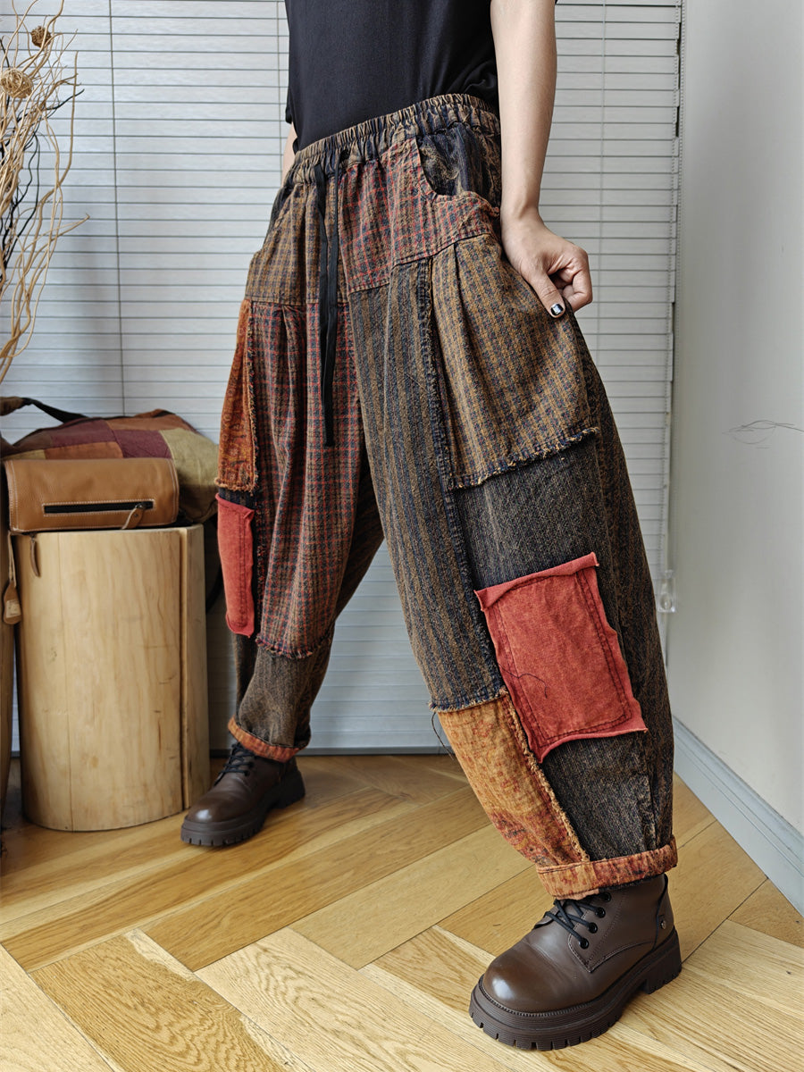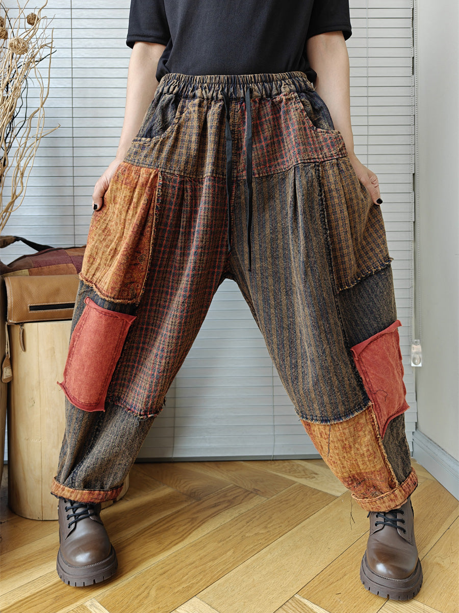 Plus Size Women Vintage Patchwork Spring 100%Cotton Harem Pants