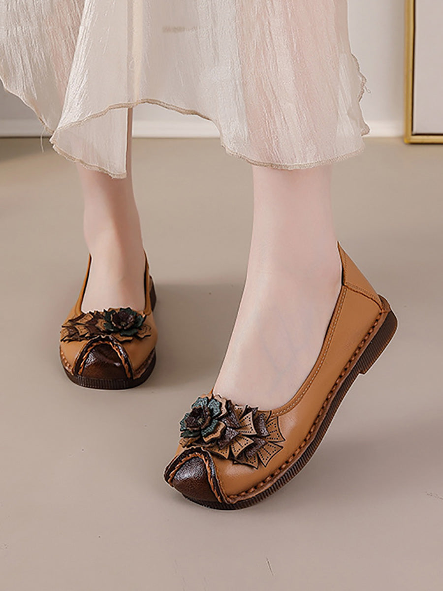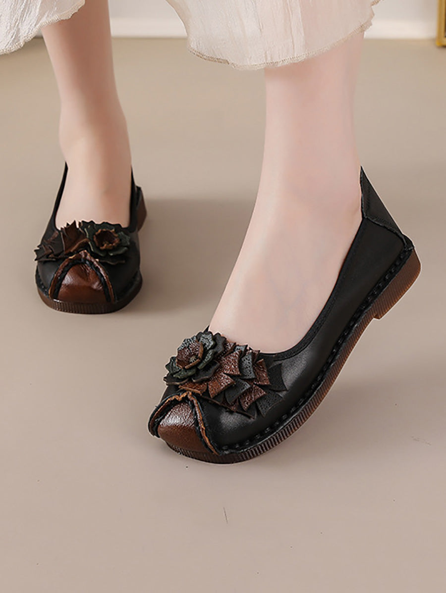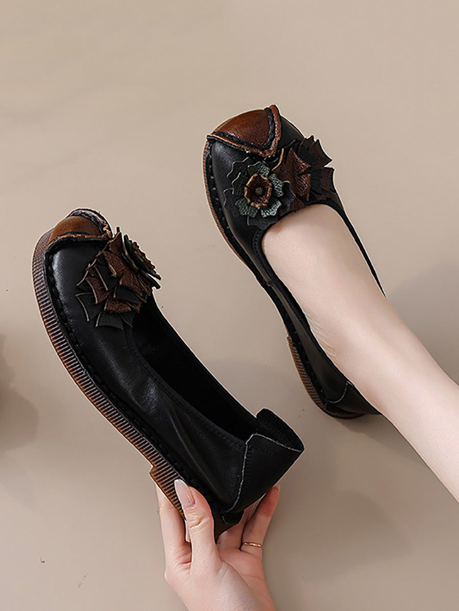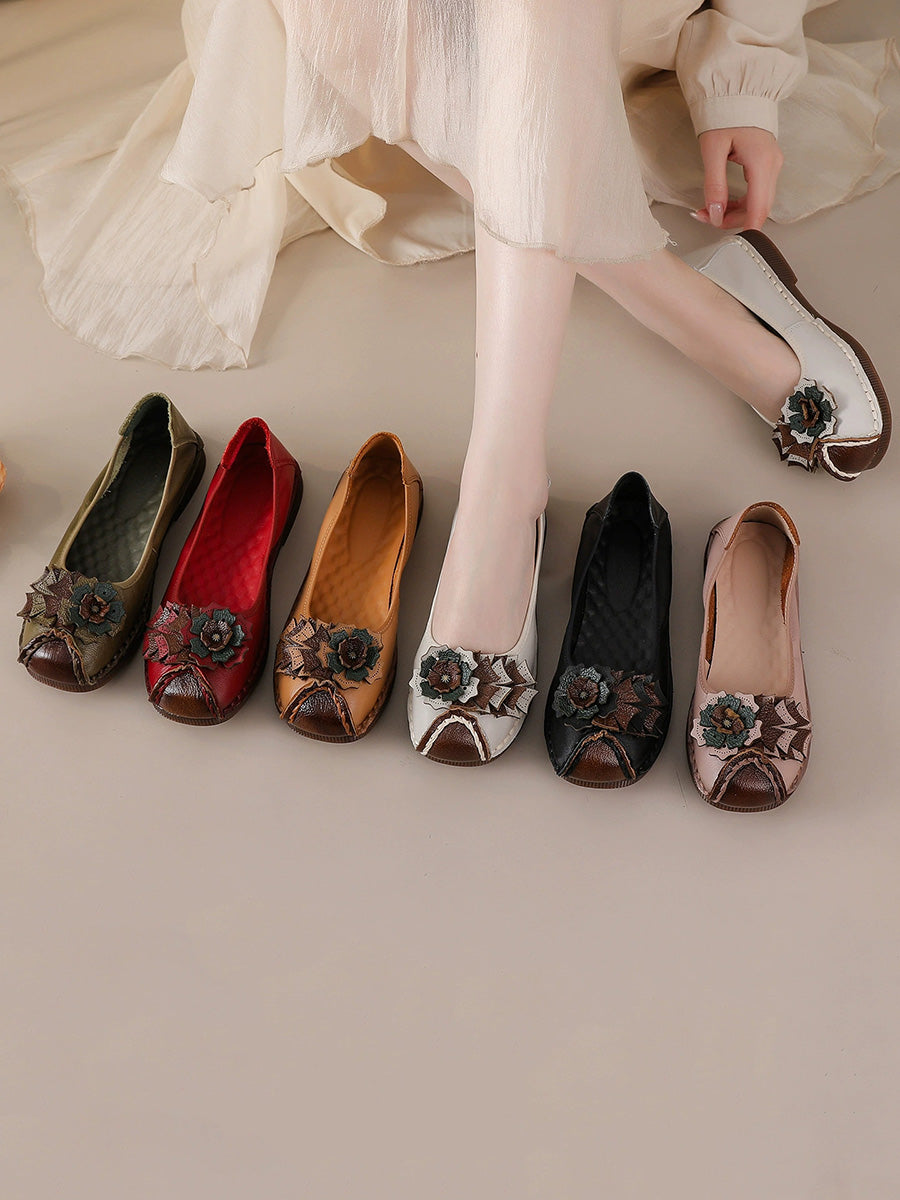Women Vintage Soft Leather Flower Spliced Shoes