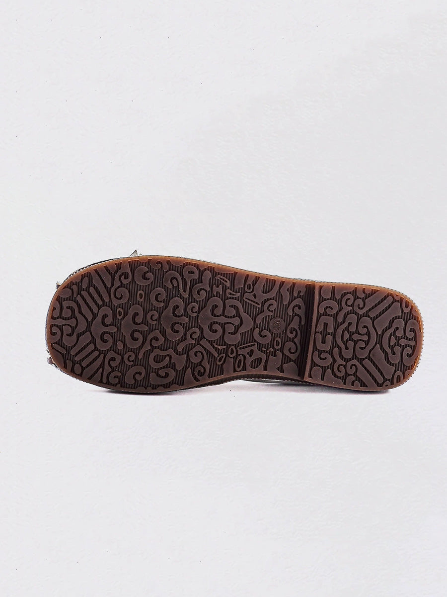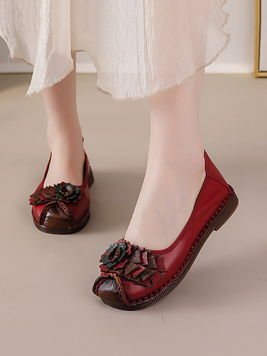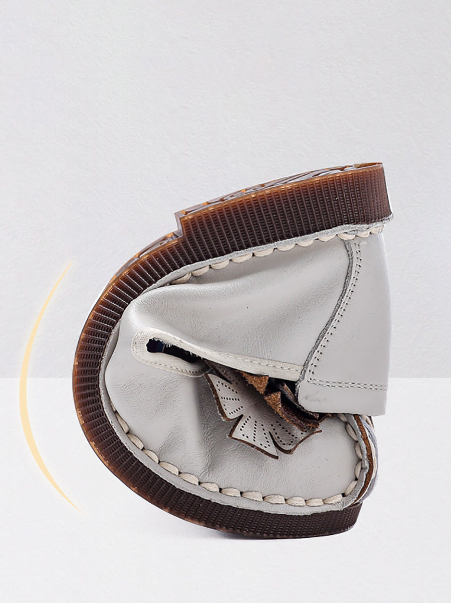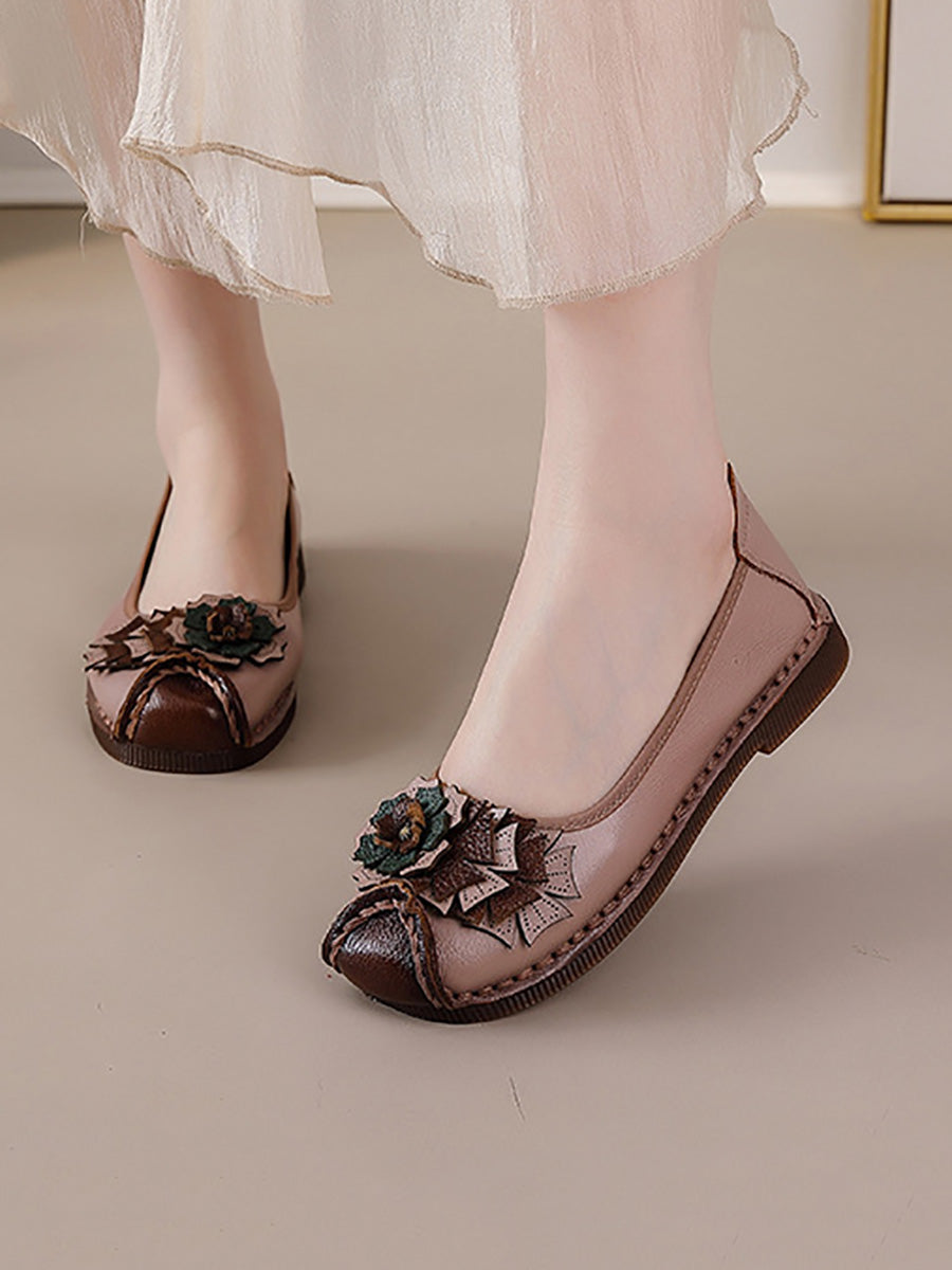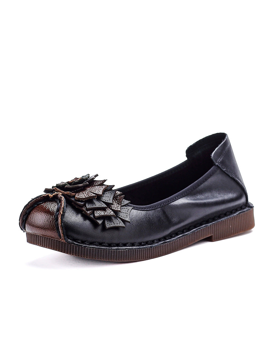 Women Vintage Soft Leather Flower Spliced Shoes