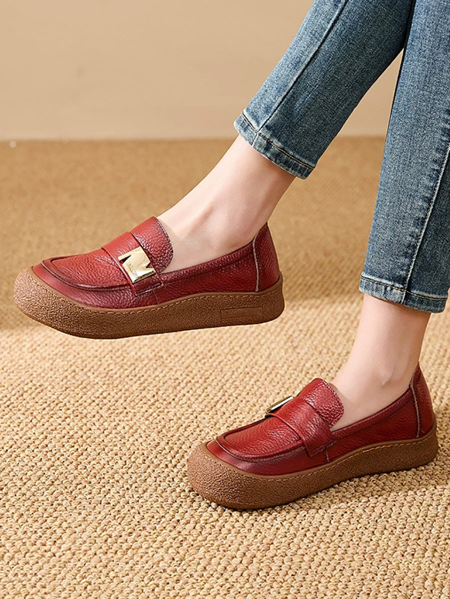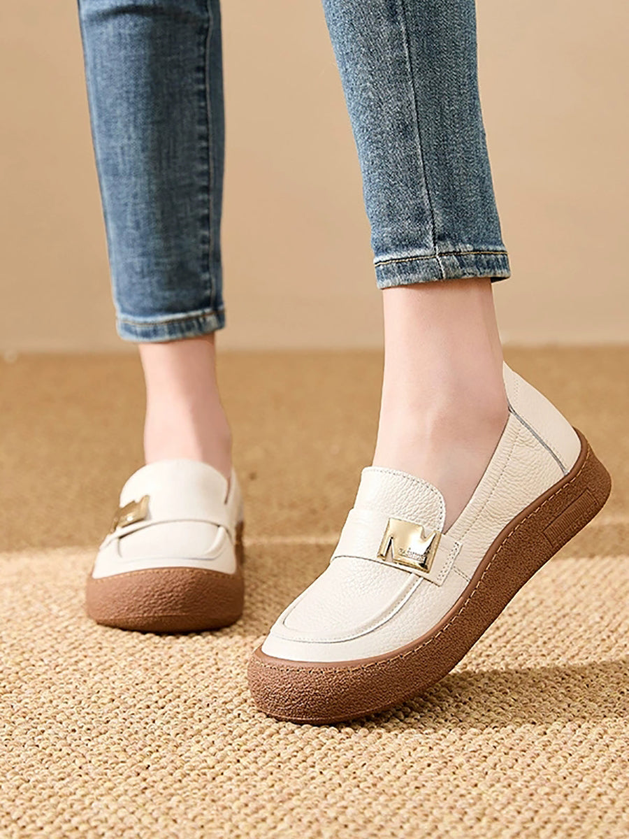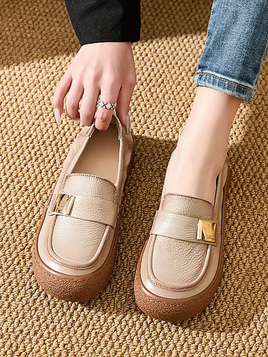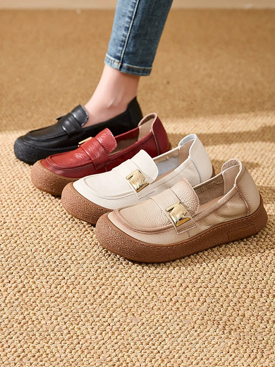 Women Vintage Spring Genuine Leather Flat Shoes