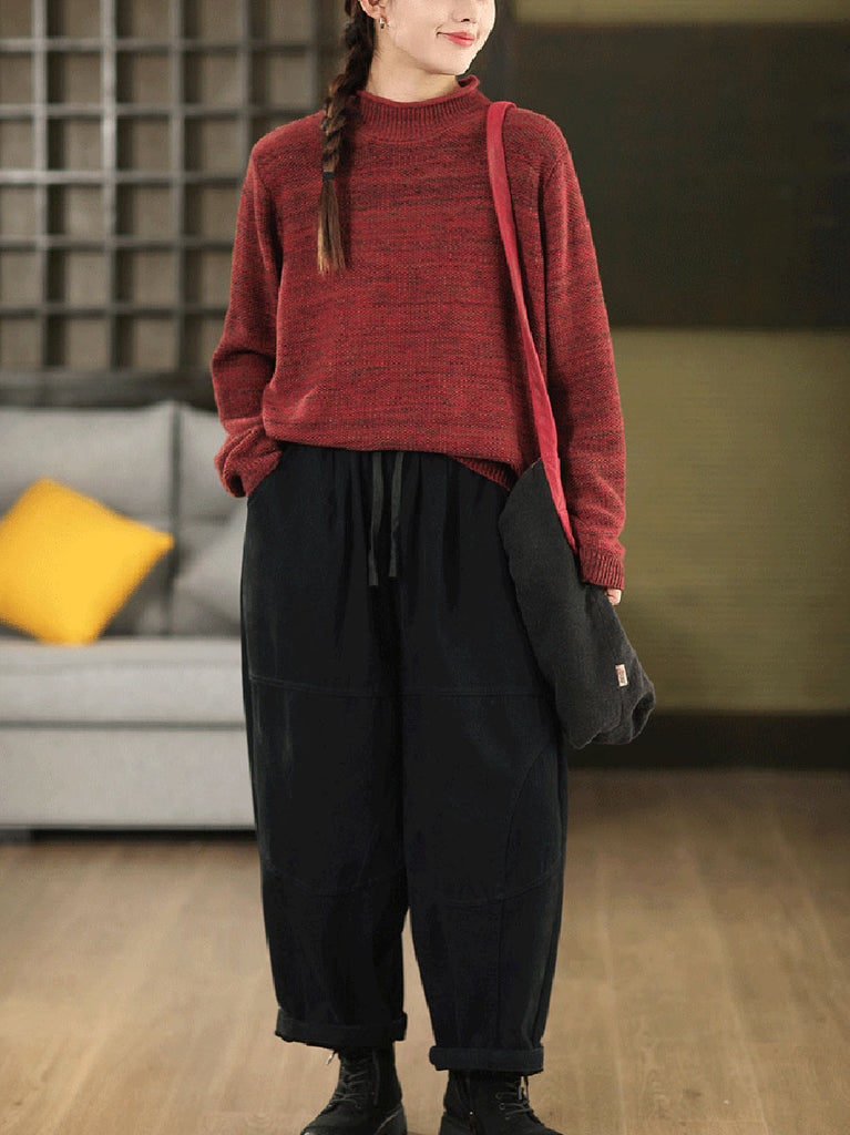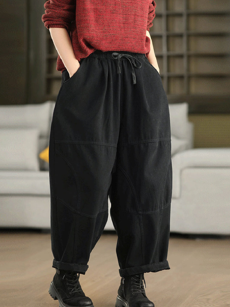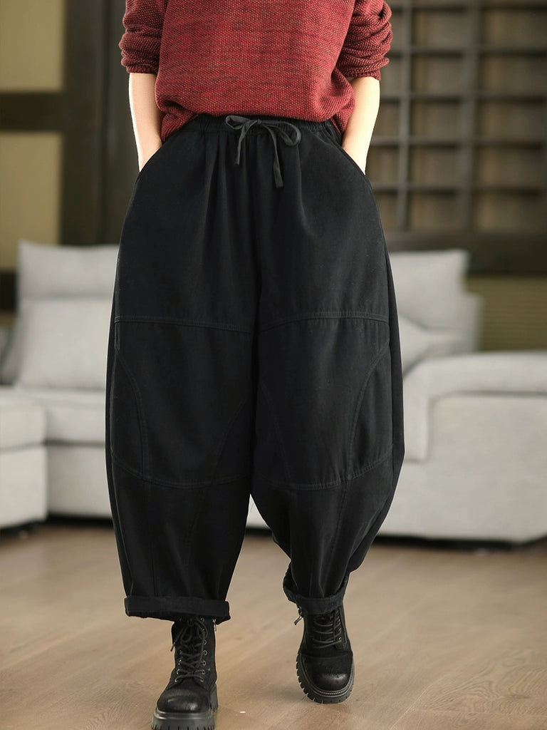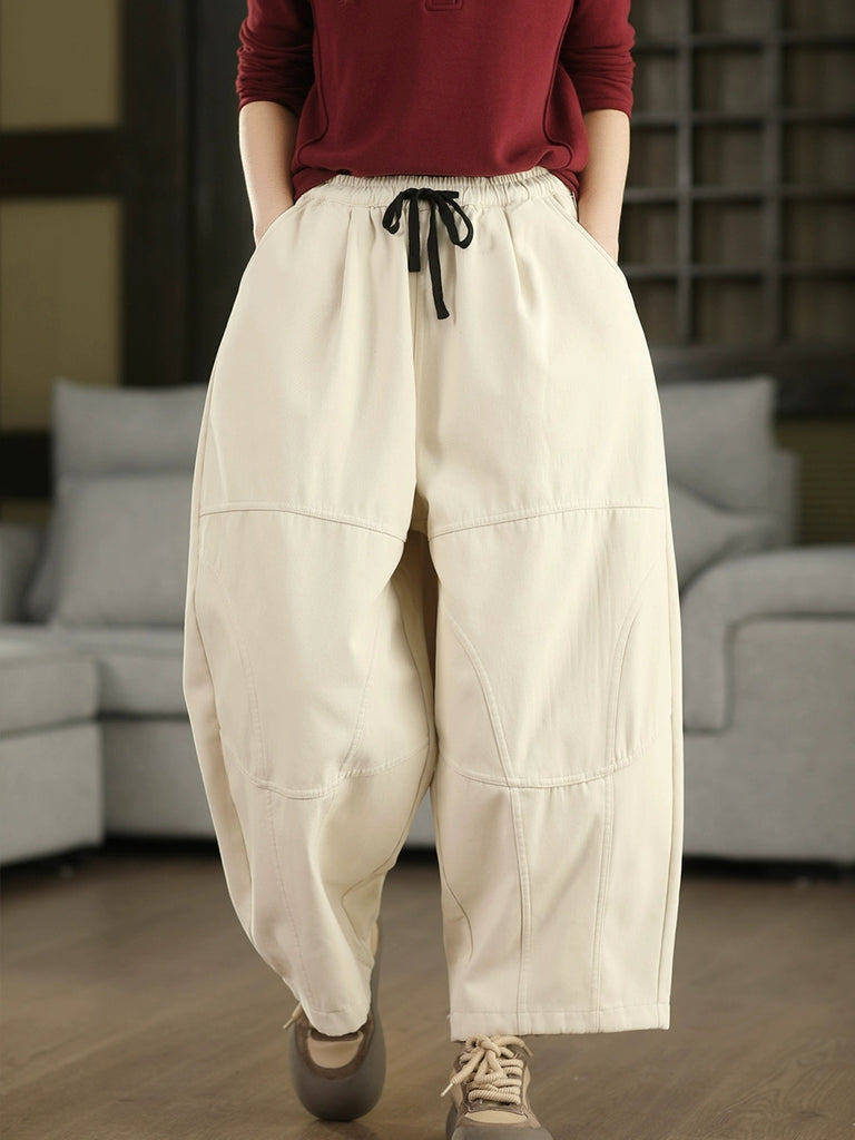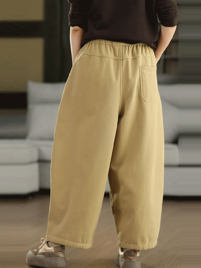 Women Vintage Winter 100%Cotton Fleece-lined Harem Pants