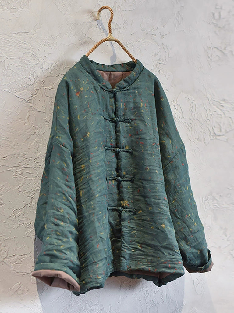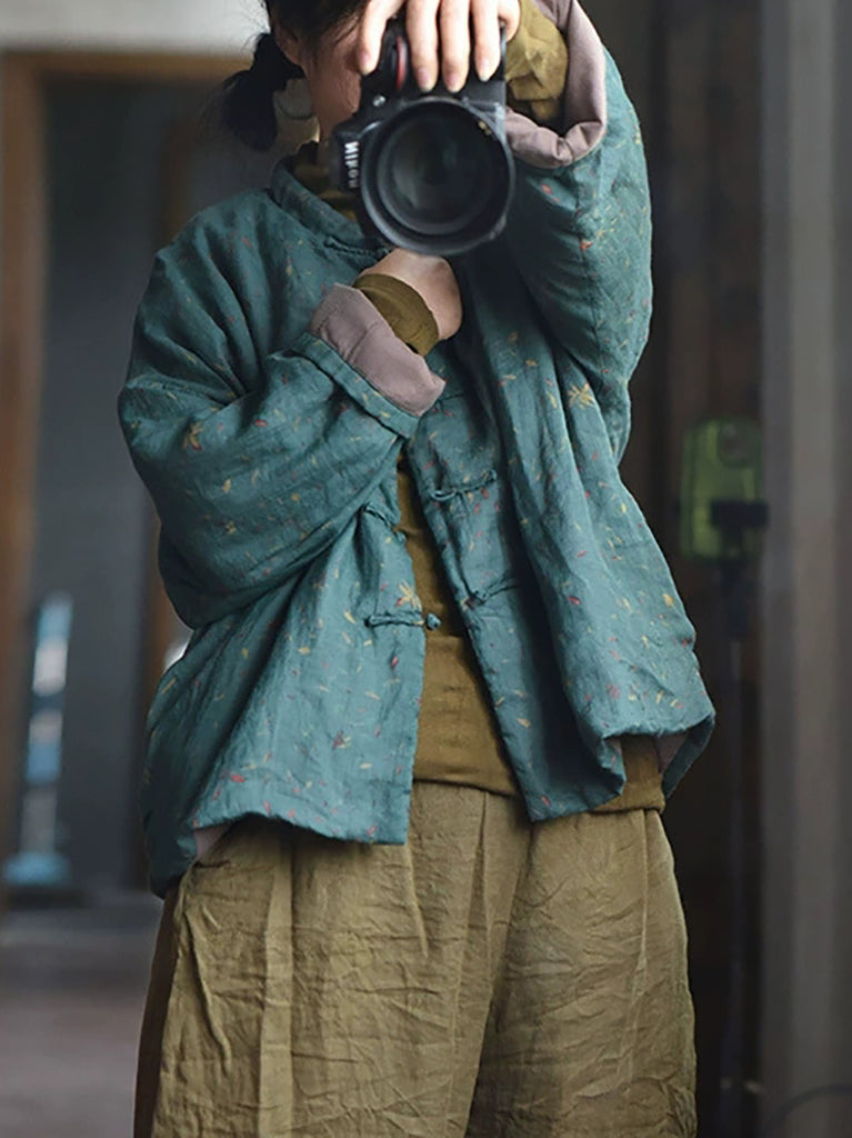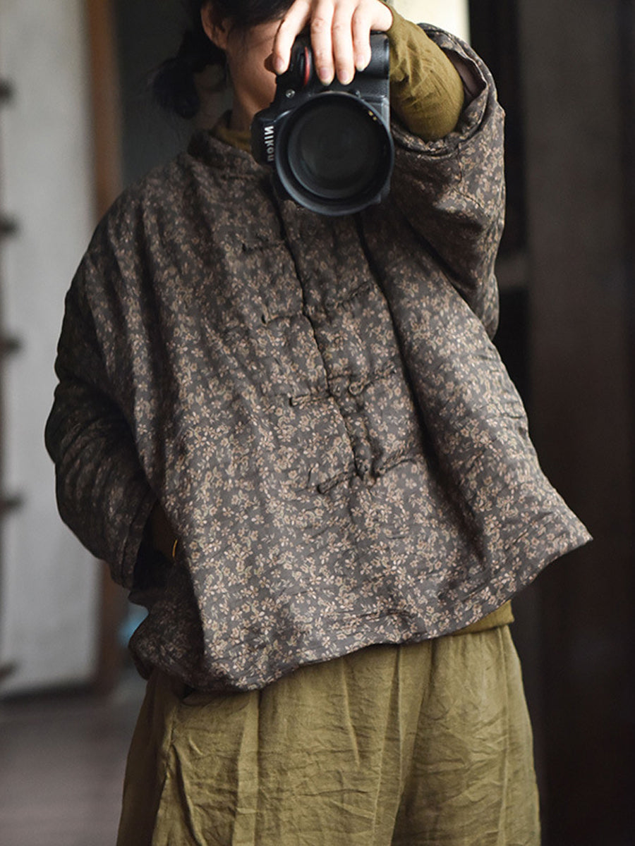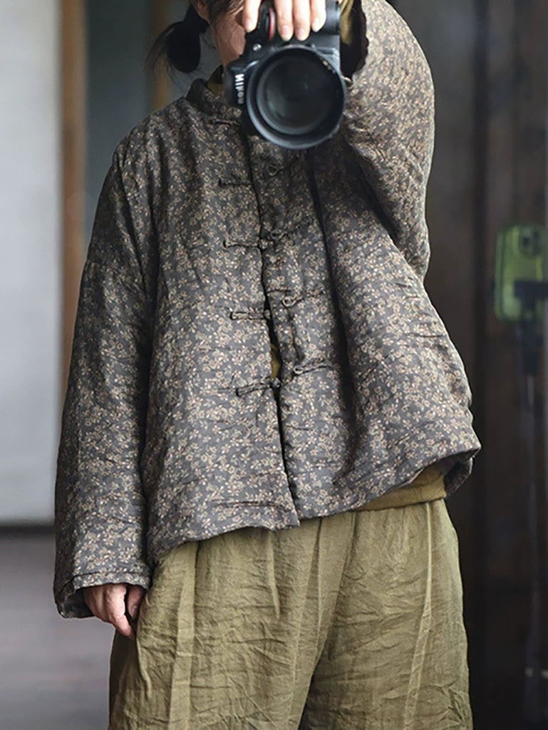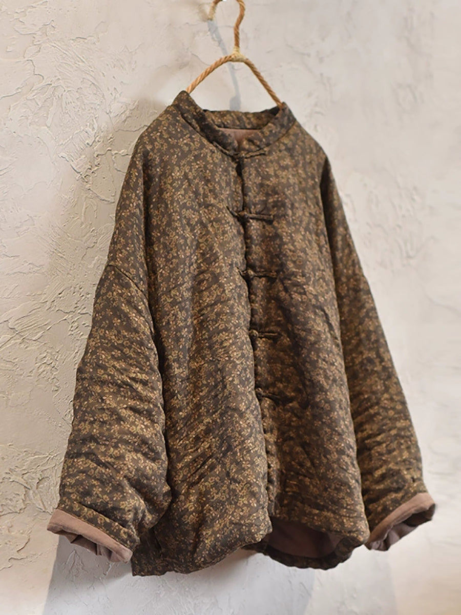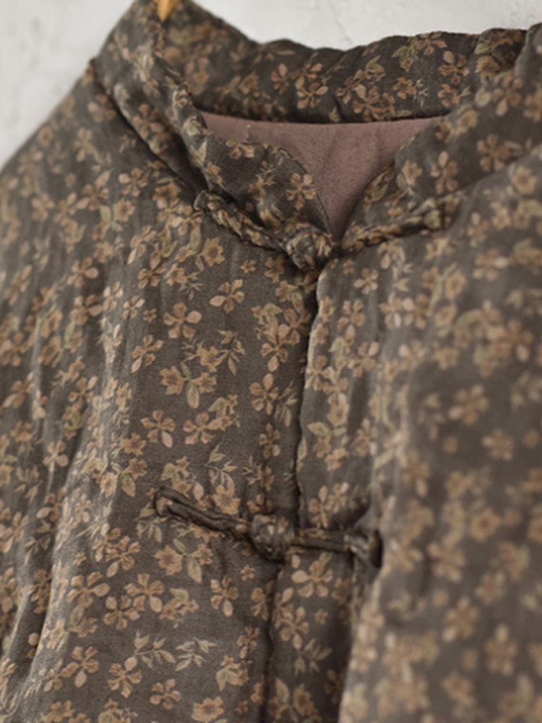 Women Vintage Winter Floral Stand Collar Cotton Coat