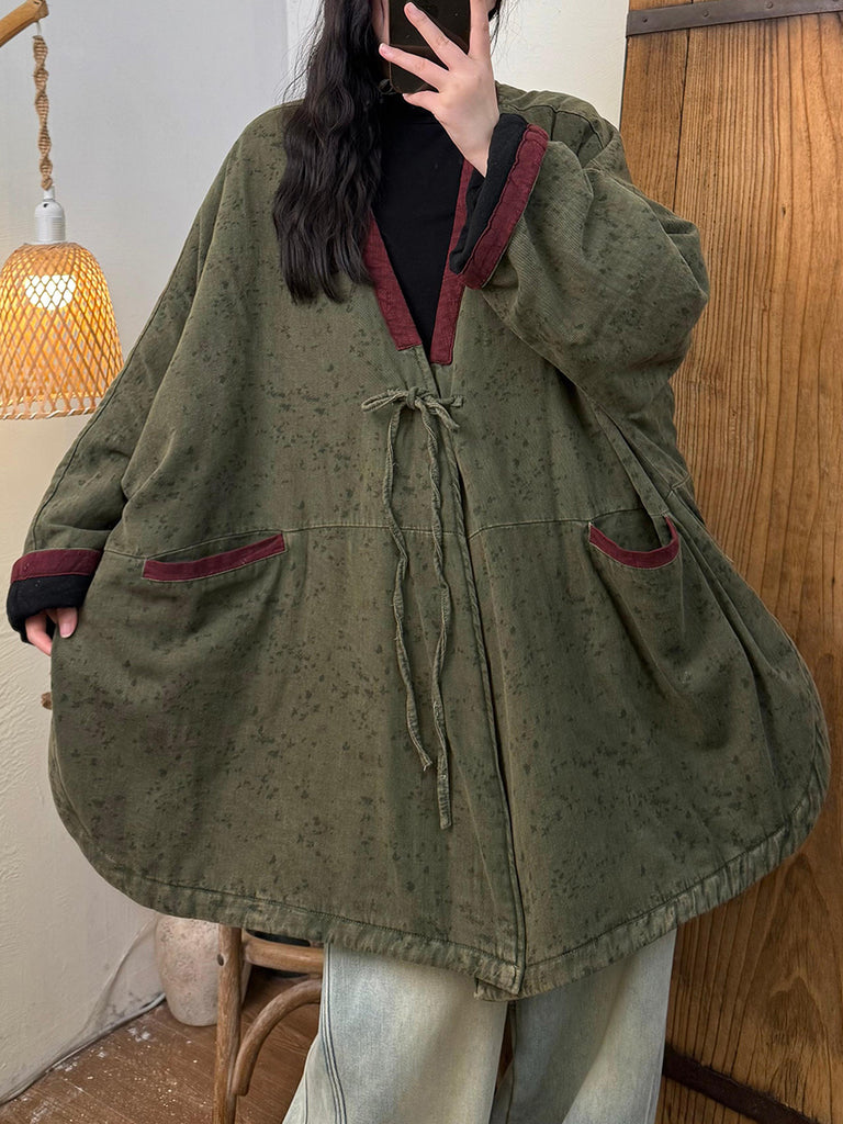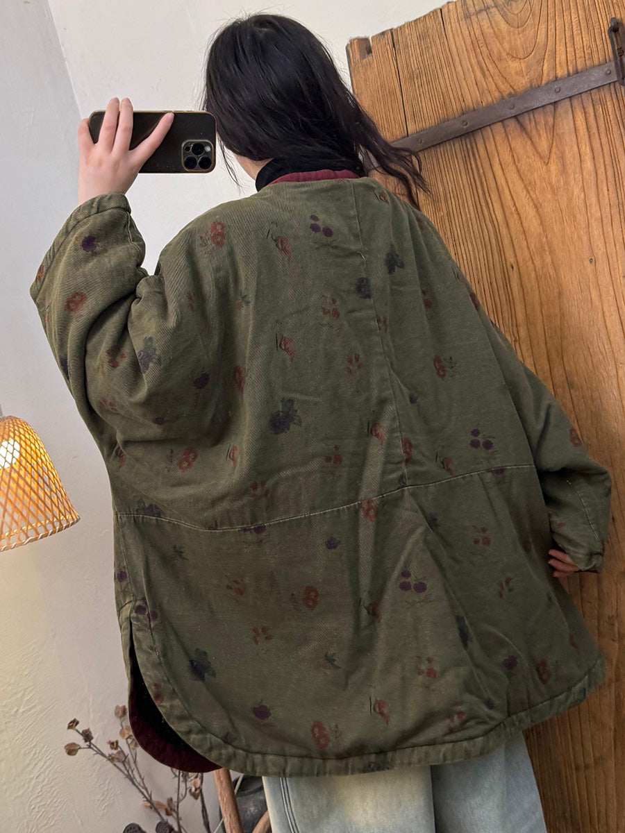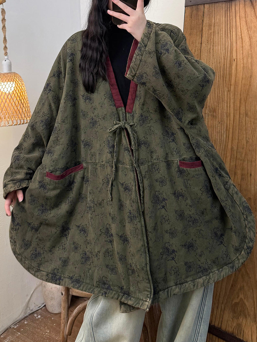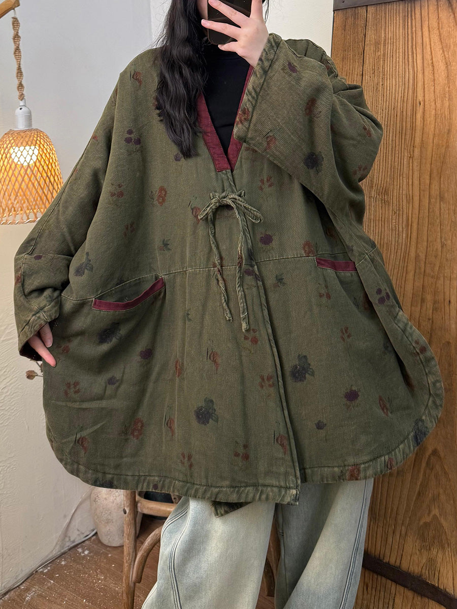Women Vintage Winter Floral V-Neck Coat