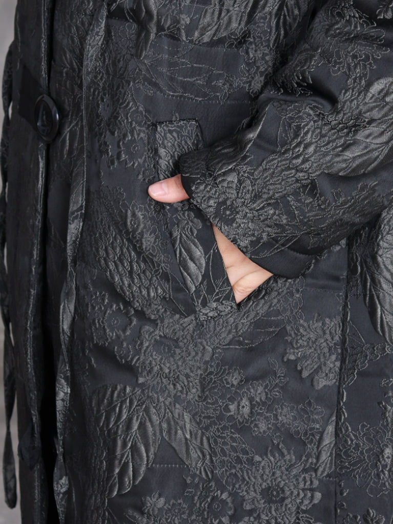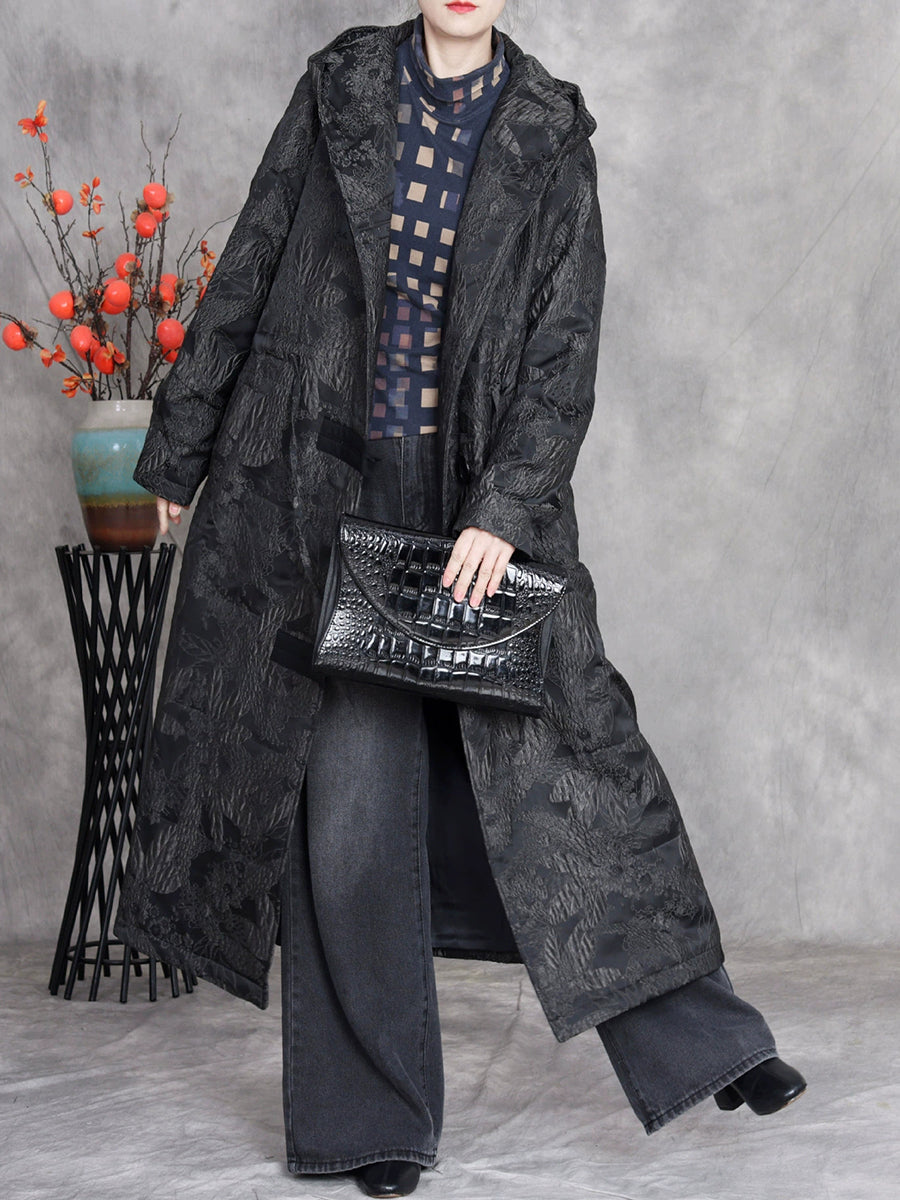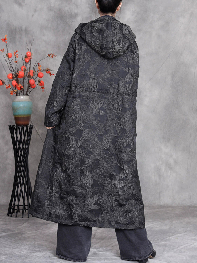 Women Vintage Winter Flower Jacquard Hooded Padded Coat