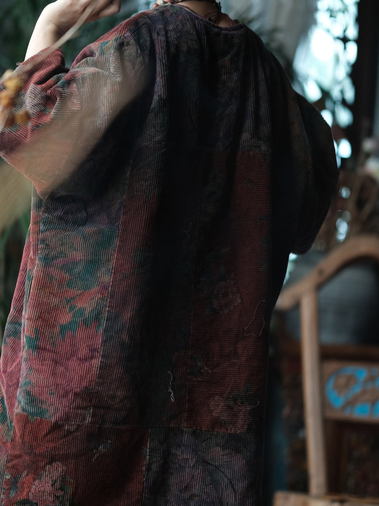 Women Vintage Winter Flower V-Neck Cotton Robe Coat