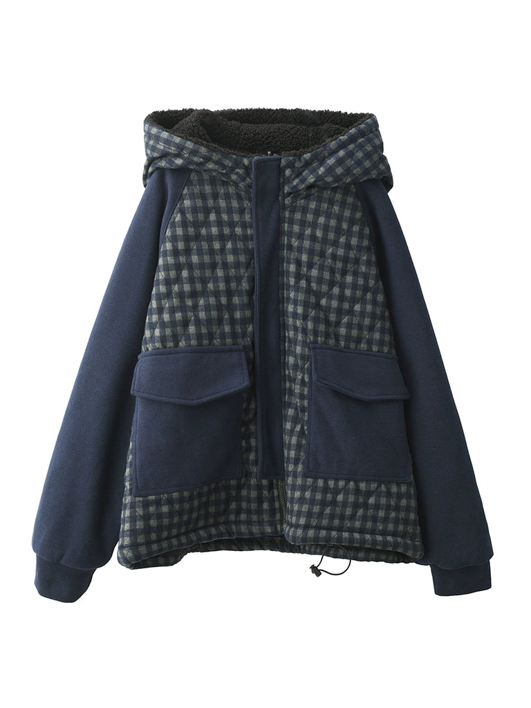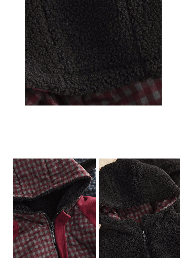 Women Winter Plaid Dual-side Wearing Fleece-lined Hooded Coat