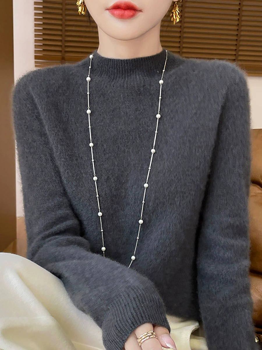 Women Winter Artsy Pure Color Wool Half-Turtleneck Sweater