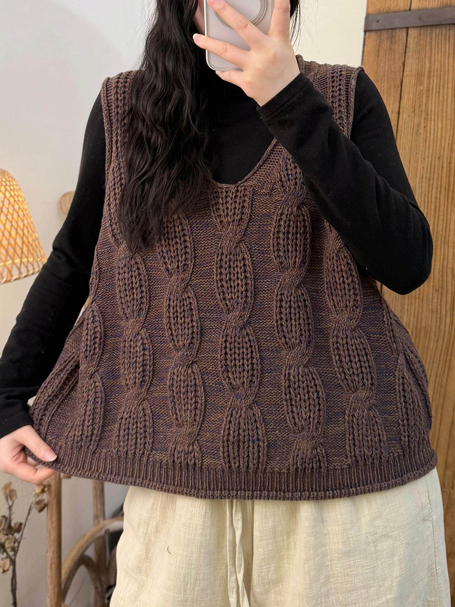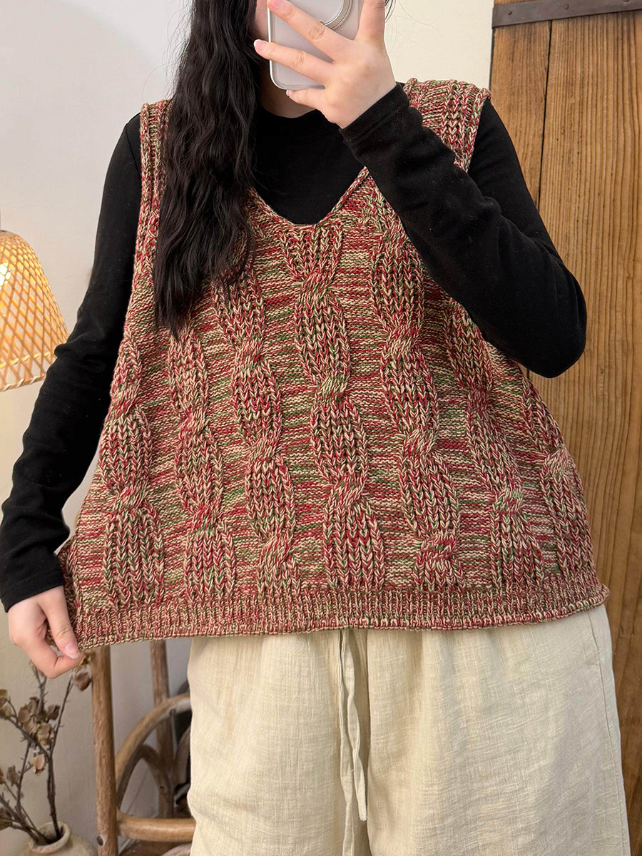 Crafted from premium cotton, this artsy v-neck cable-knit vest delivers sophisticated layering for transitional seasons. The textured knit construction provides visual interest and dimensional appeal, while the classic v-neckline flatters various silhouettes. Ideal for spring and autumn wardrobes, this versatile piece pairs effortlessly with basics or statement pieces for curated, polished looks.