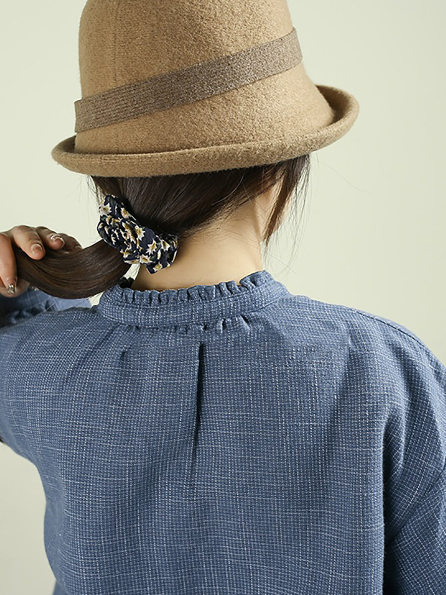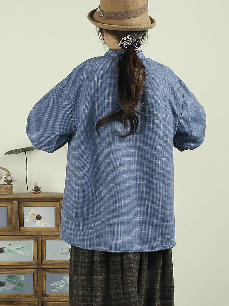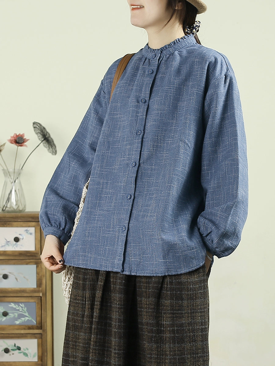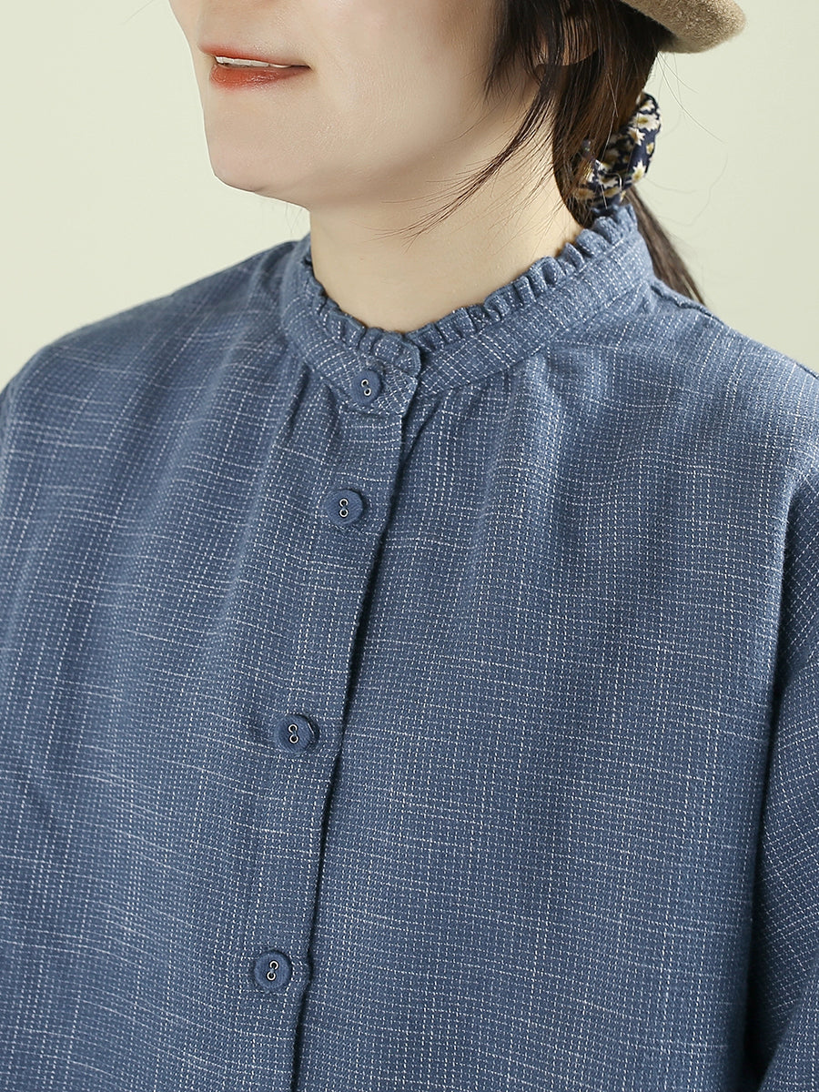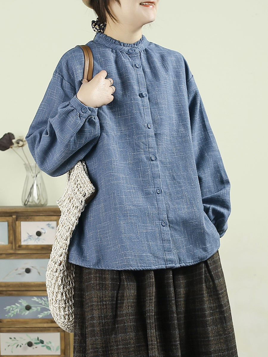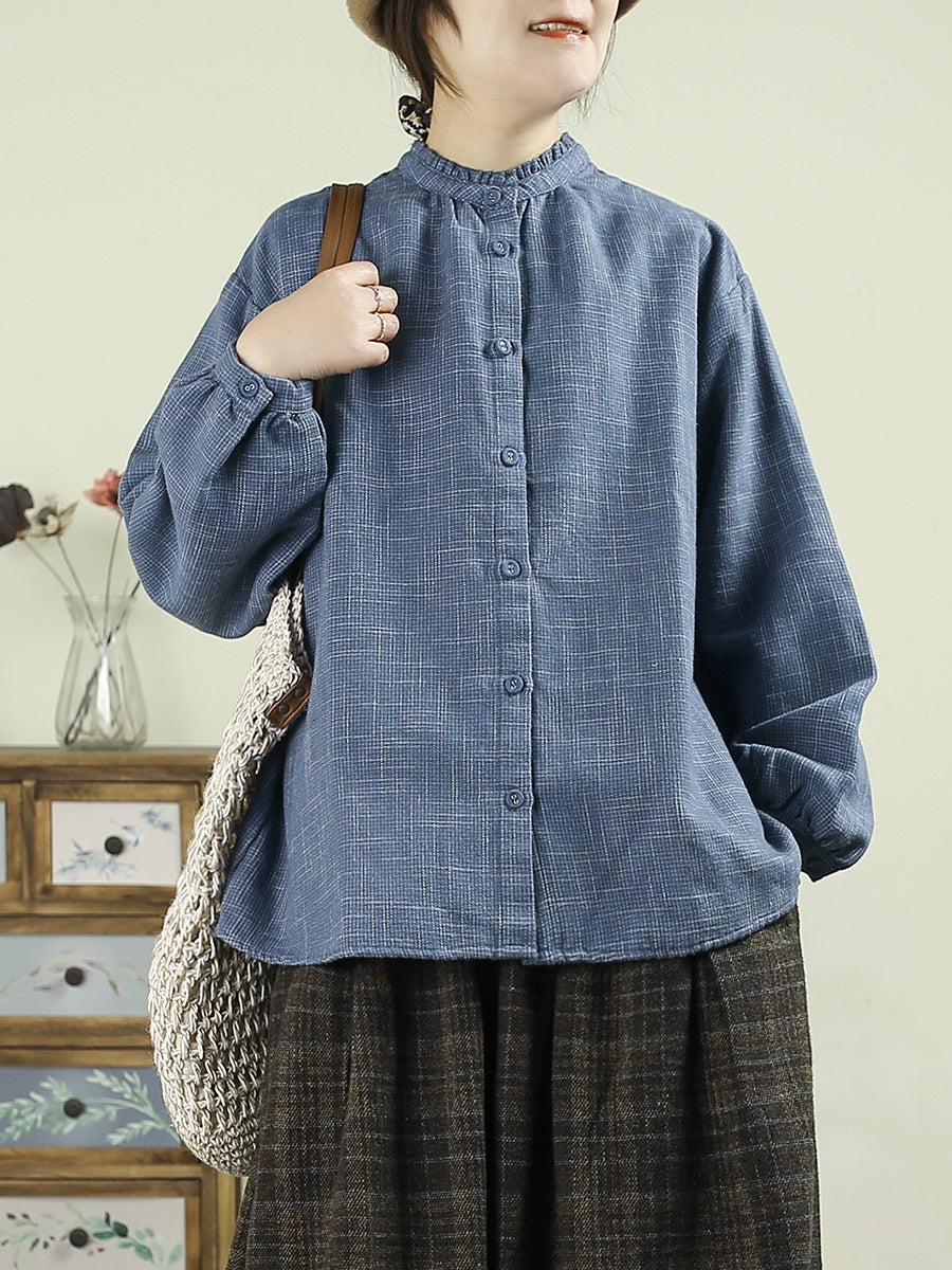 Women Winter Casual Plaid Stand Collar Blouse