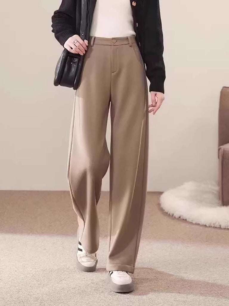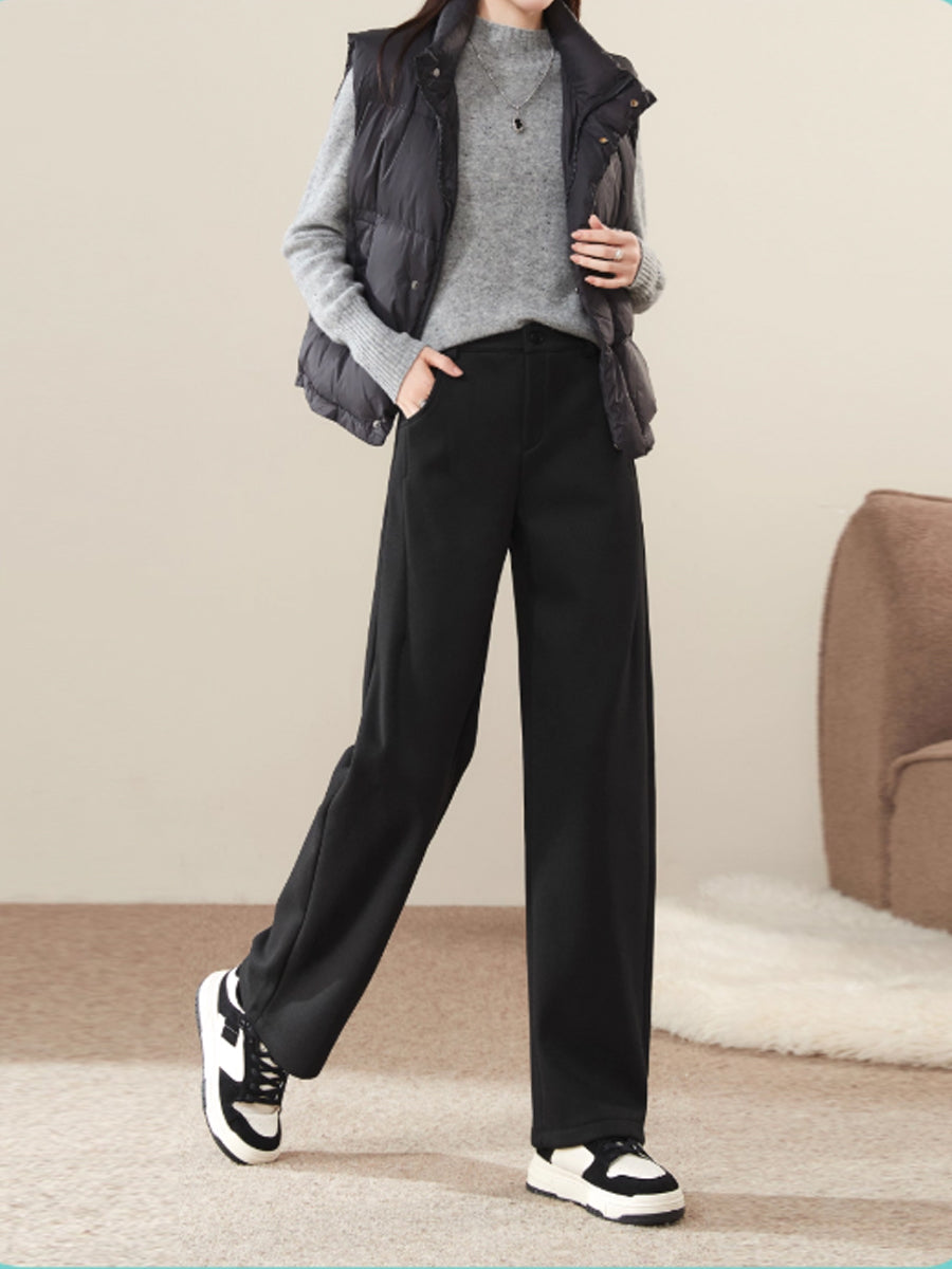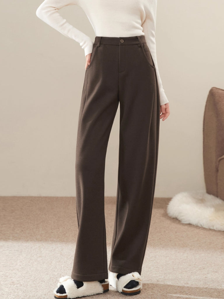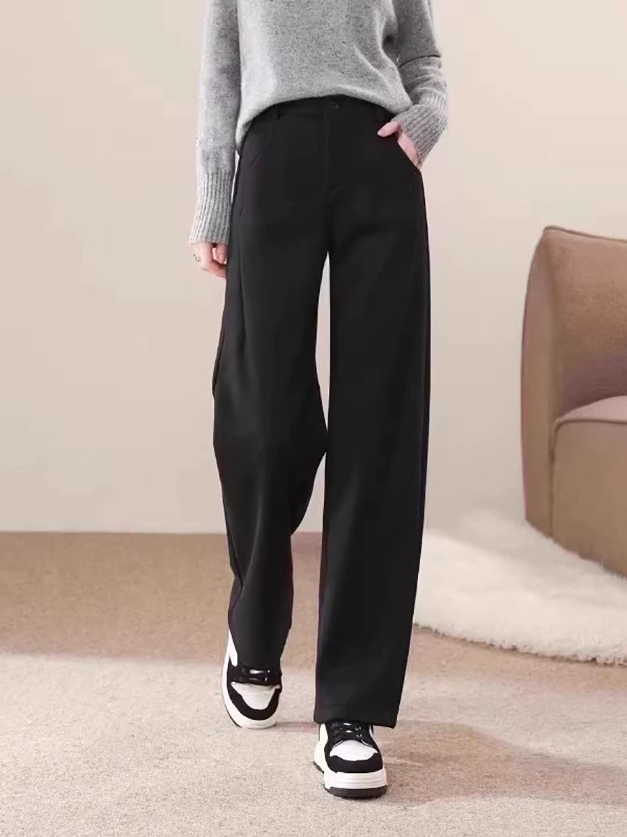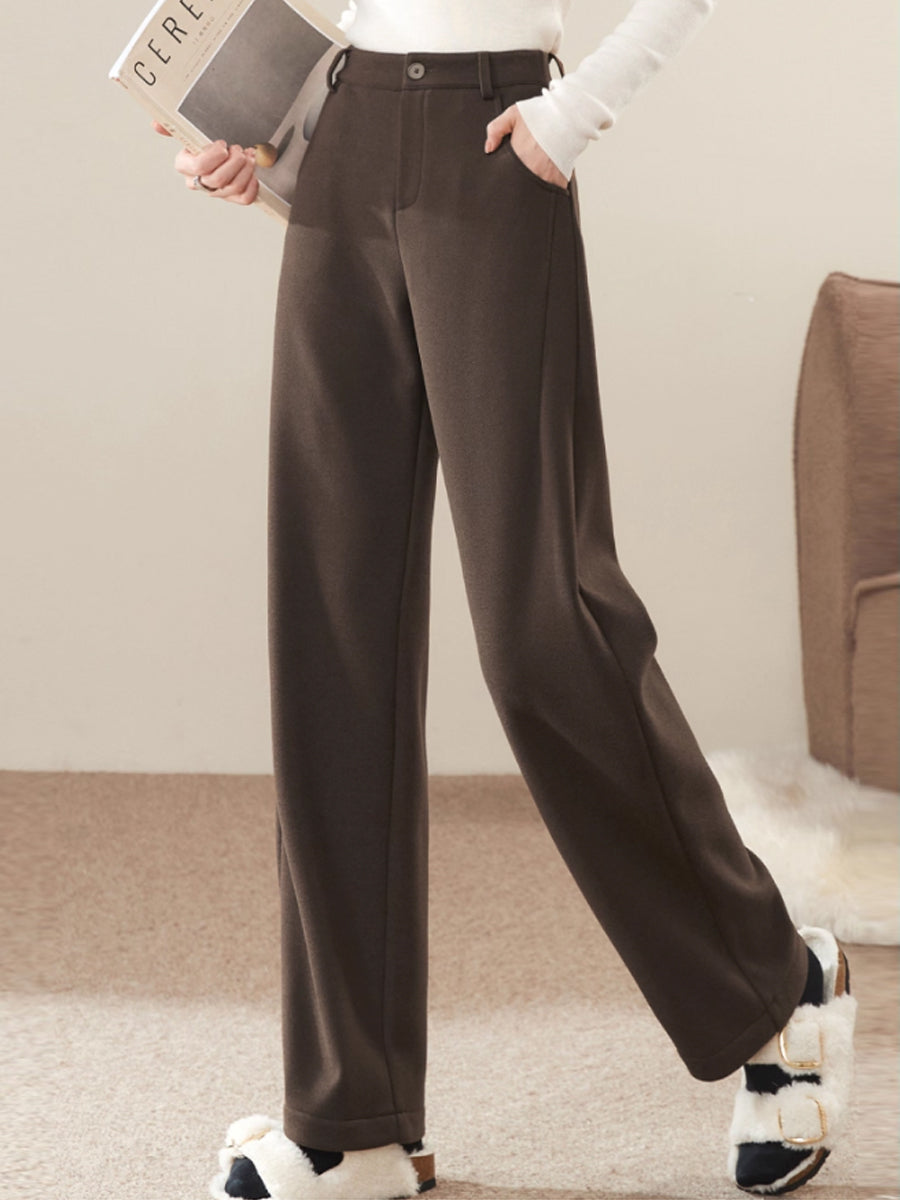 Women Winter Casual Pure Color Fleece-lined Straight Pants