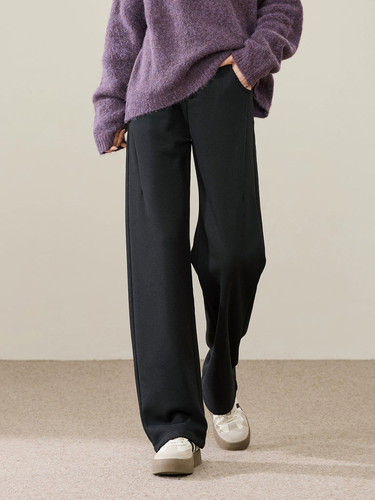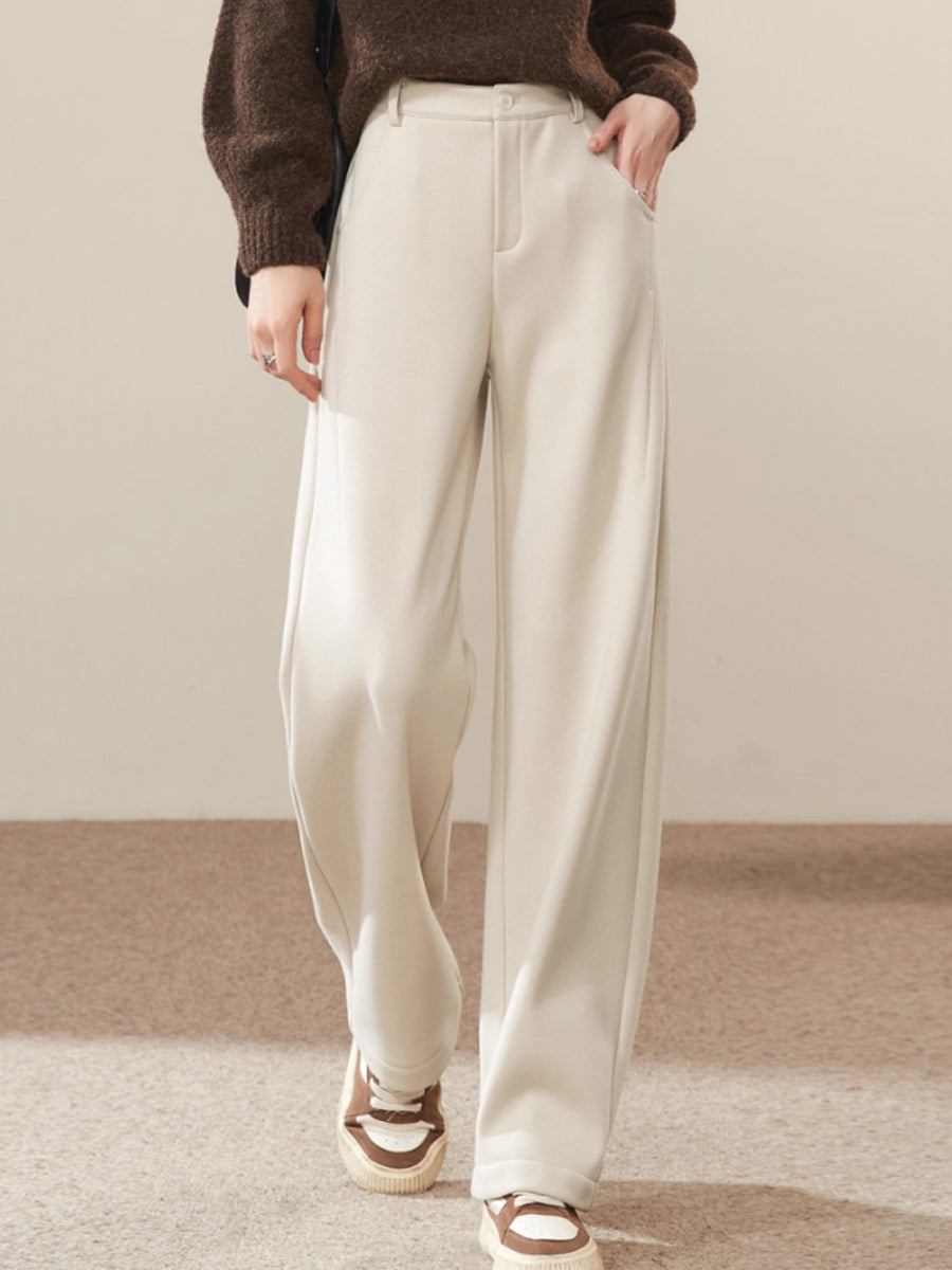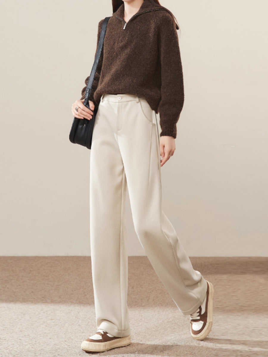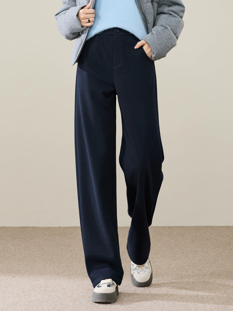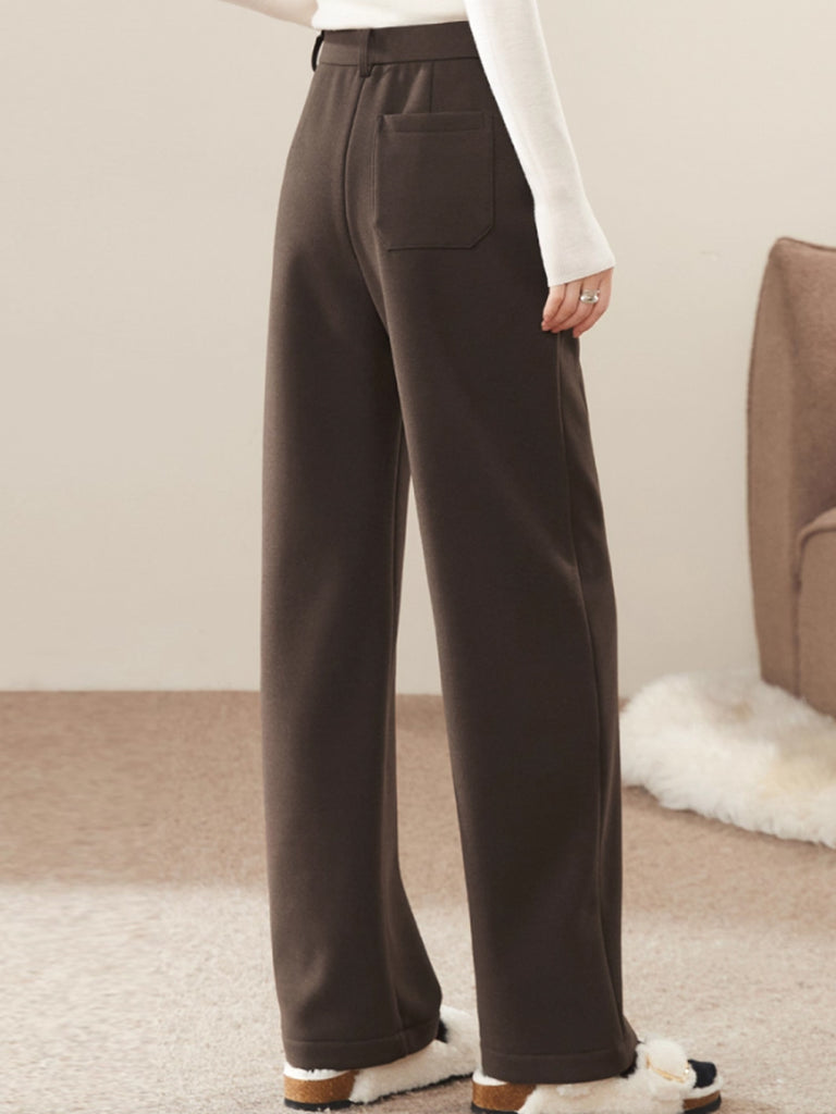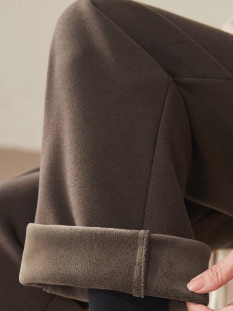Women Winter Casual Pure Color Fleece-lined Straight Pants