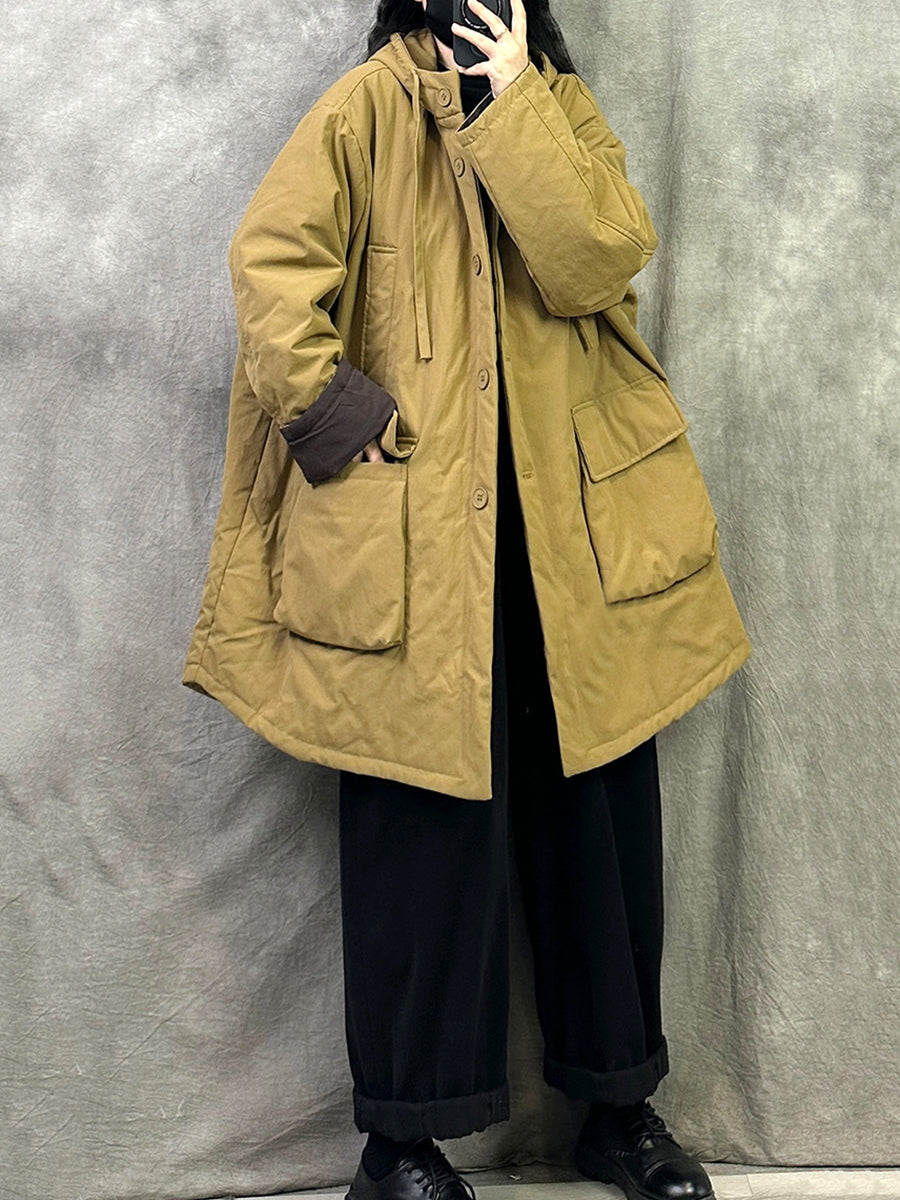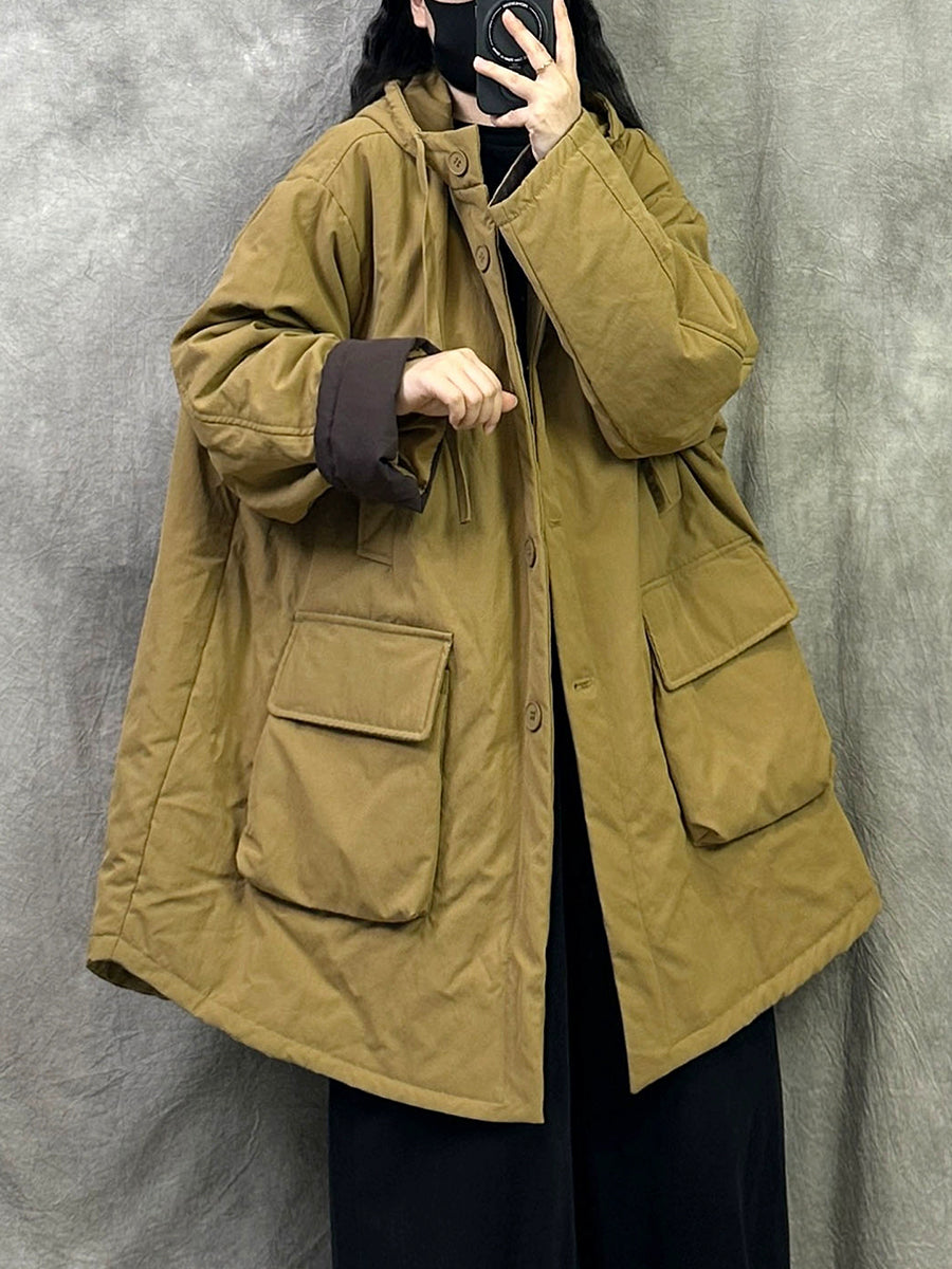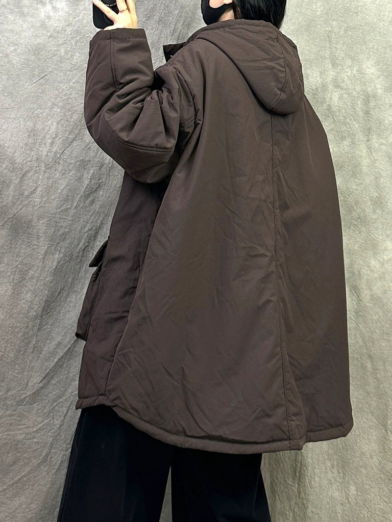 Women Winter Casual Pure Color Hooded Padded Coat