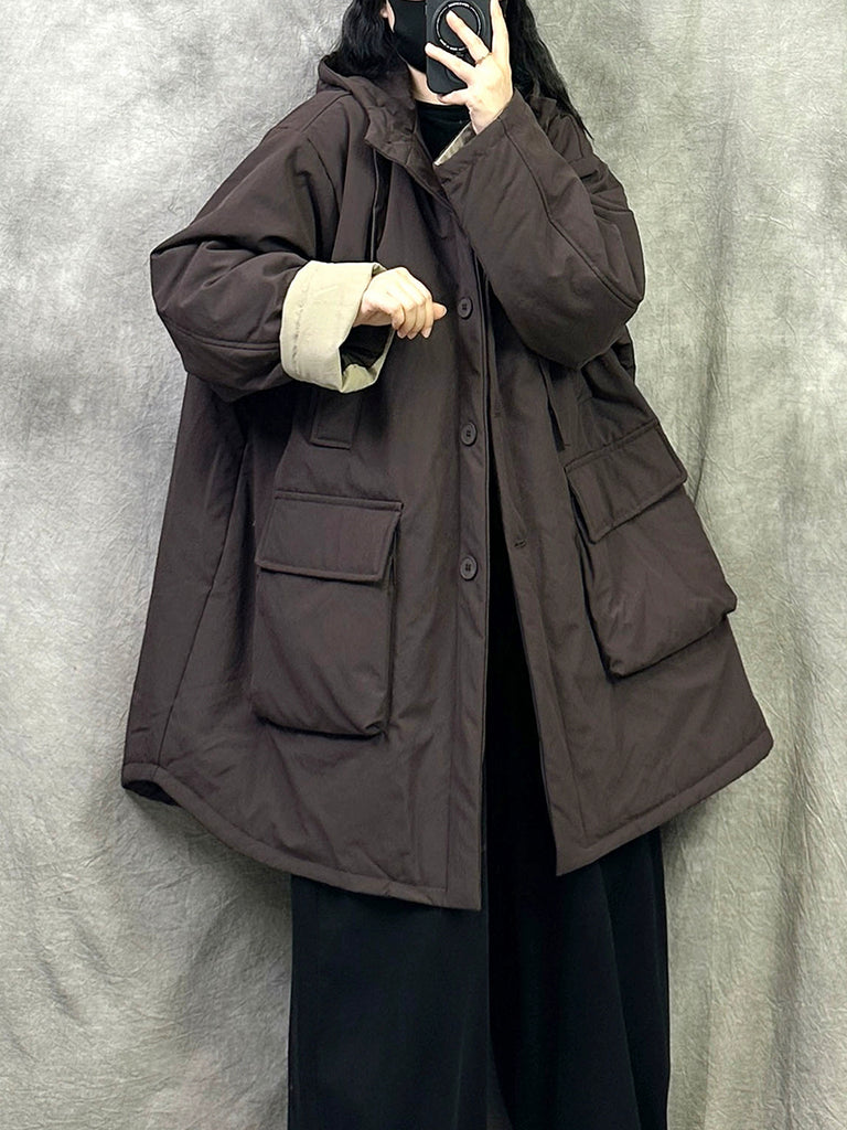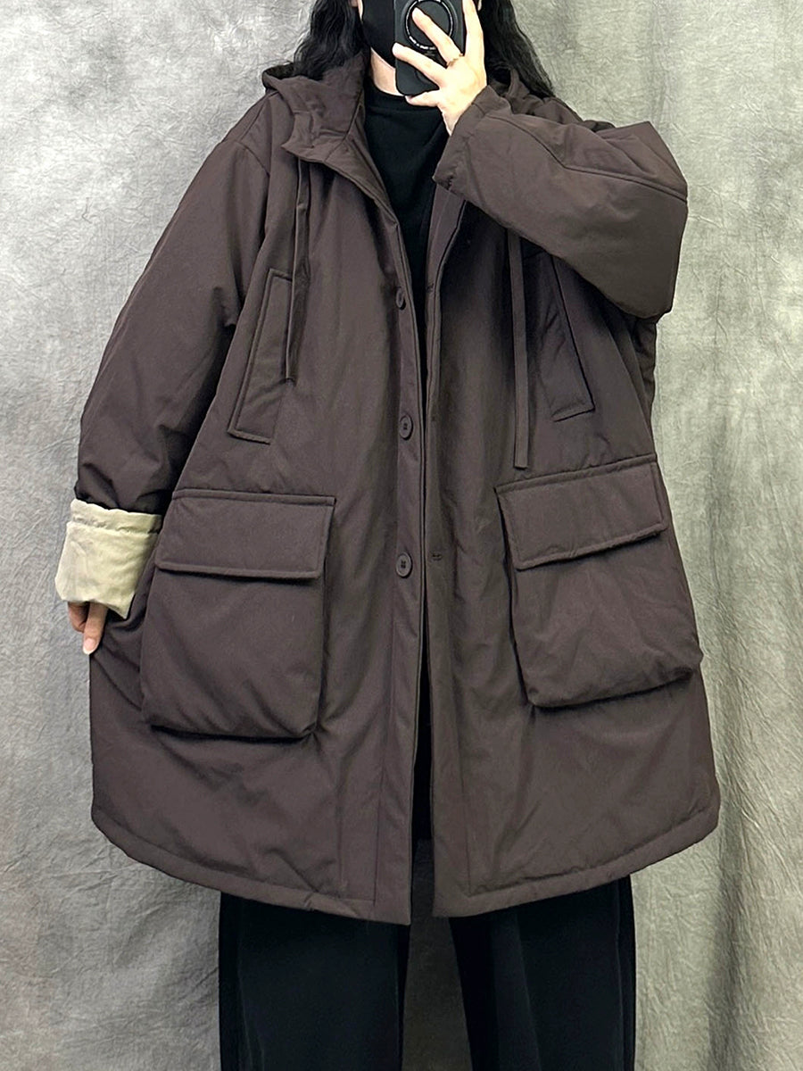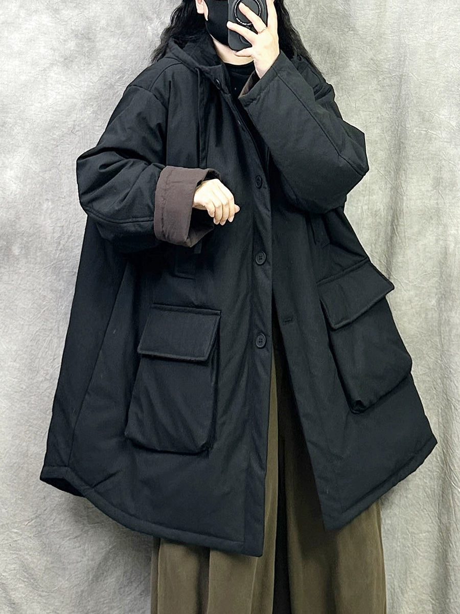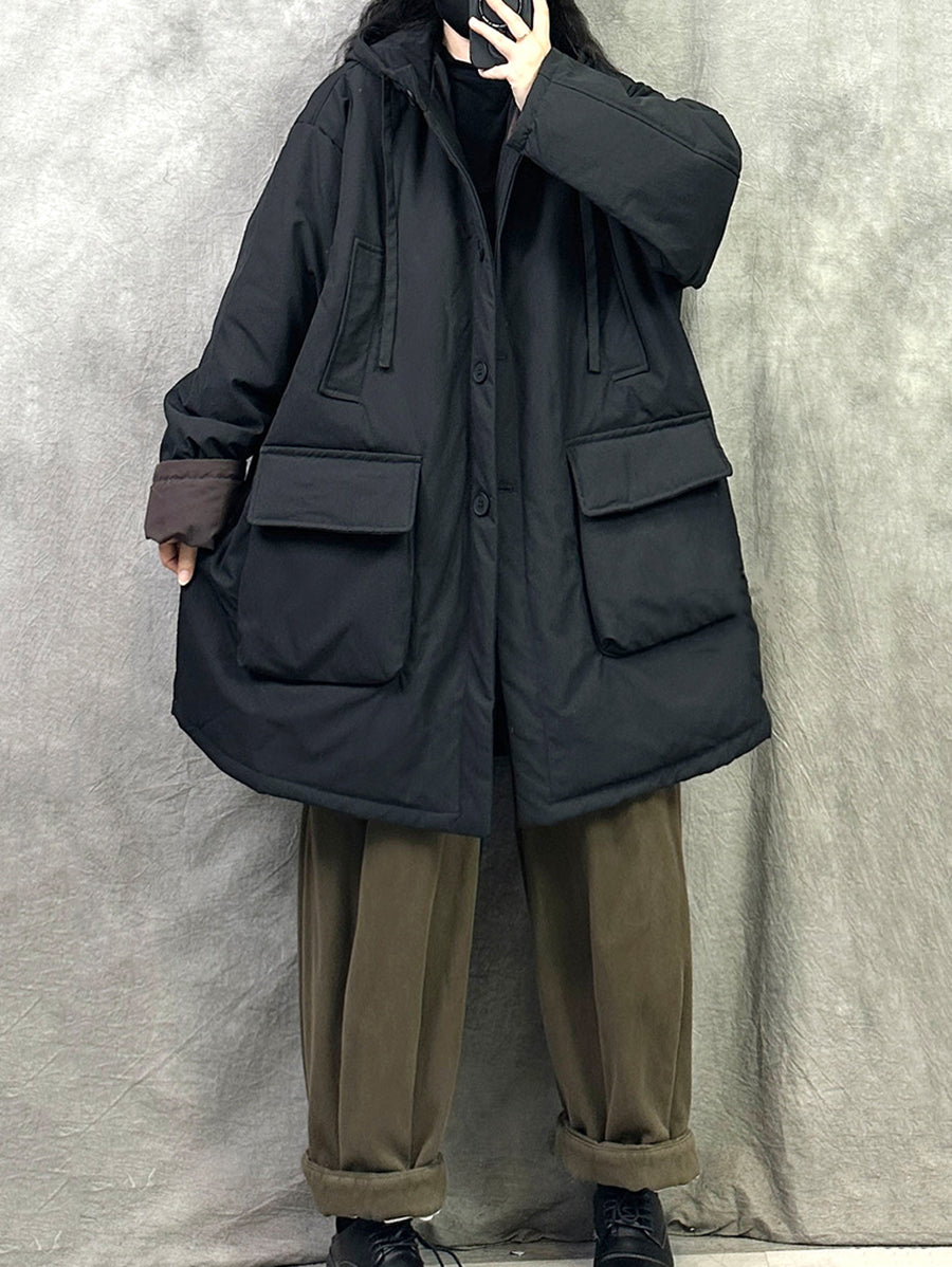 Women Winter Casual Pure Color Hooded Padded Coat