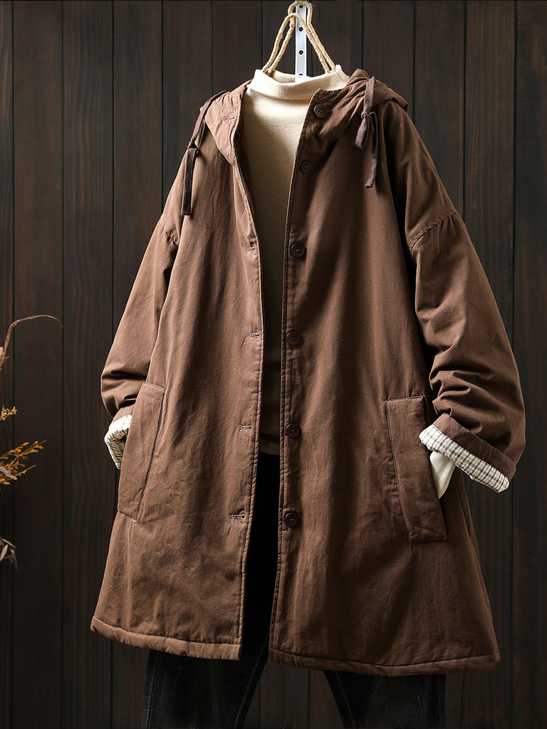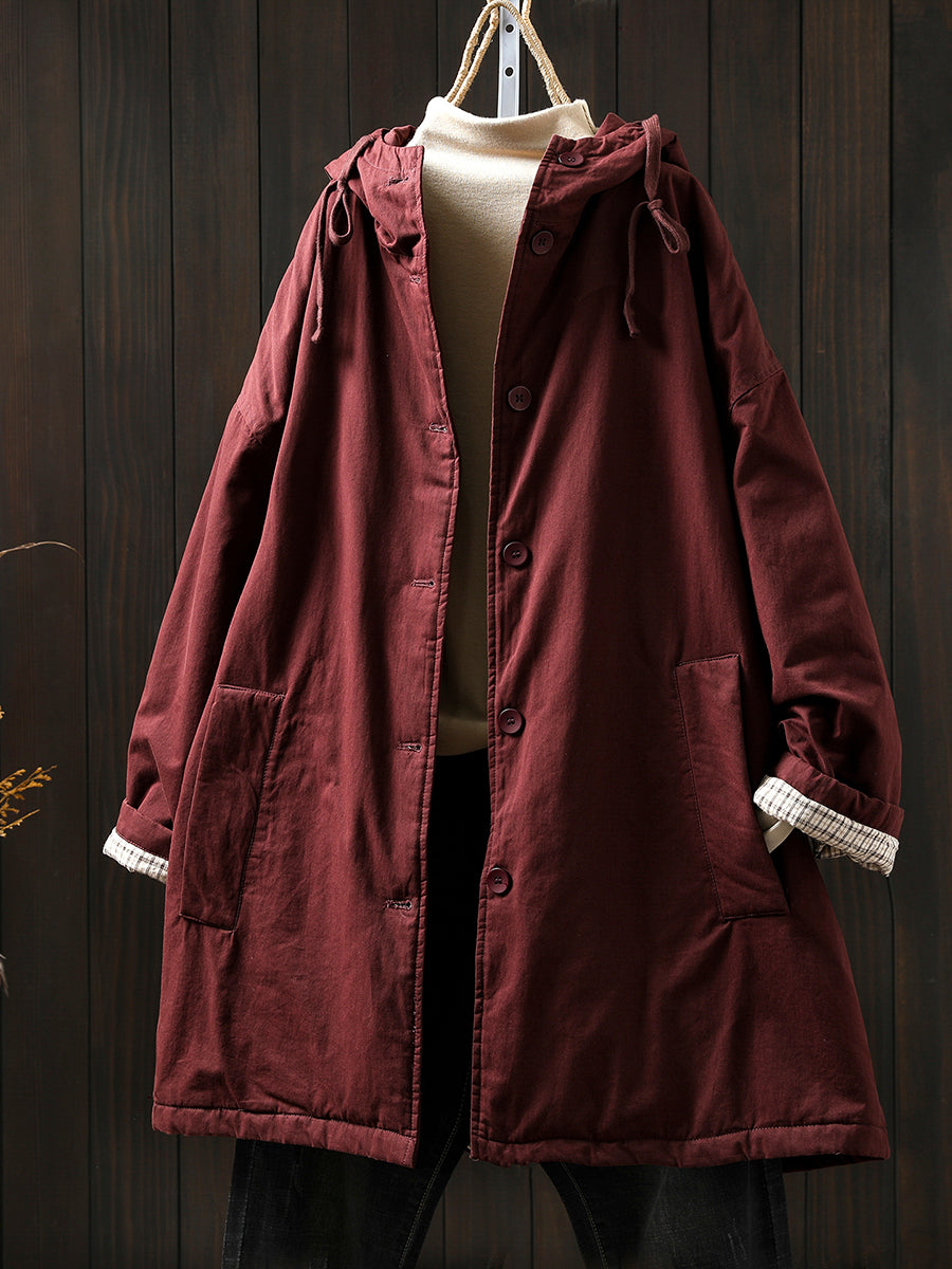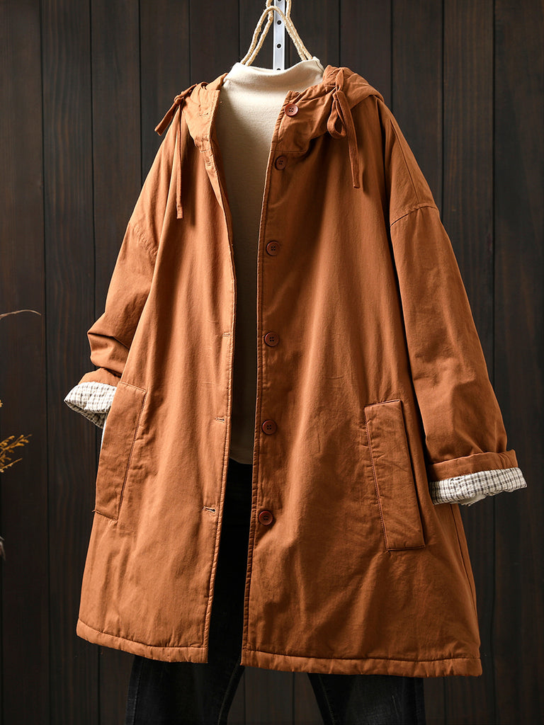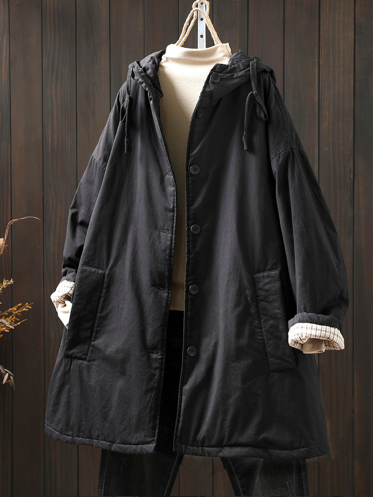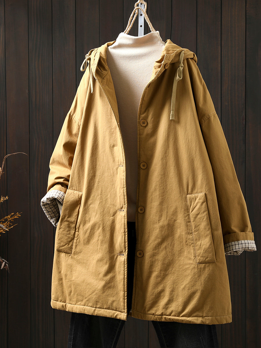 Women Winter Casual Pure Color Padded Hooded Coat