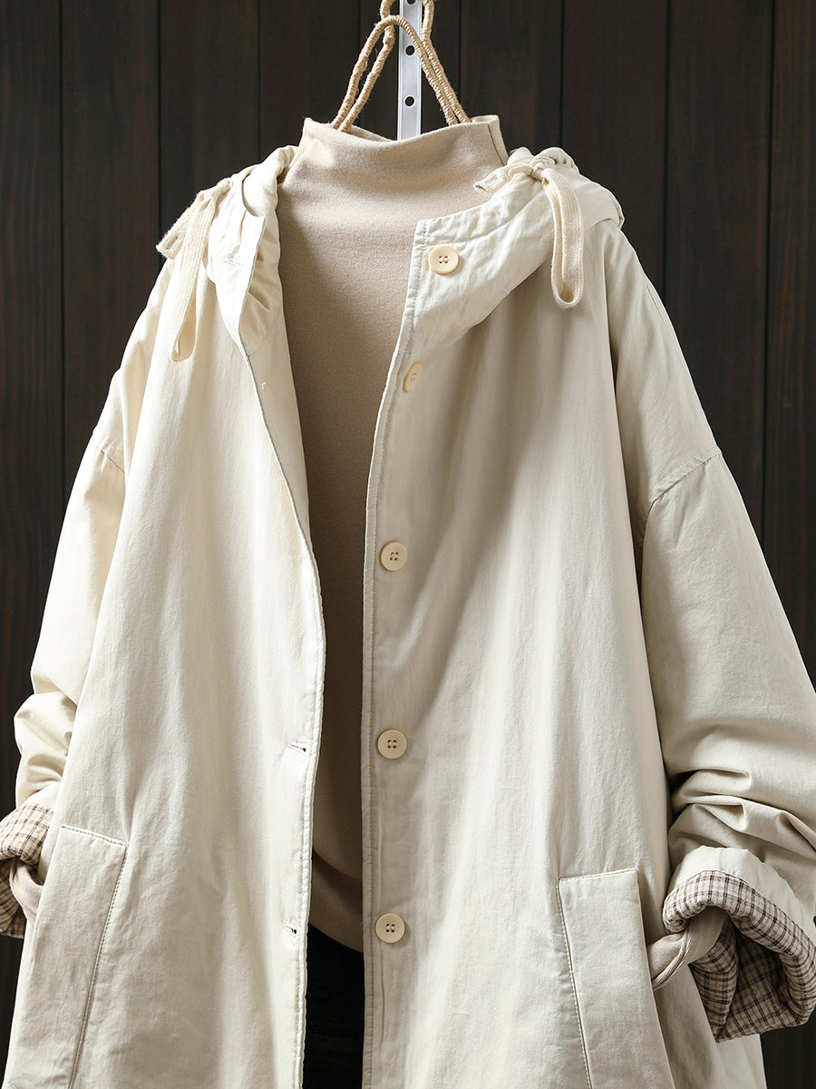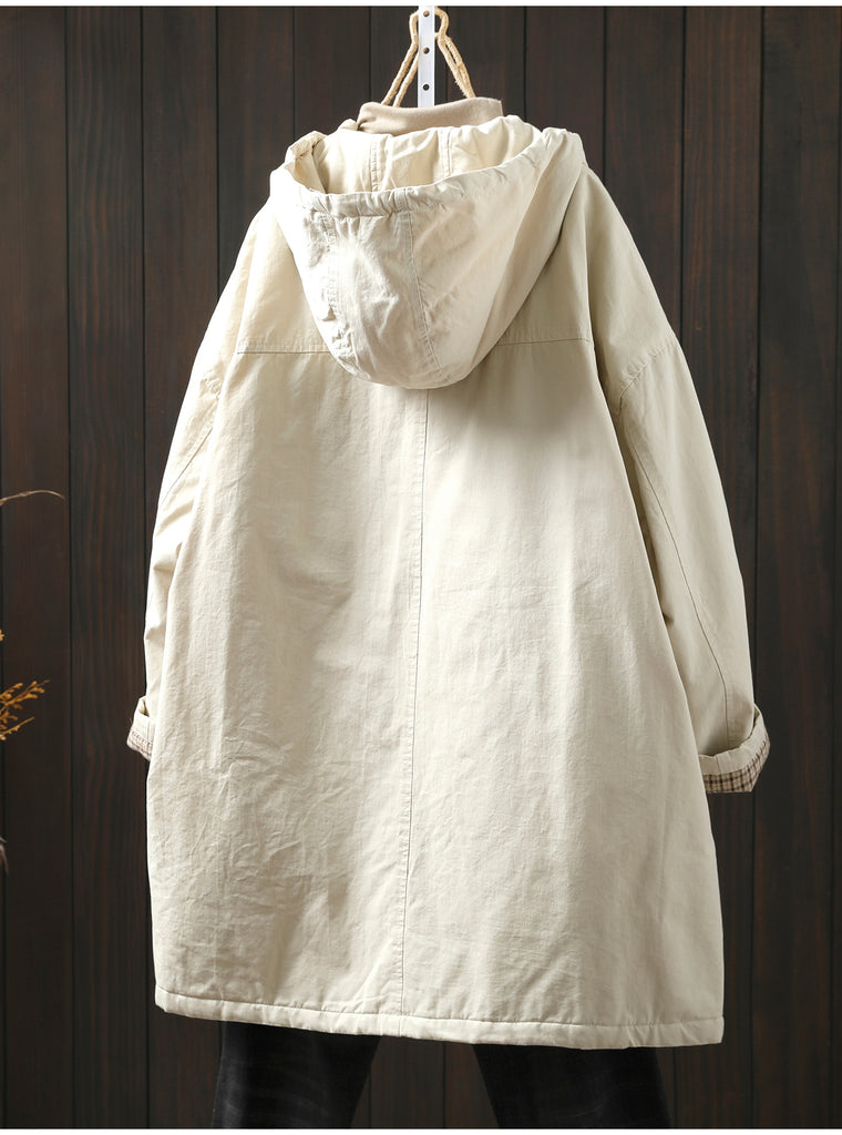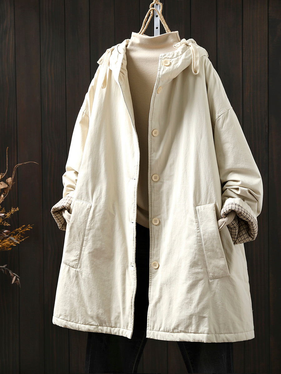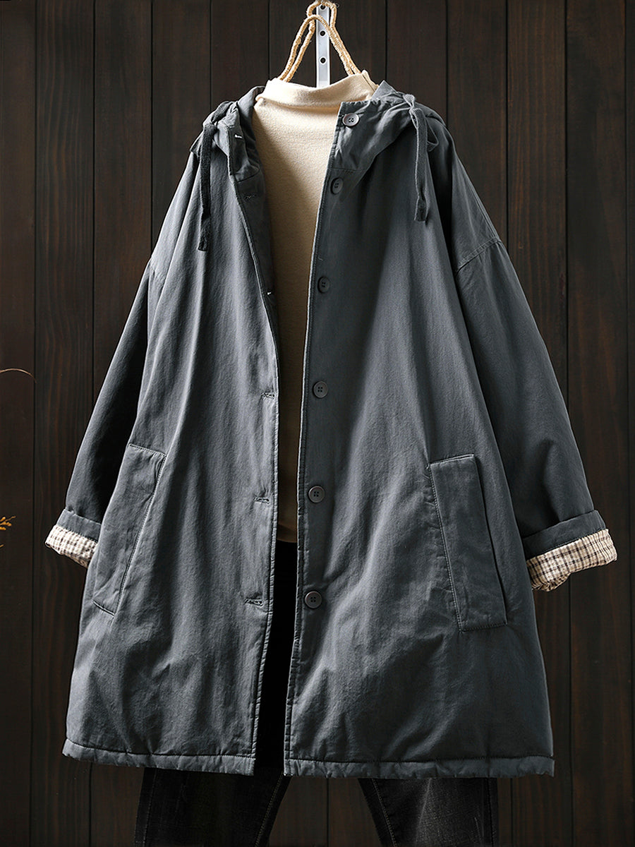 Women Winter Casual Pure Color Padded Hooded Coat