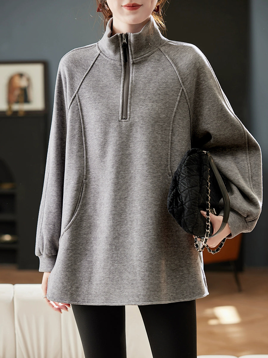This winter essential combines premium materials—40% polyester, 20% nylon, 4% spandex, and 36% regenerated cellulose fibre—for optimal breathability and stretch. The structured stand collar and raglan sleeves define a contemporary casual aesthetic, while full-length coverage ensures seasonal warmth. Available in timeless solid tones, this versatile blouse pairs effortlessly with any wardrobe. Perfect for autumn and winter transitions, it maintains its shape and comfort through repeated wear. Fit reference based on 168cm model height.