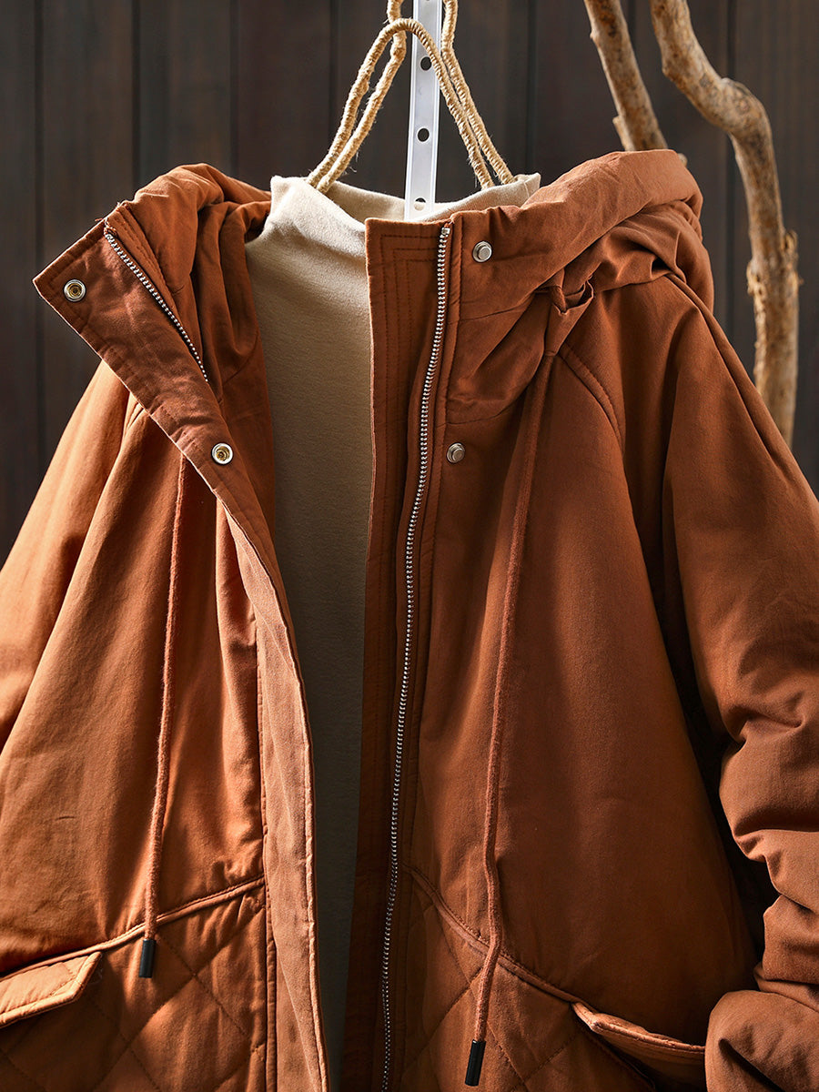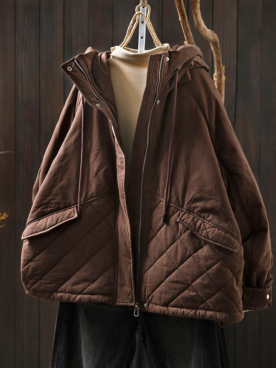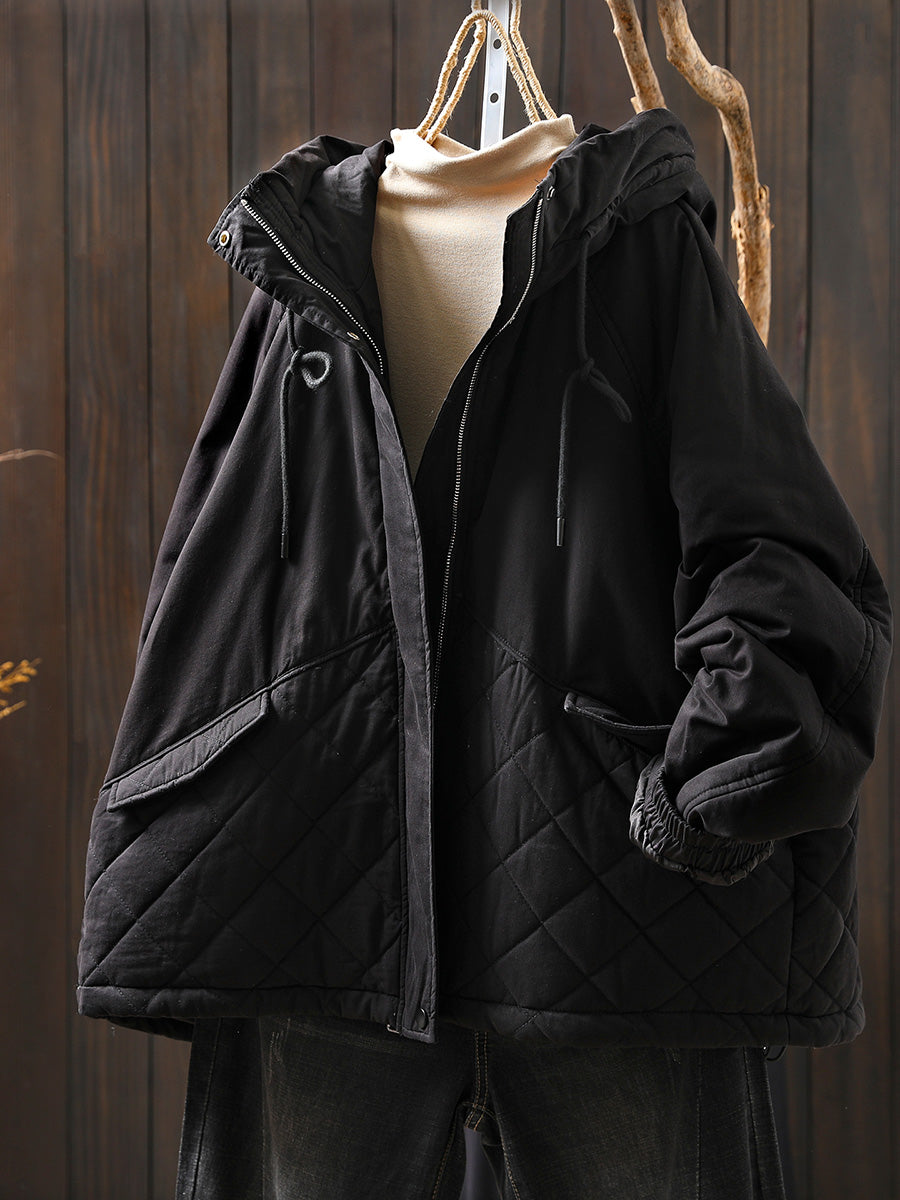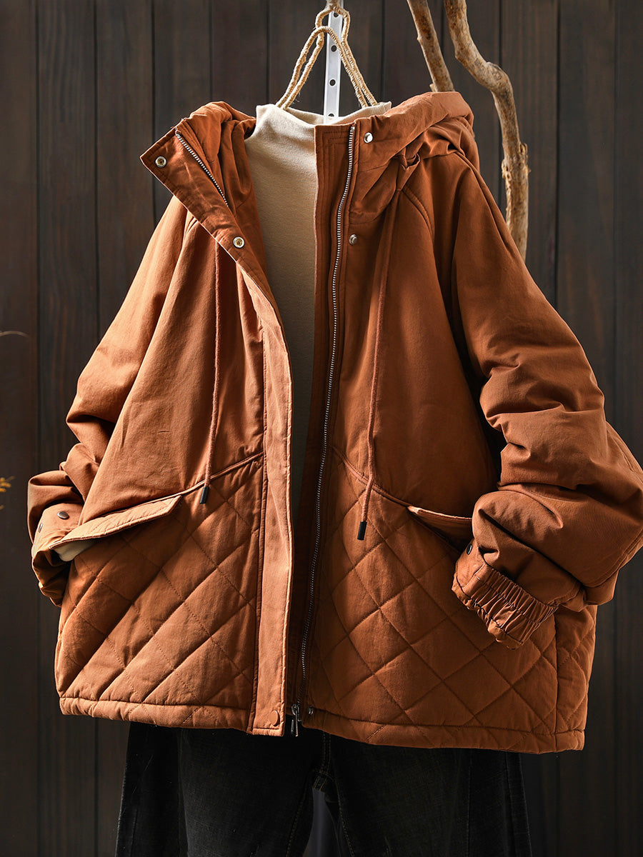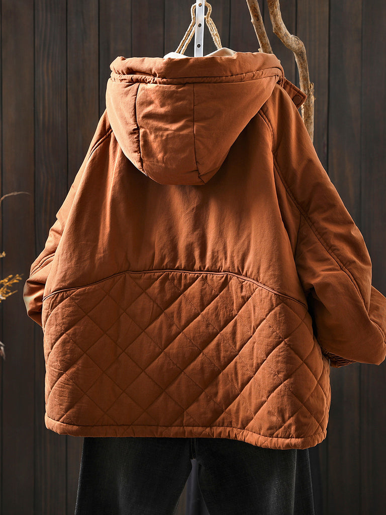 Women Winter Casual Rhomboids Padded Hooded Coat