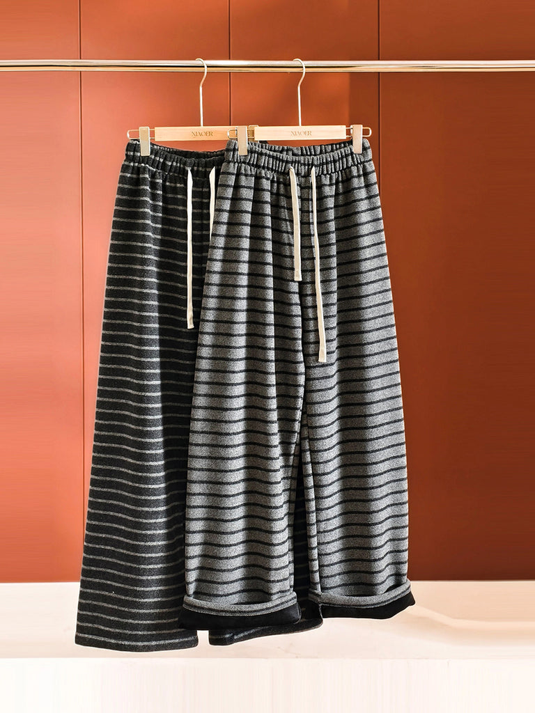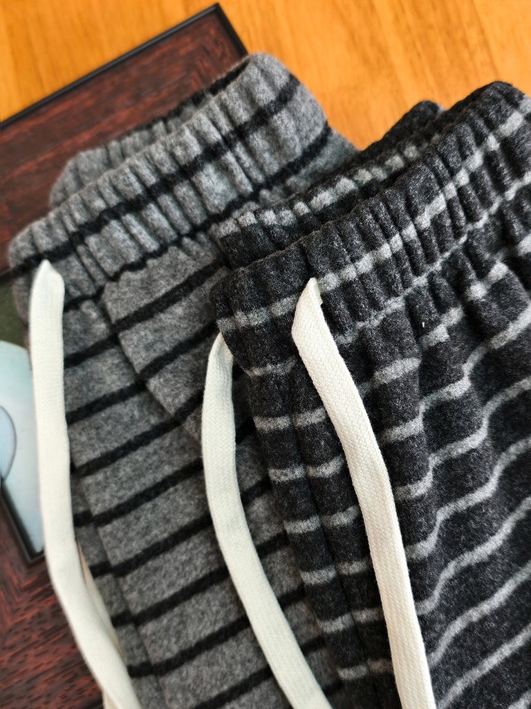 Women Winter Casual Stripe Fleece-lined Staight Pants
