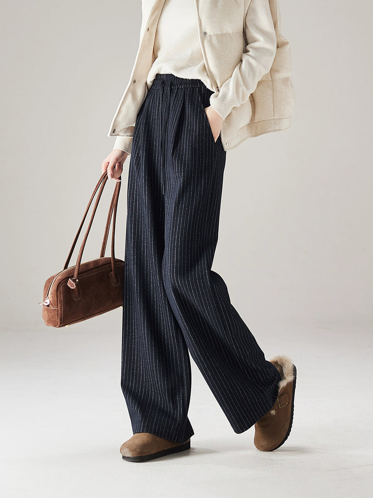 Women Winter Casual Stripe Straight Pants