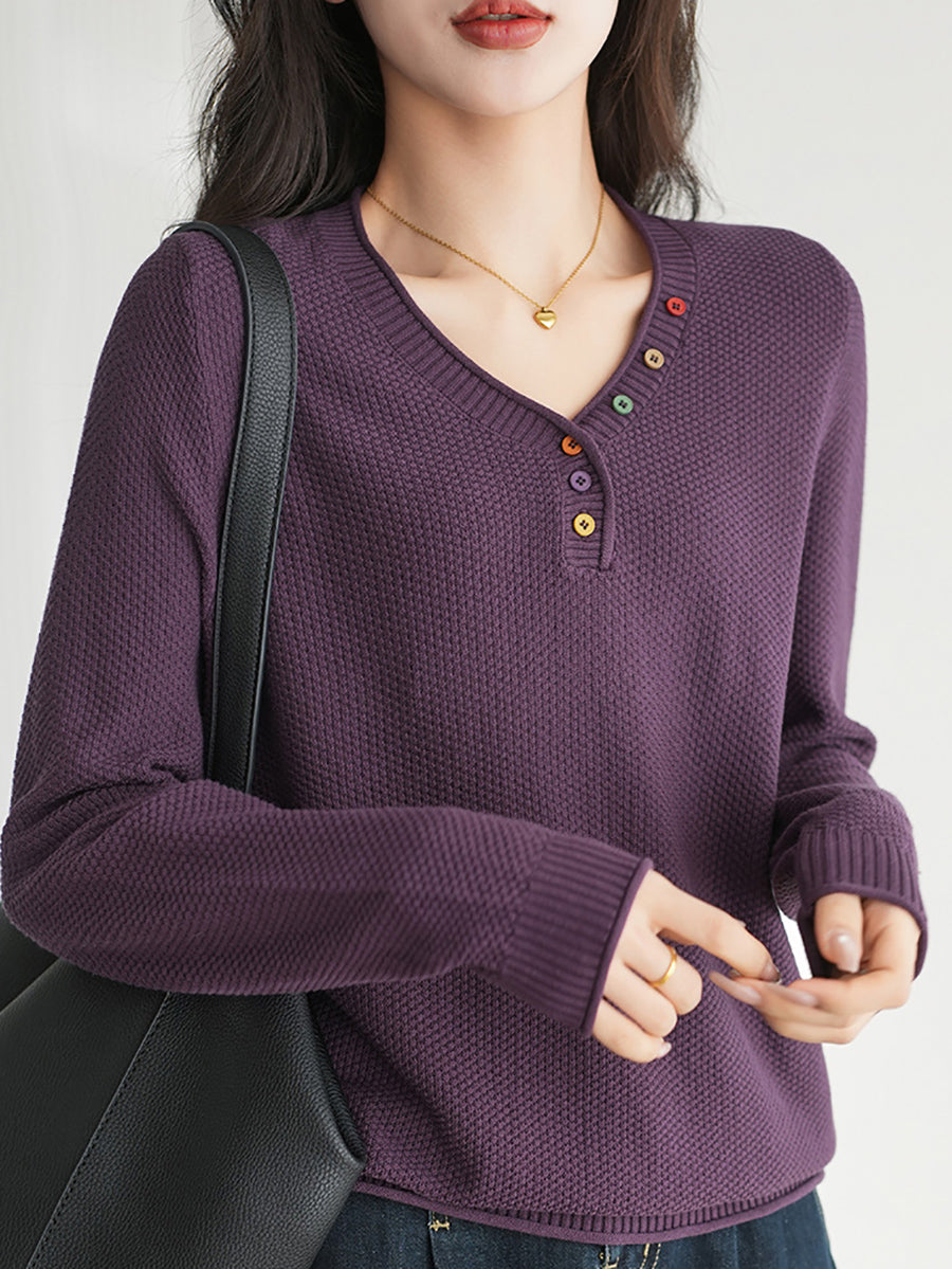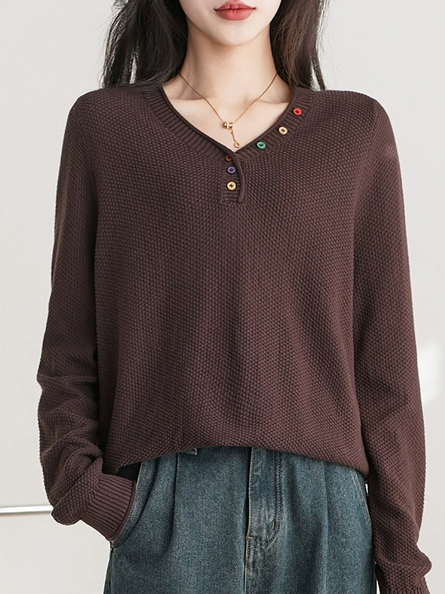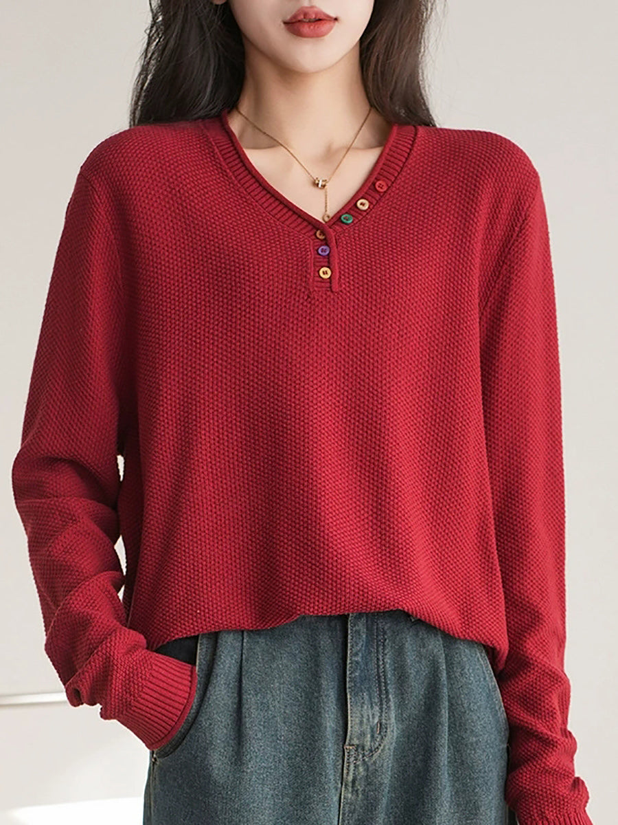 Women Winter Casual V-Neck Knitted Sweater