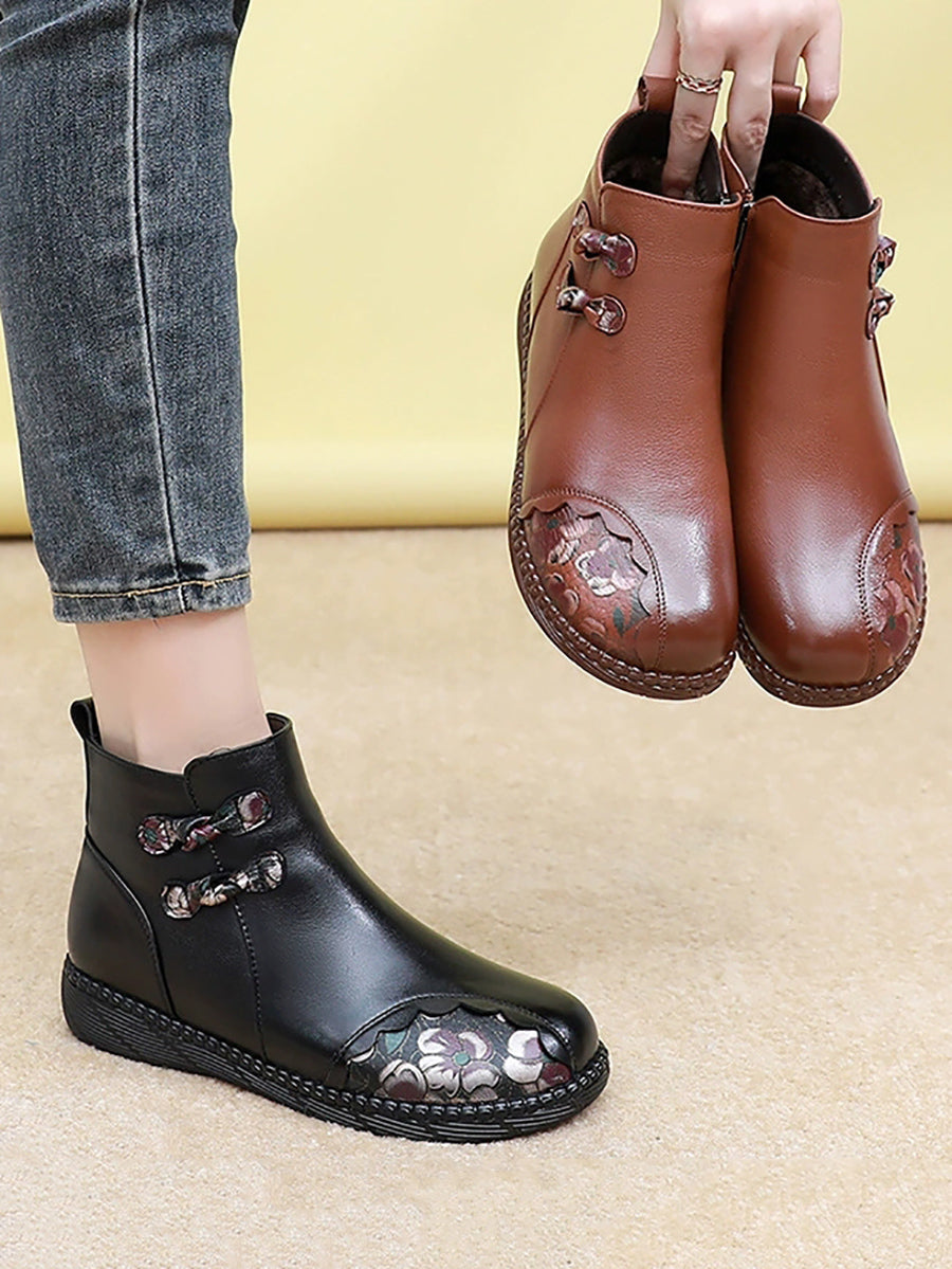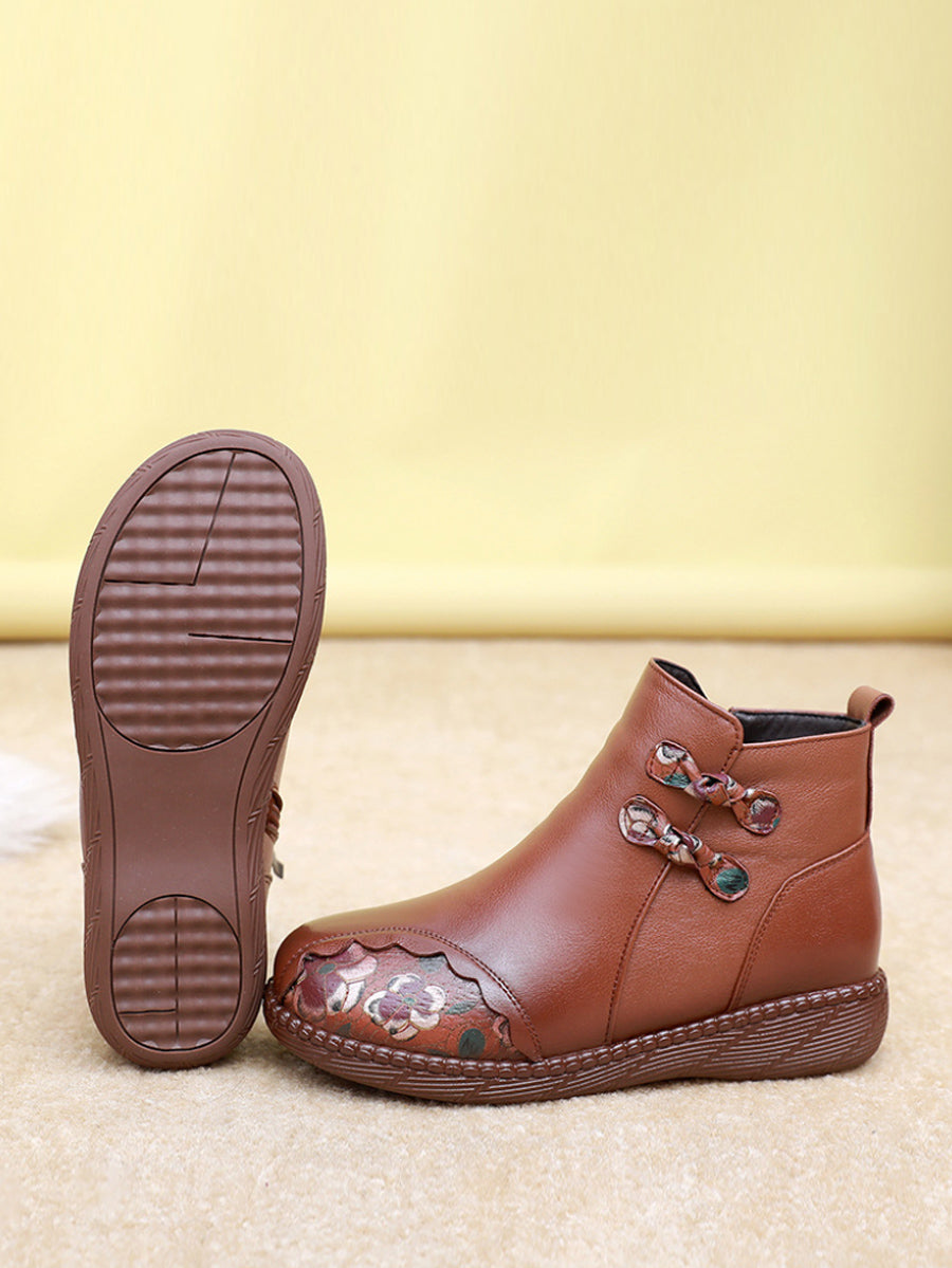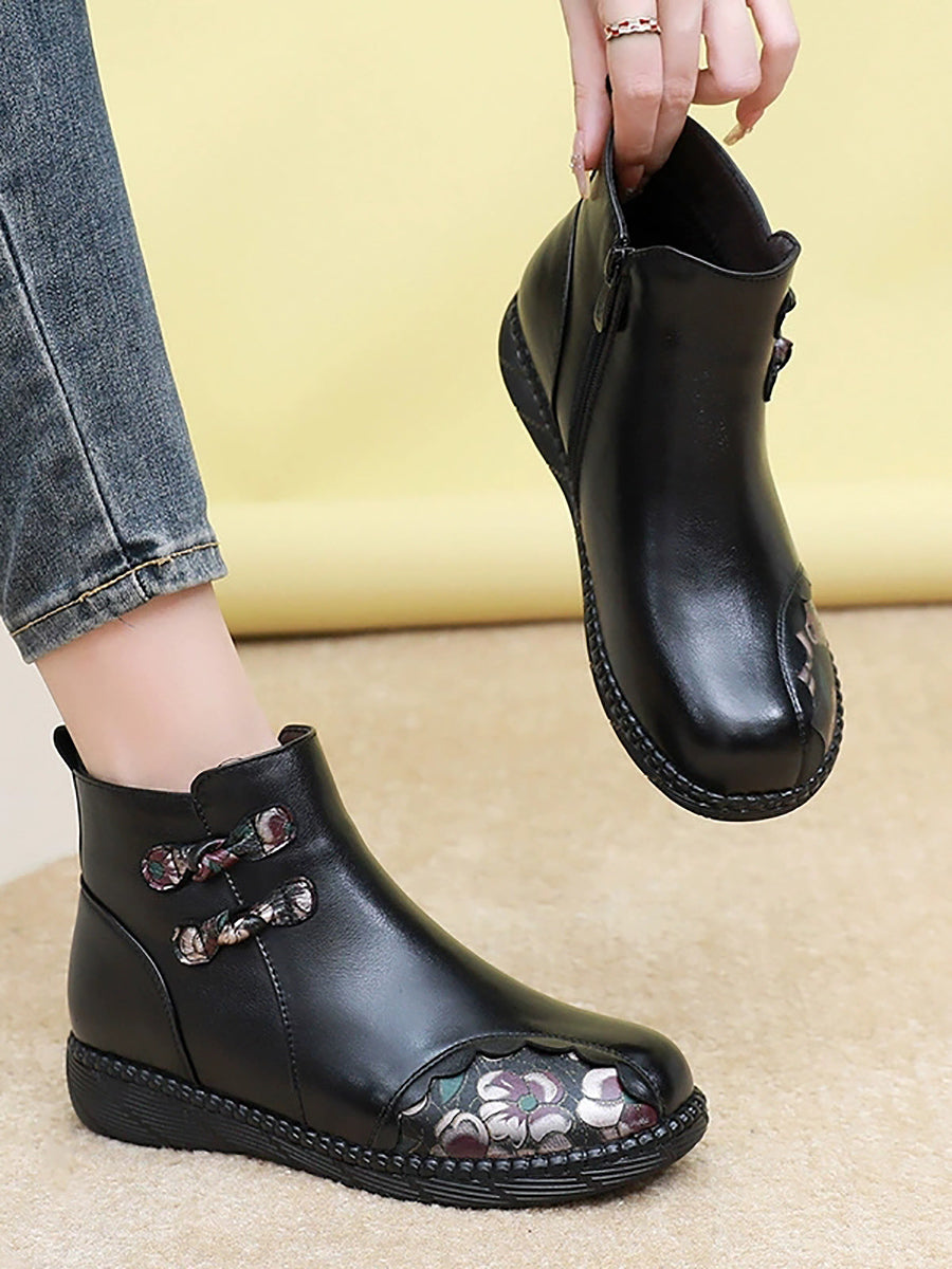 Women Winter Ethnic Flower Spliced Ankle Boots
