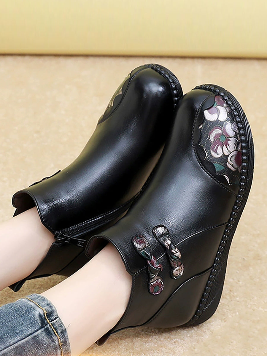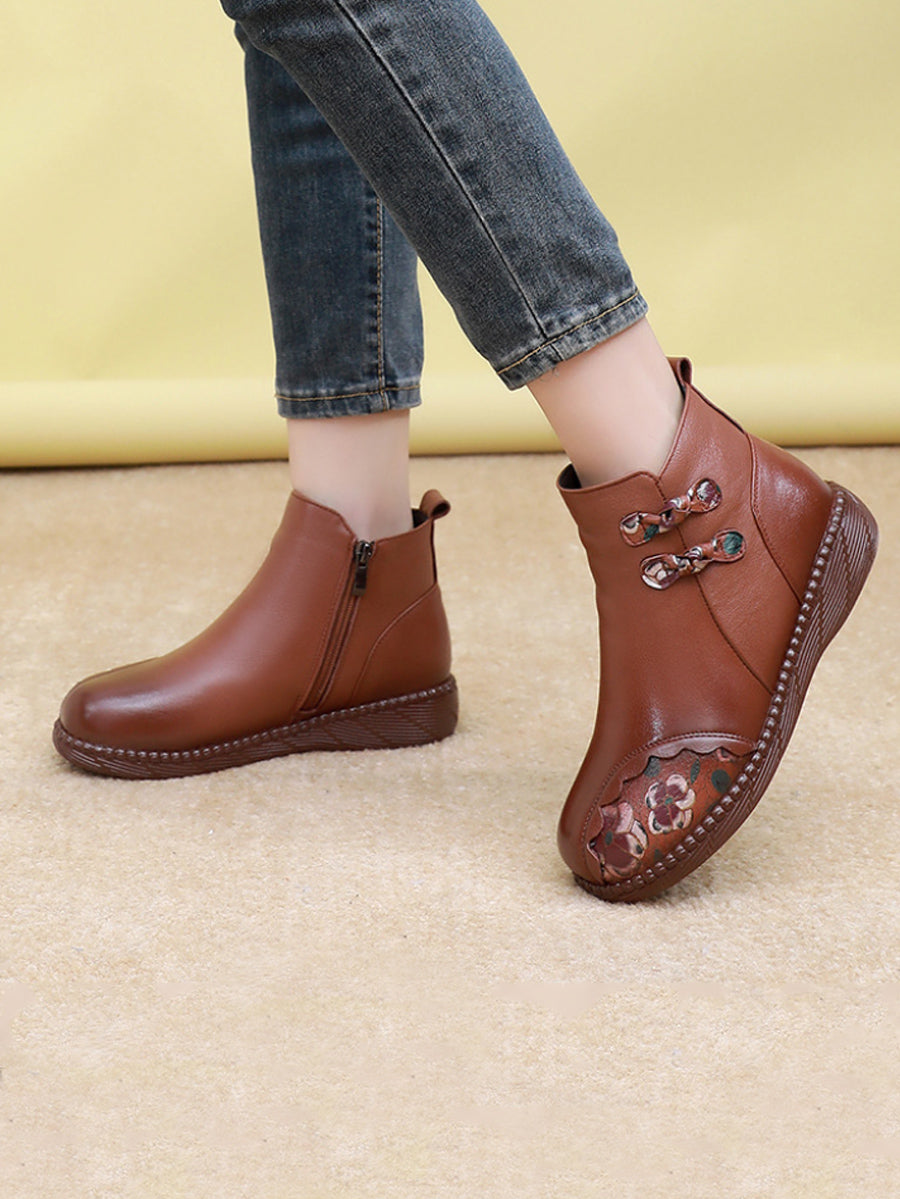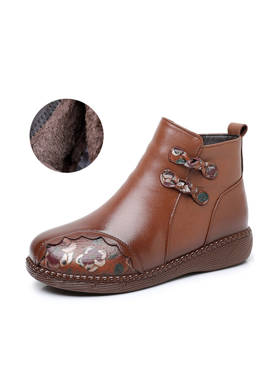 Women Winter Ethnic Flower Spliced Ankle Boots