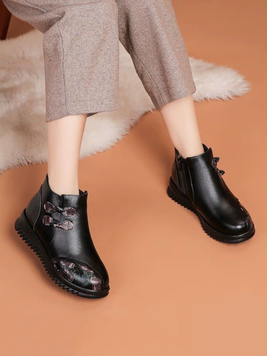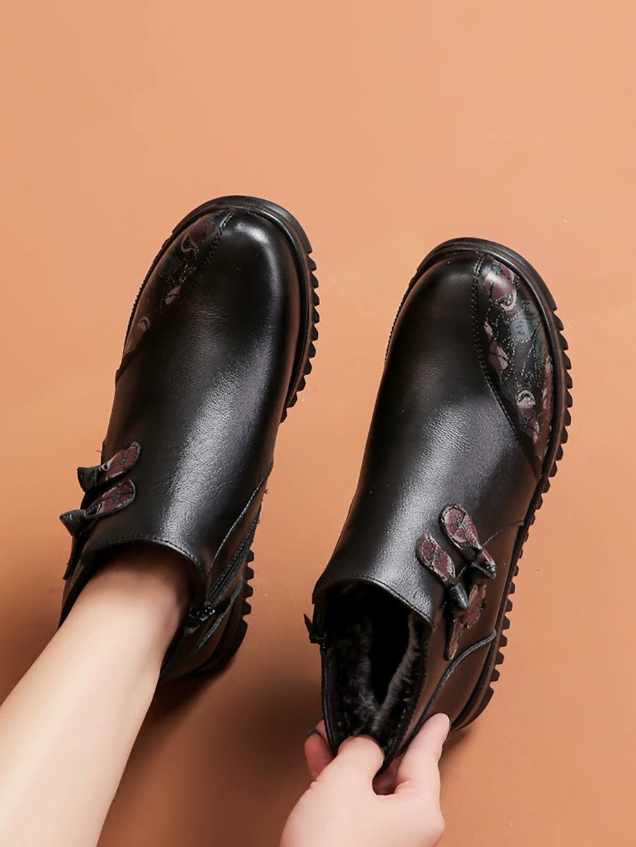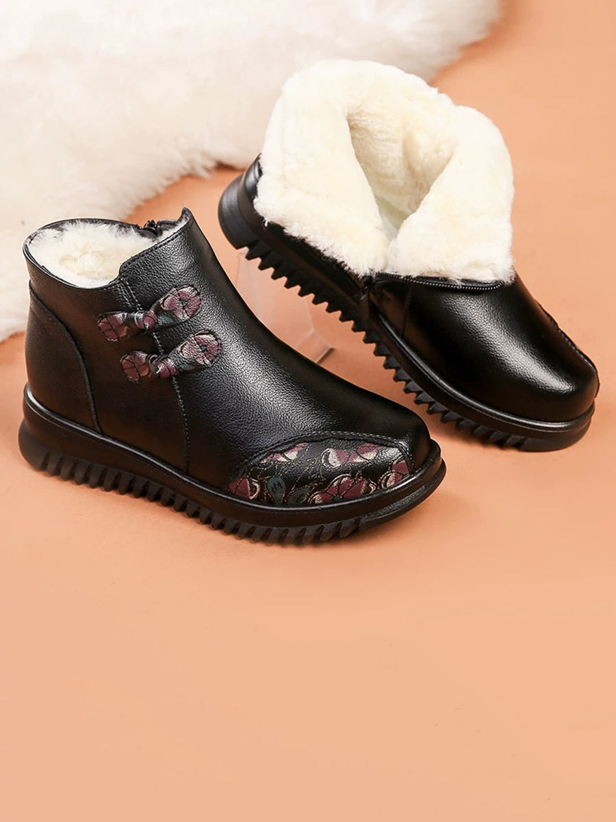 Women Winter Ethnic Leather Spliced Fleece-lined Boots