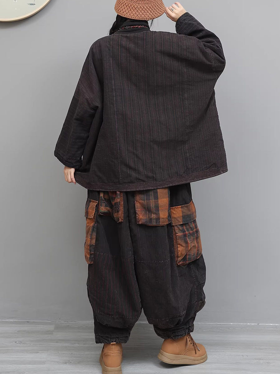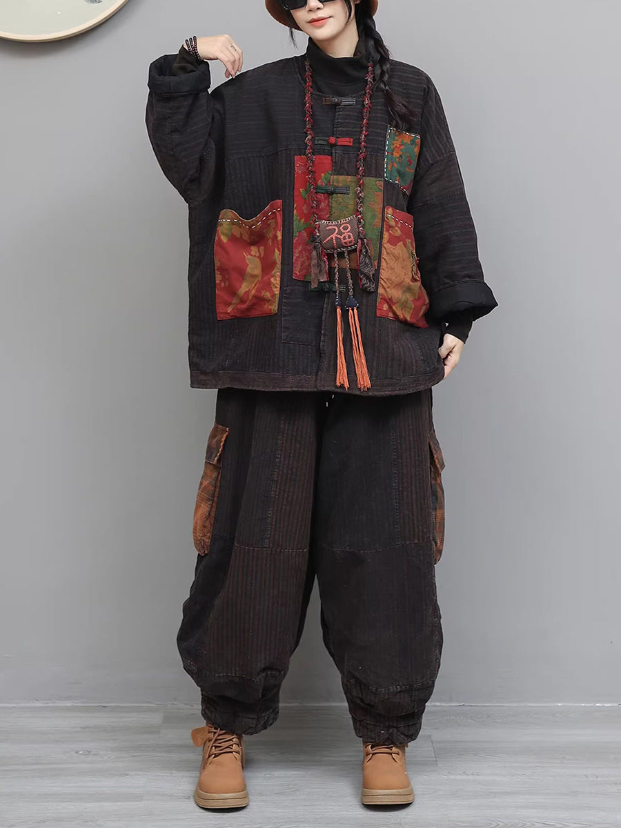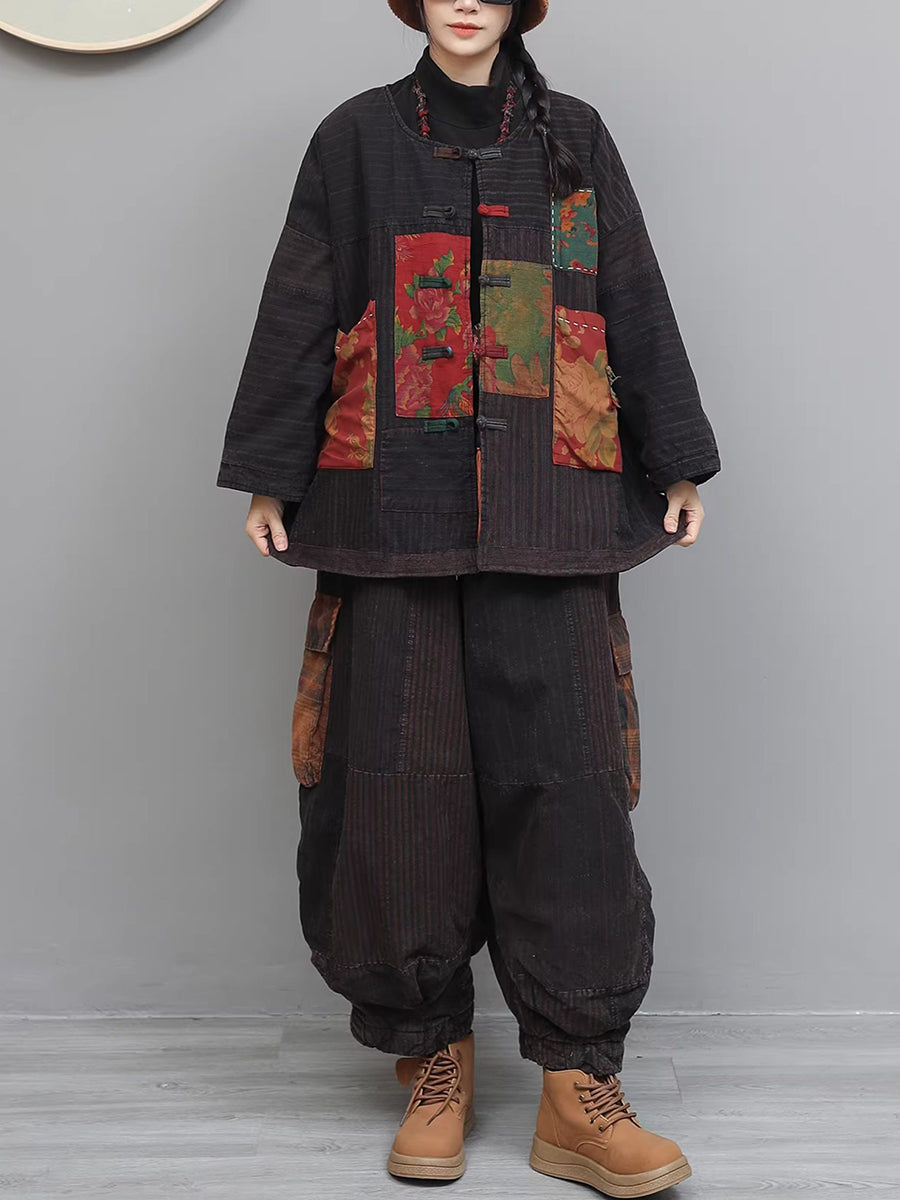 Women Winter Ethnic Patch Spliced O-Neck Suits